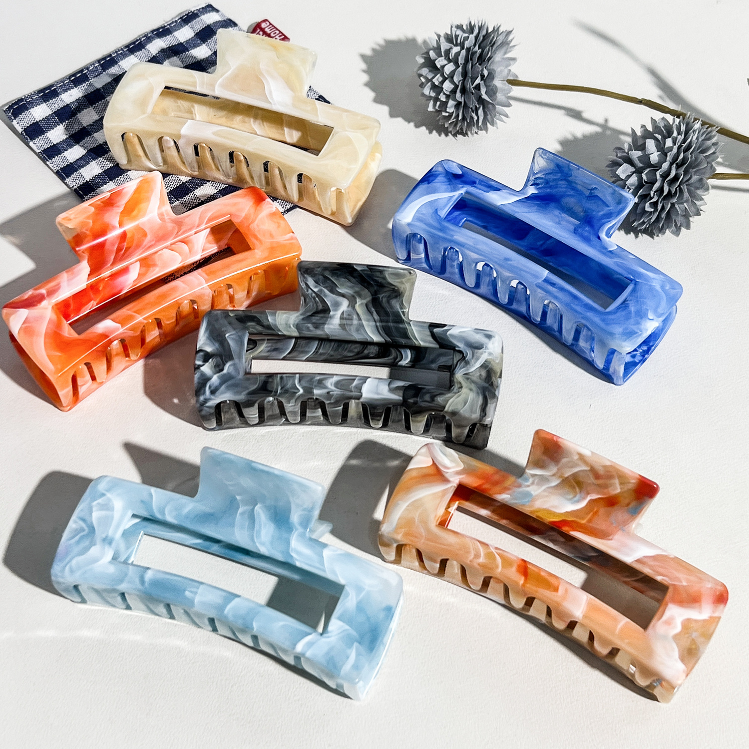 欧美新款大号抓夹大理石纹发爪夹盘发头饰发夹鲨鱼夹