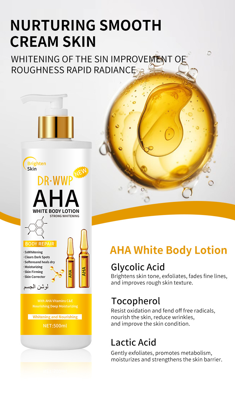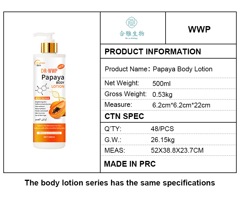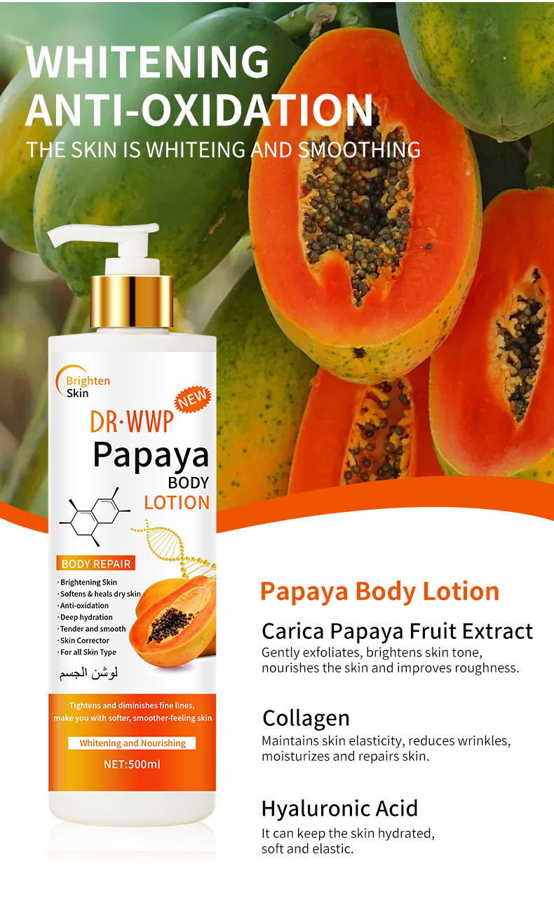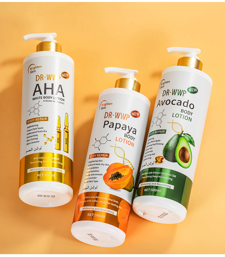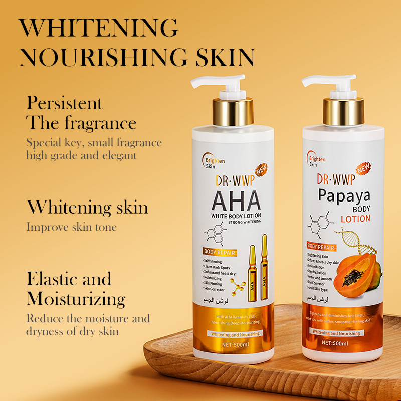 WWP外贸AHA美白身体乳去干皮滋润保湿亮肤身体护理跨境木瓜润肤乳