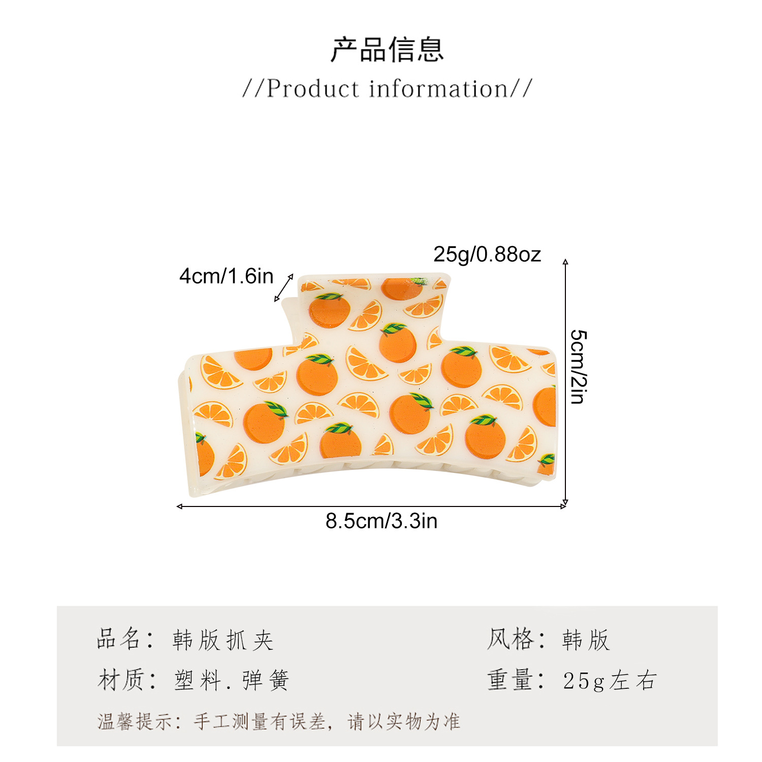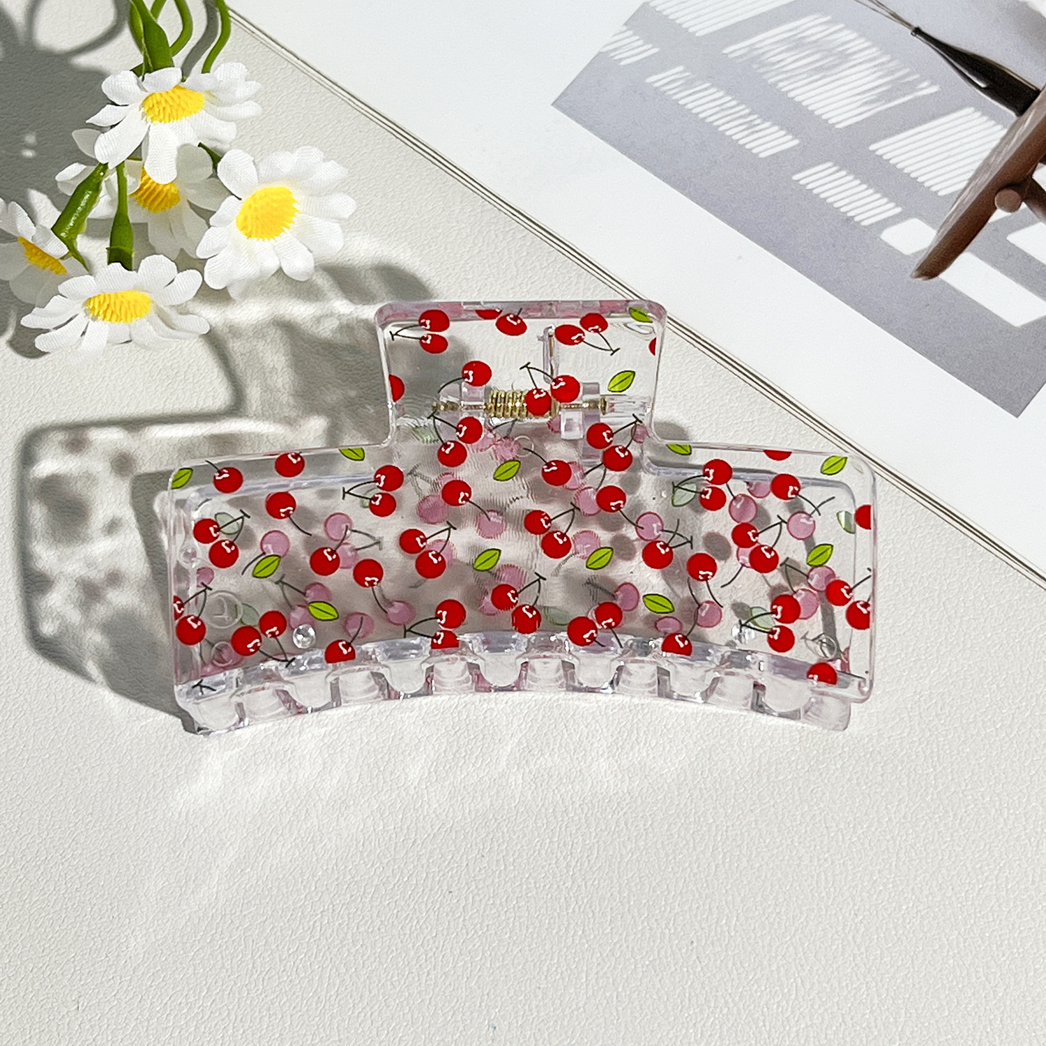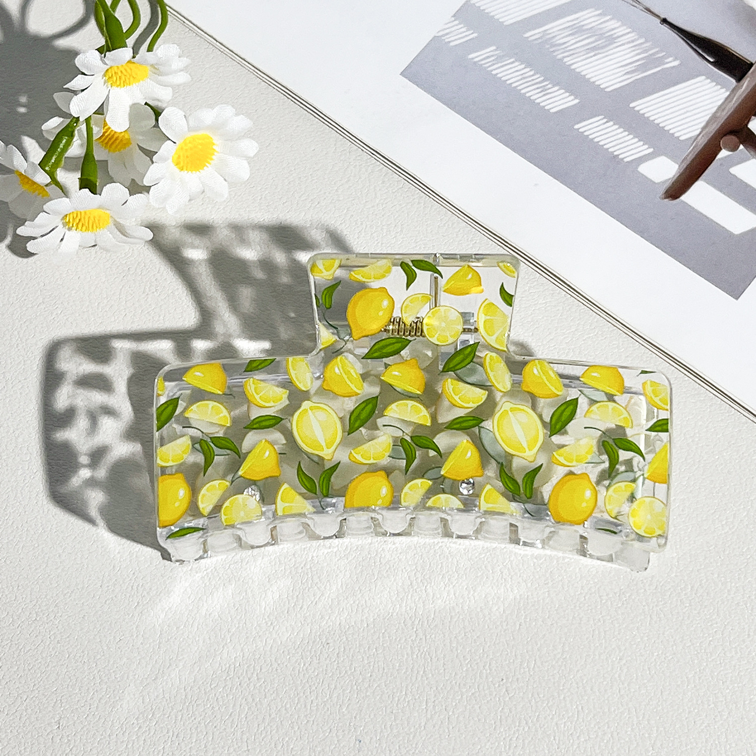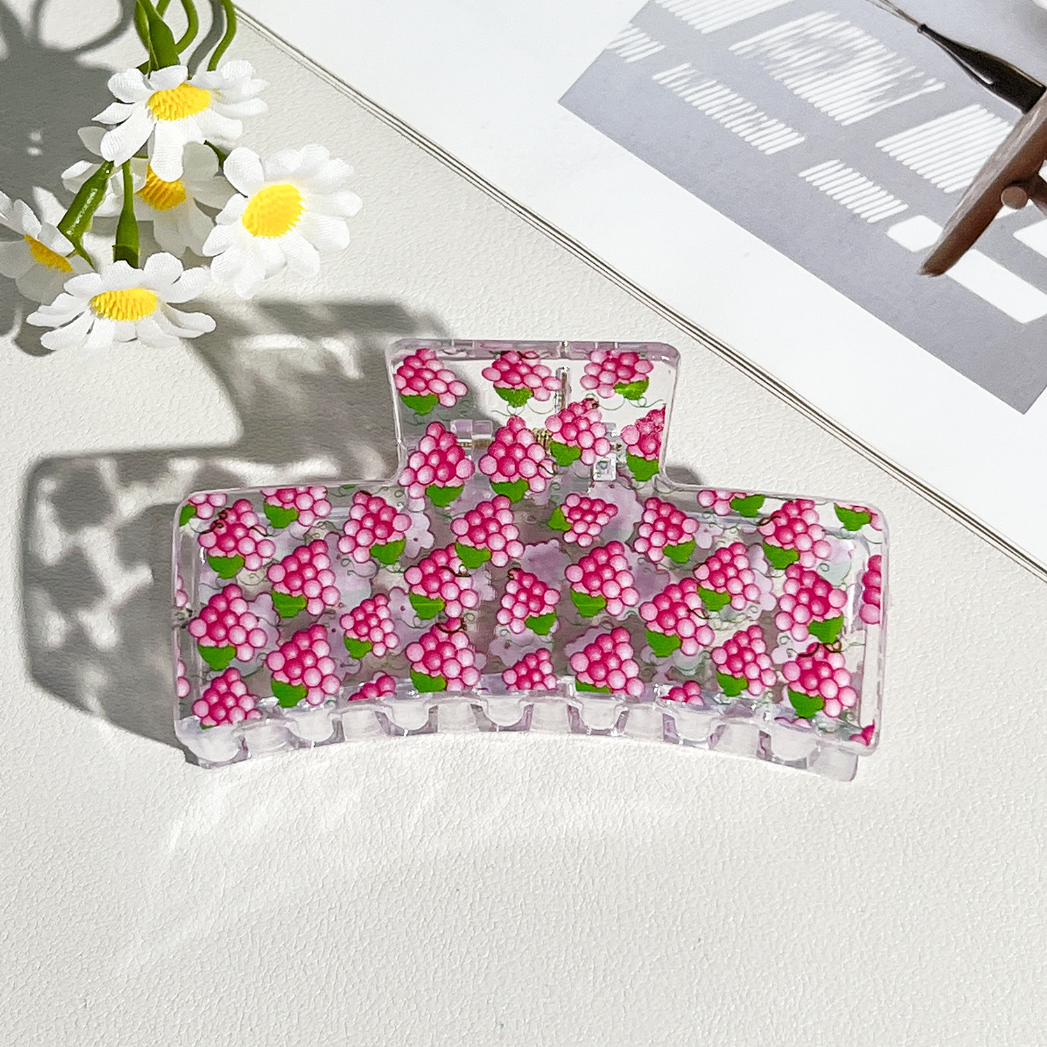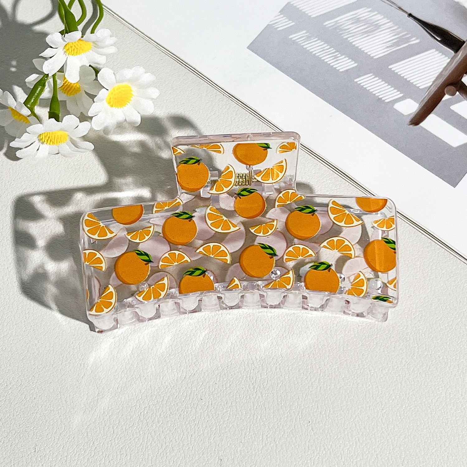 新款热转印花ps塑料水果抓夹时尚清新爪夹女士鲨鱼夹