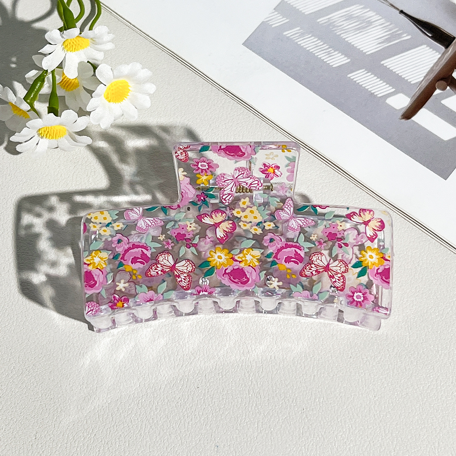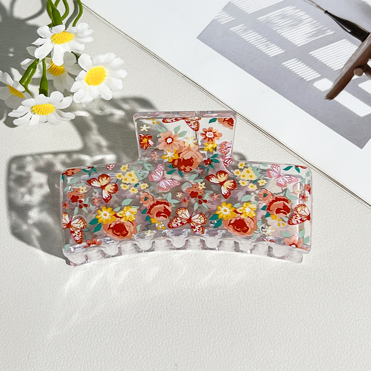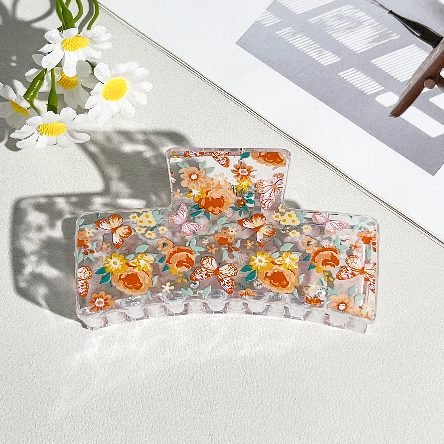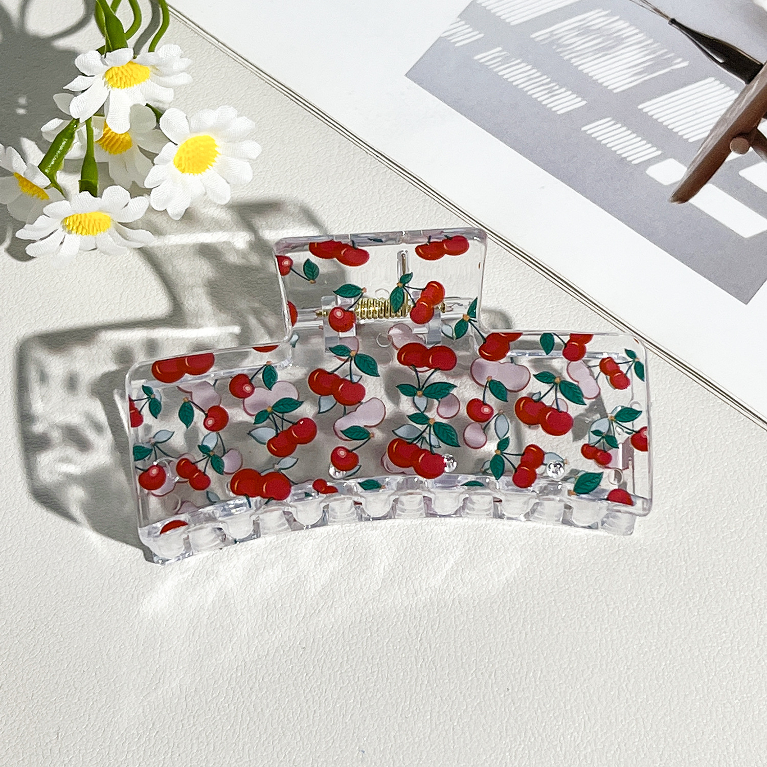新款热转印花ps塑料水果抓夹时尚清新爪夹女士鲨鱼夹