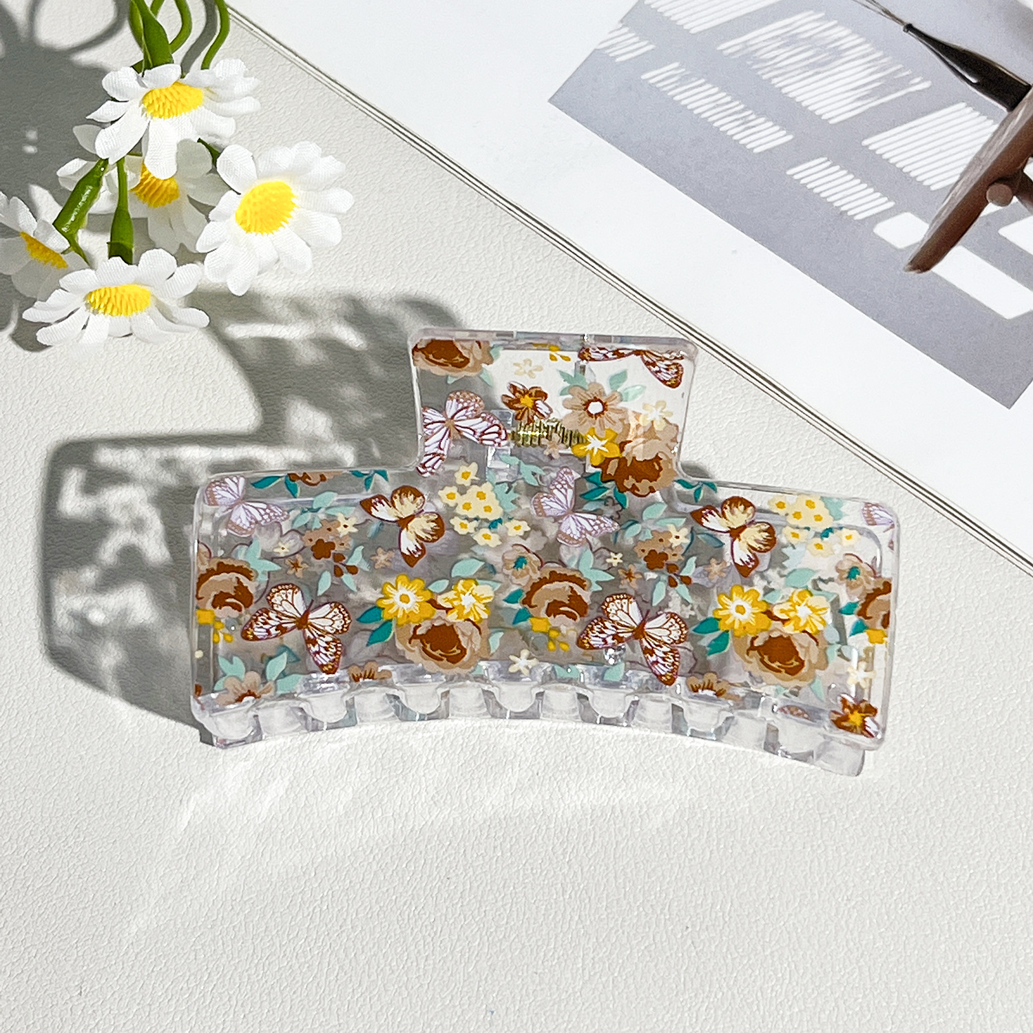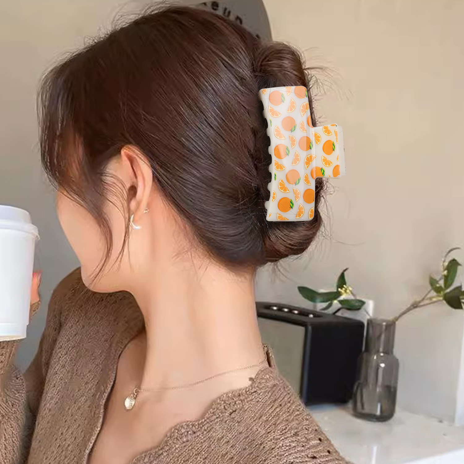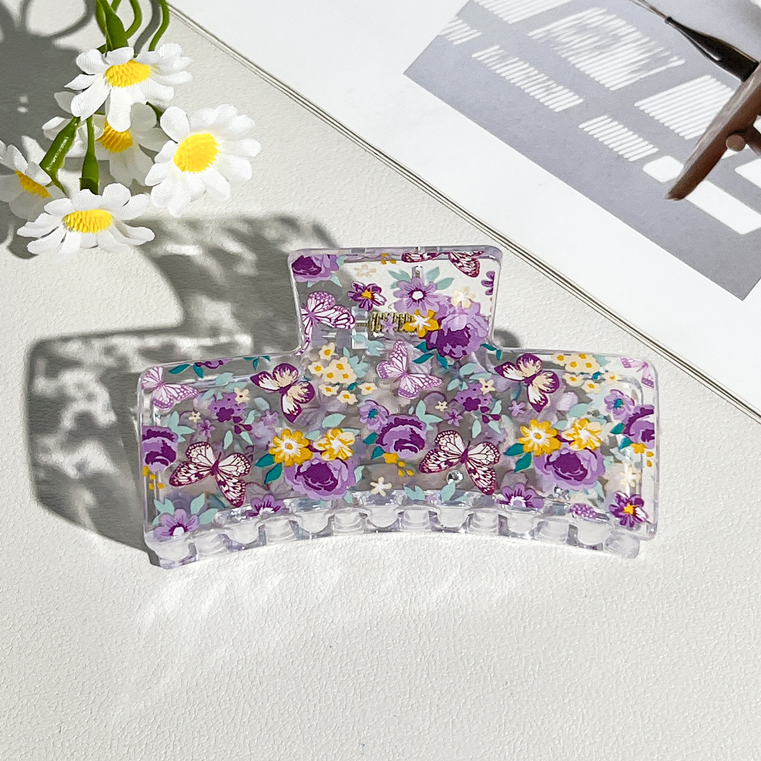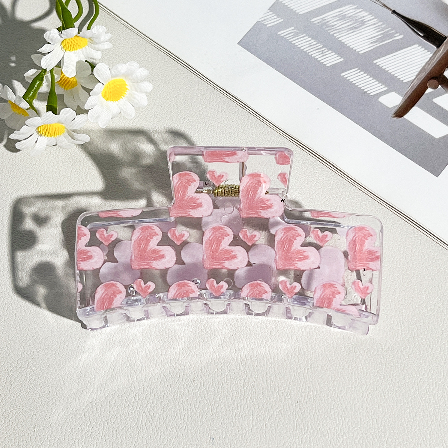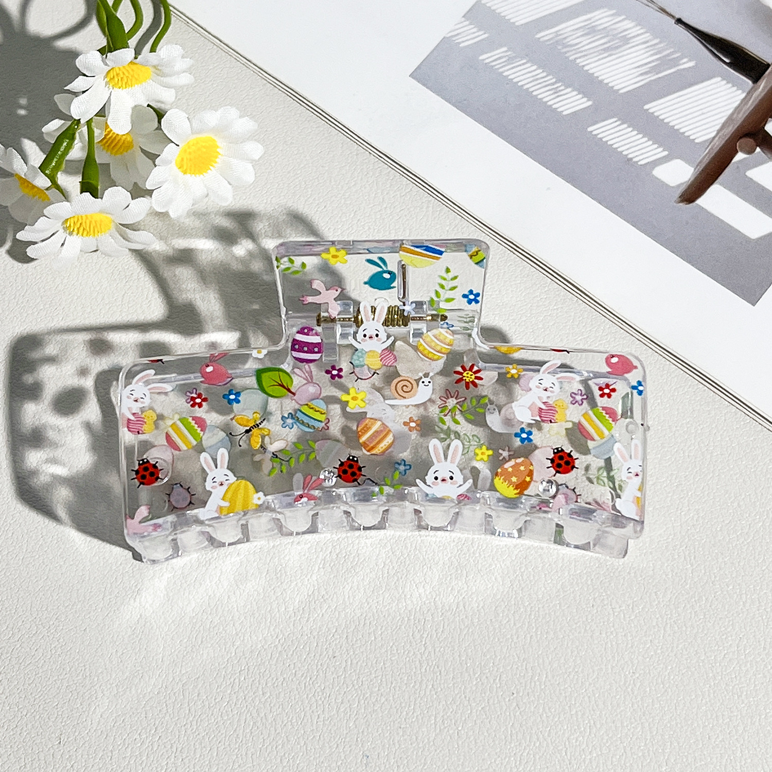 新款热转印花ps塑料水果抓夹时尚清新爪夹女士鲨鱼夹