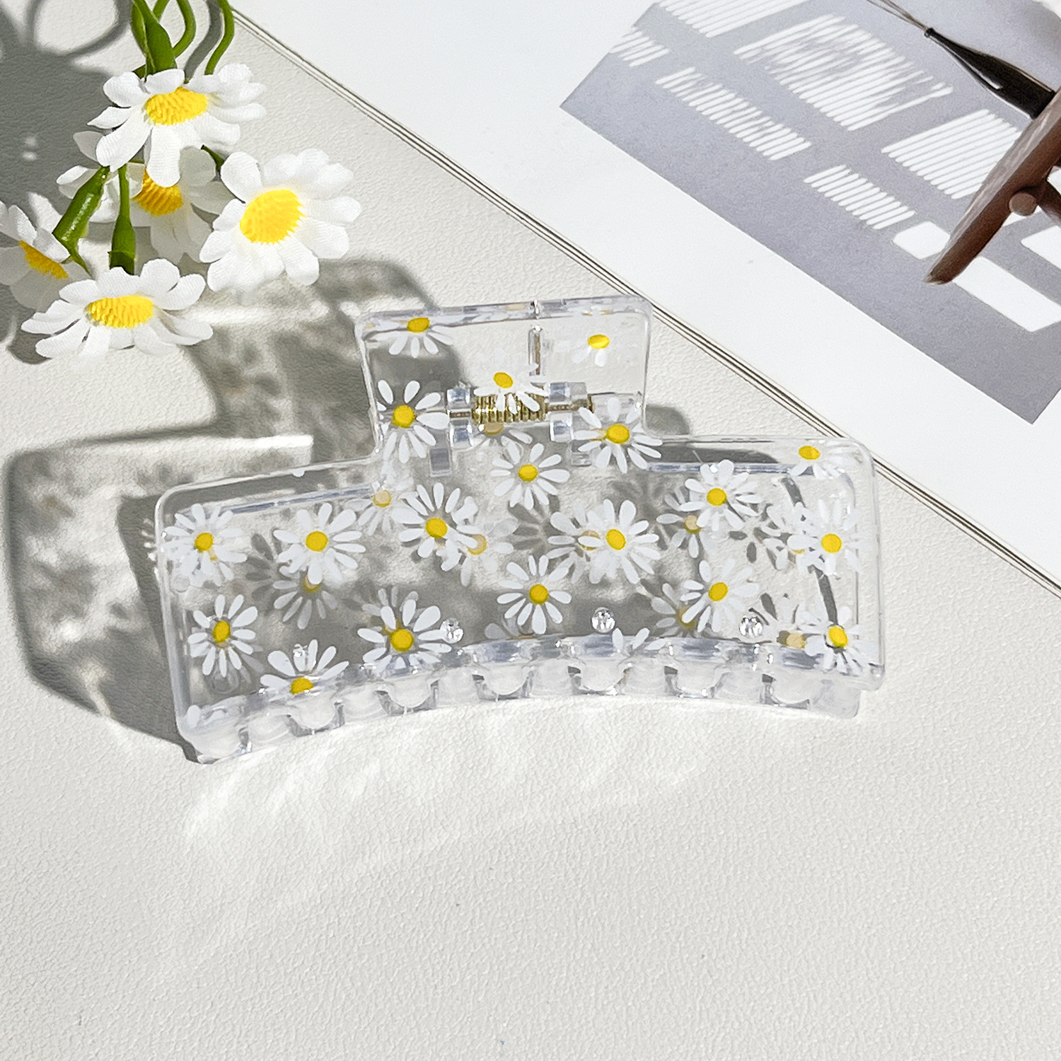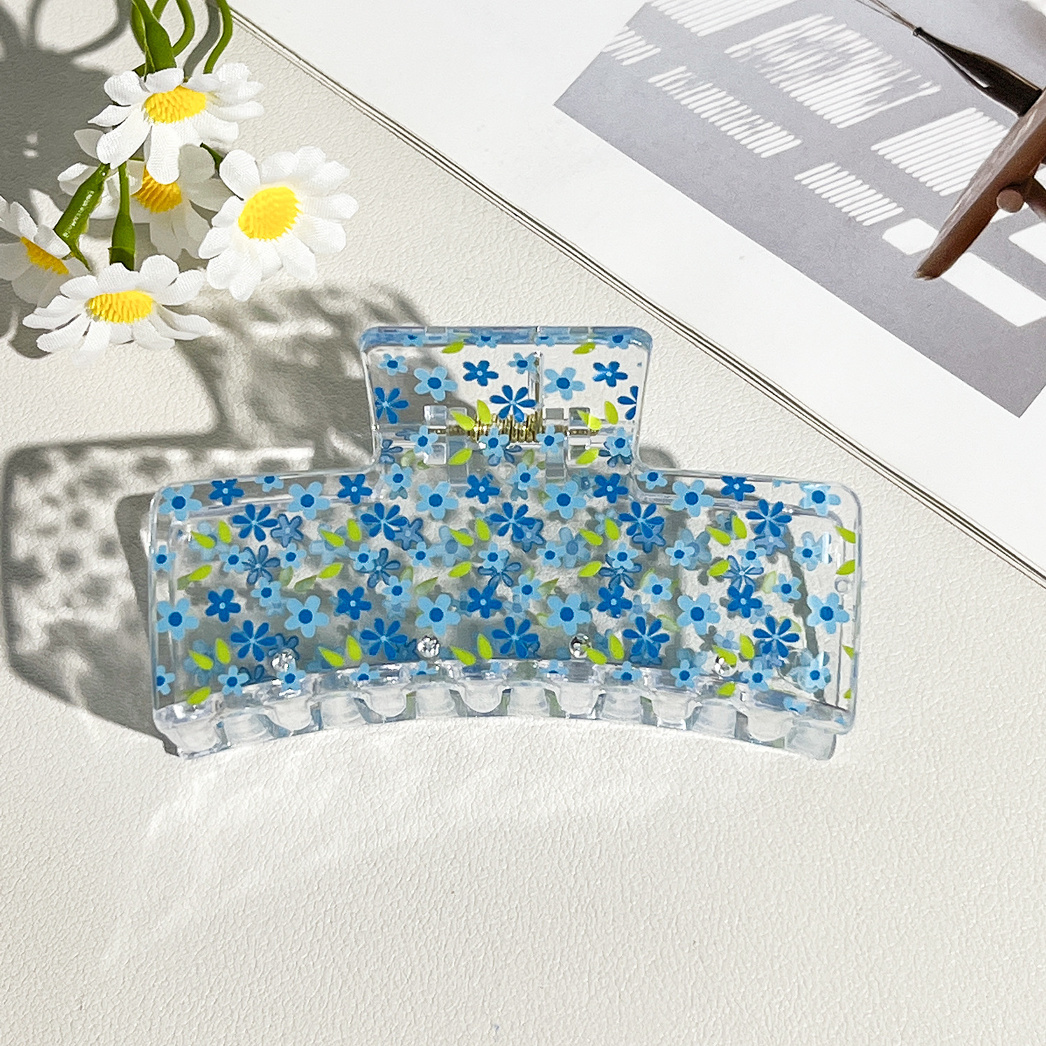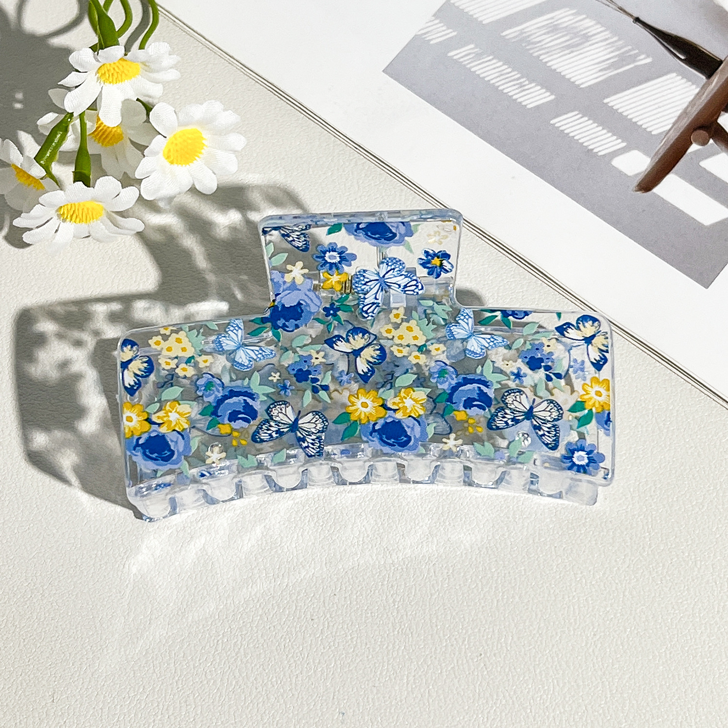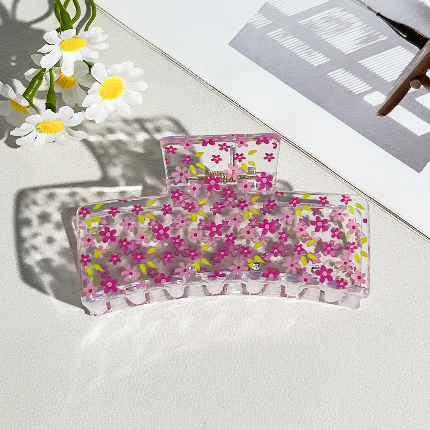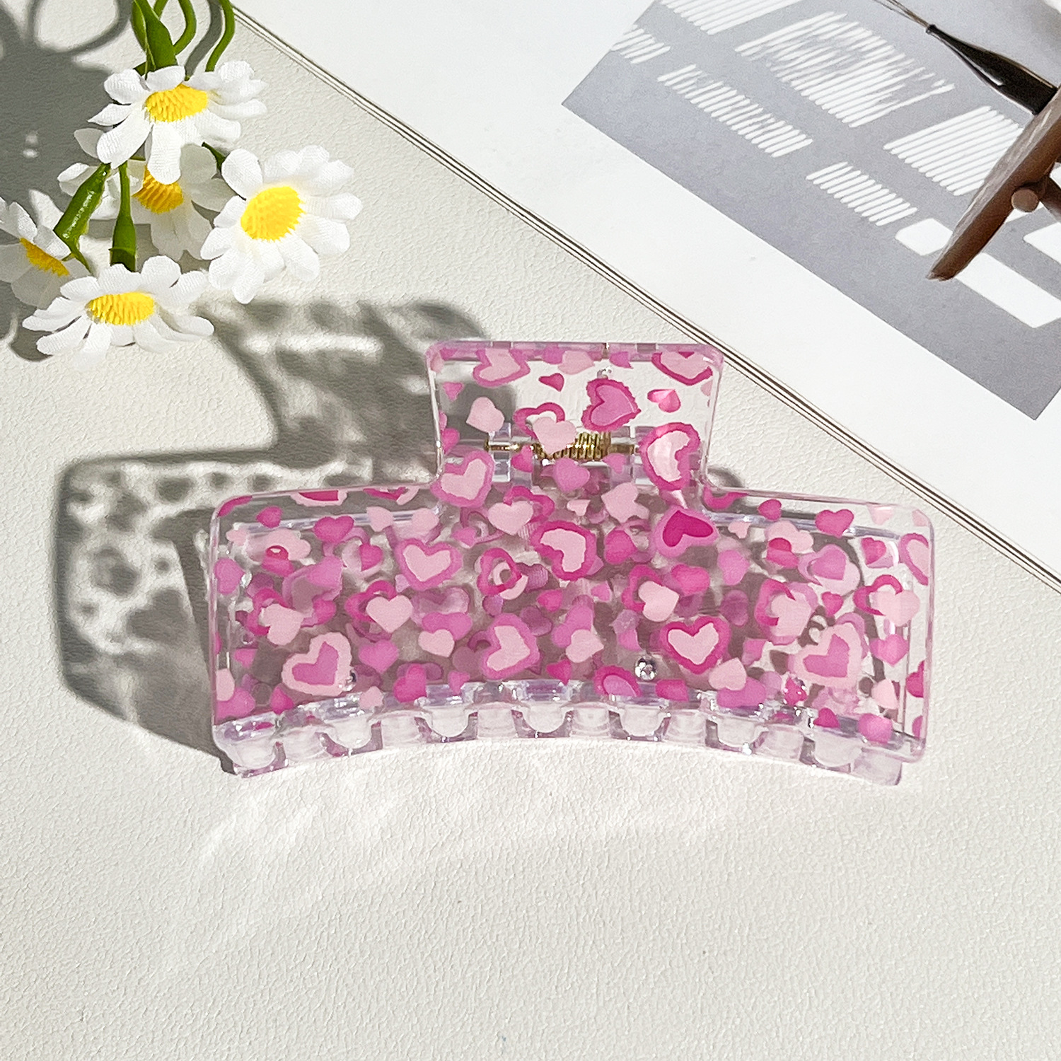 新款热转印花ps塑料水果抓夹时尚清新爪夹女士鲨鱼夹