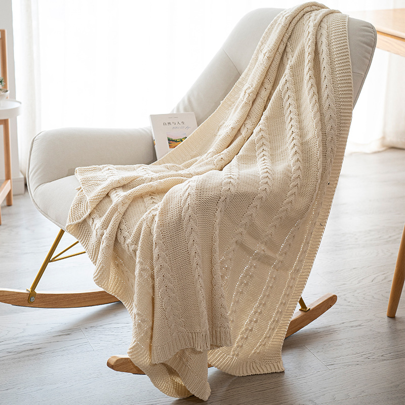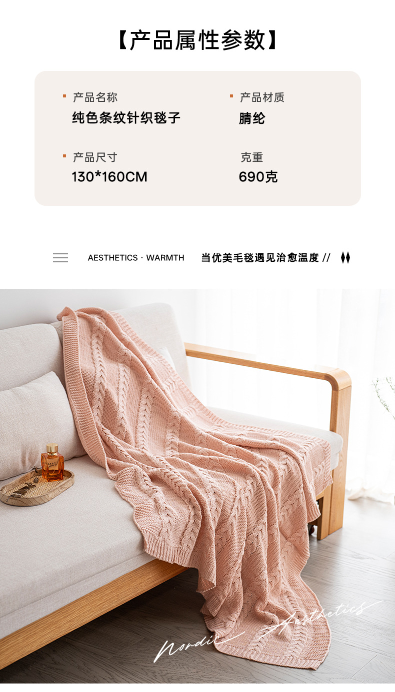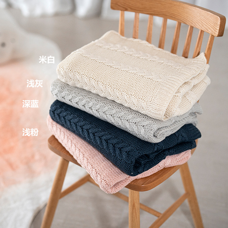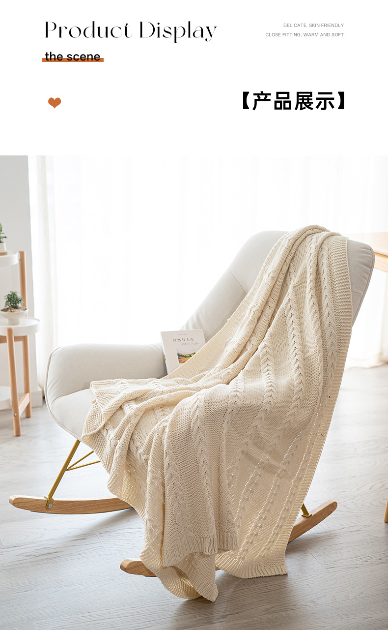 北欧ins风麻花纹针织毯办公午睡毯 简约毛线盖毯民宿床尾沙发毯潮