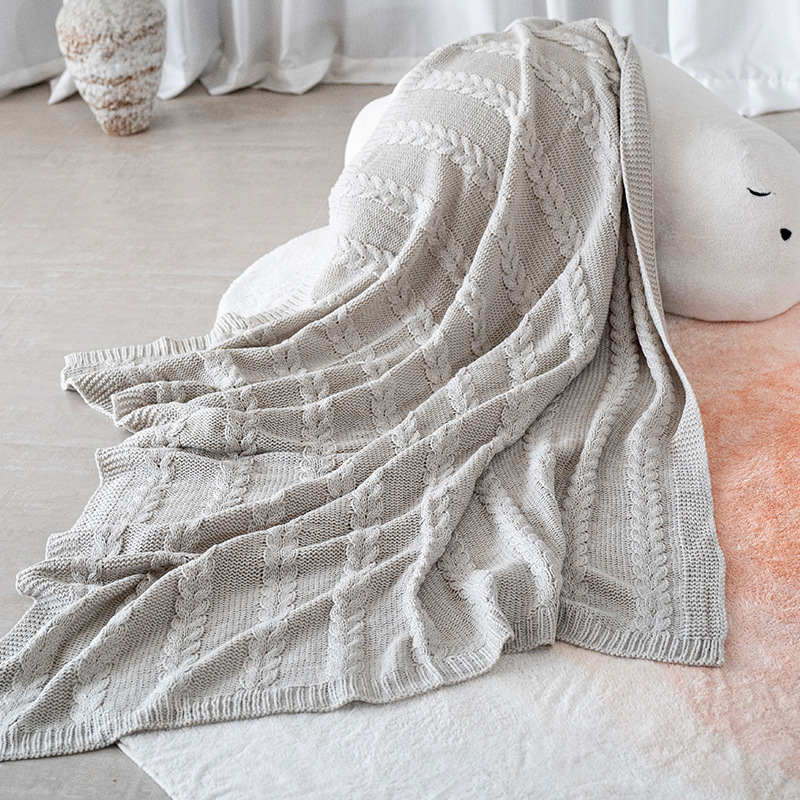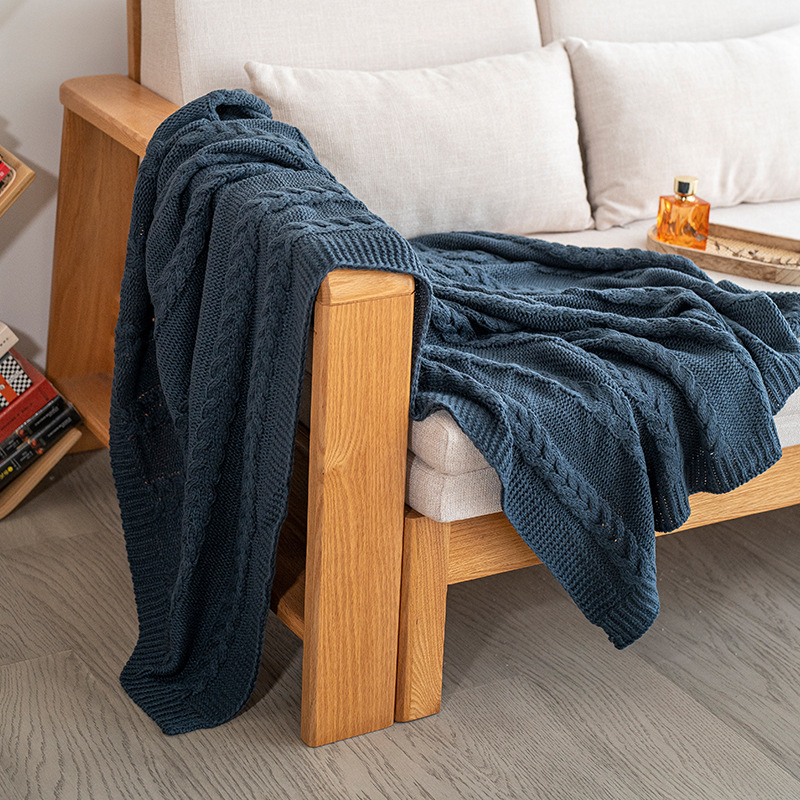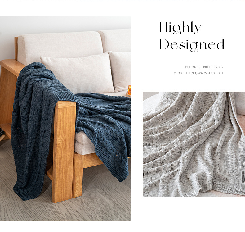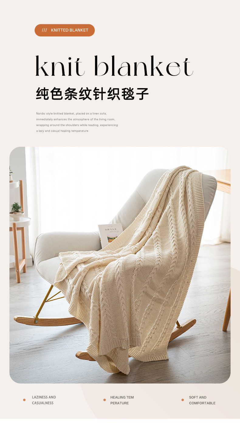 北欧ins风麻花纹针织毯办公午睡毯 简约毛线盖毯民宿床尾沙发毯潮