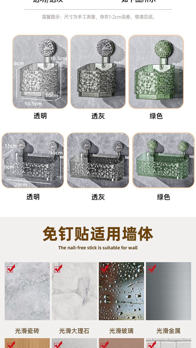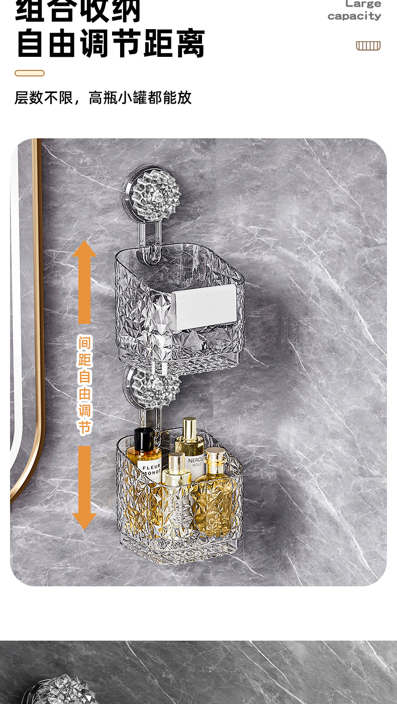 吸盘置物架卫生间厕所洗手洗漱台浴室化妆品免打孔墙上壁挂收纳盒