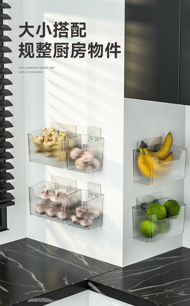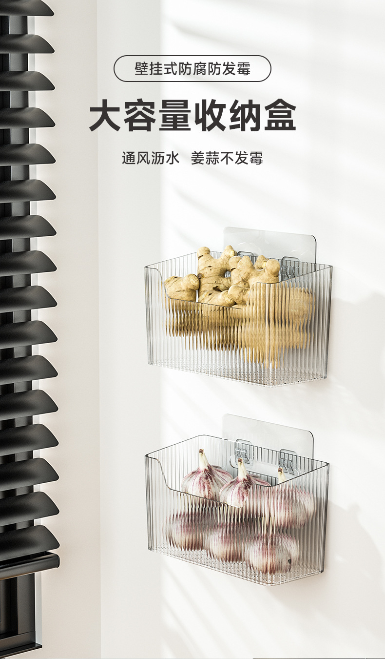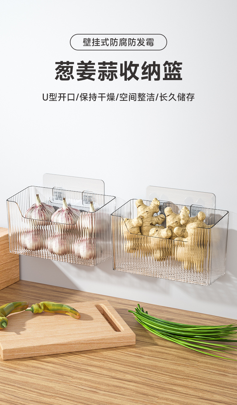 厨房葱姜蒜收纳筐壁挂式生姜大蒜置物篮挂墙调料架食物收纳盒神器
