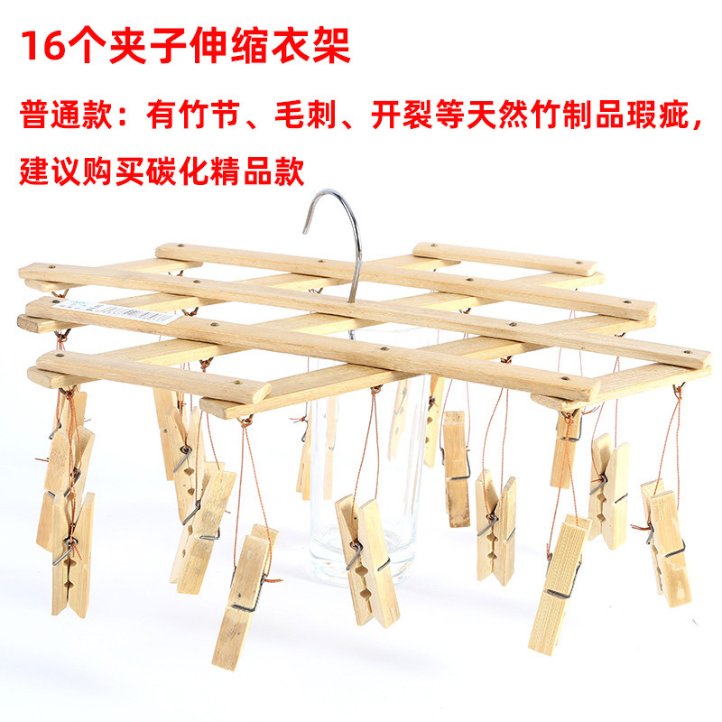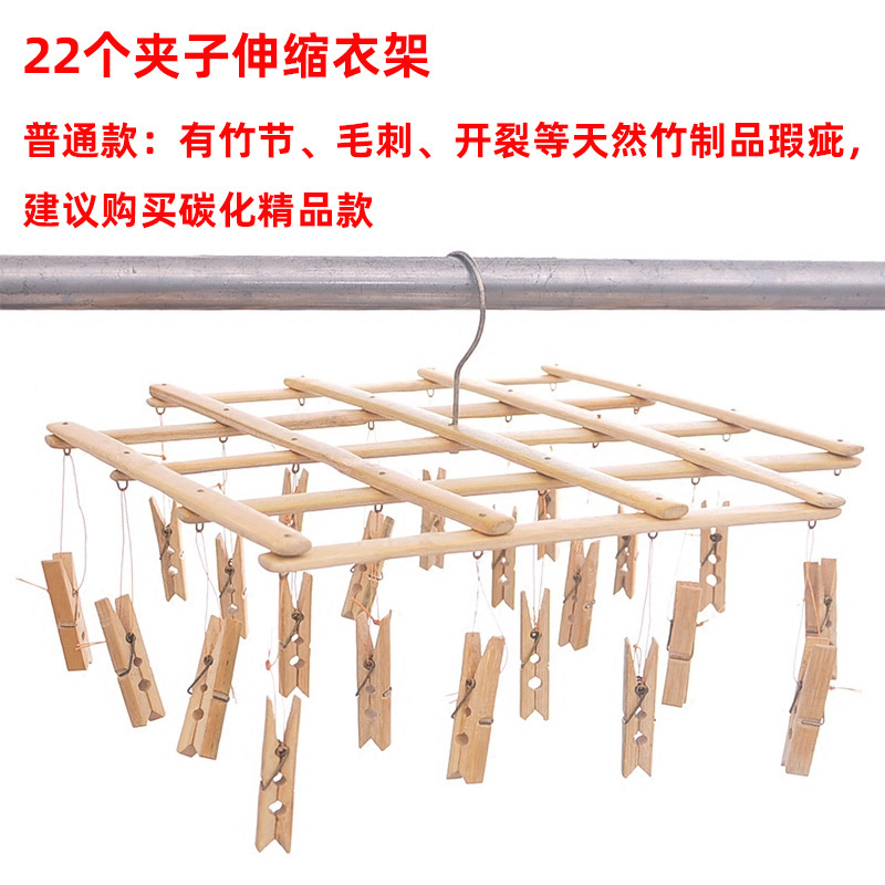 老式竹裤架带多夹裤夹子家用无痕挂裤子专用竹架伸缩挂衣架晾晒夹