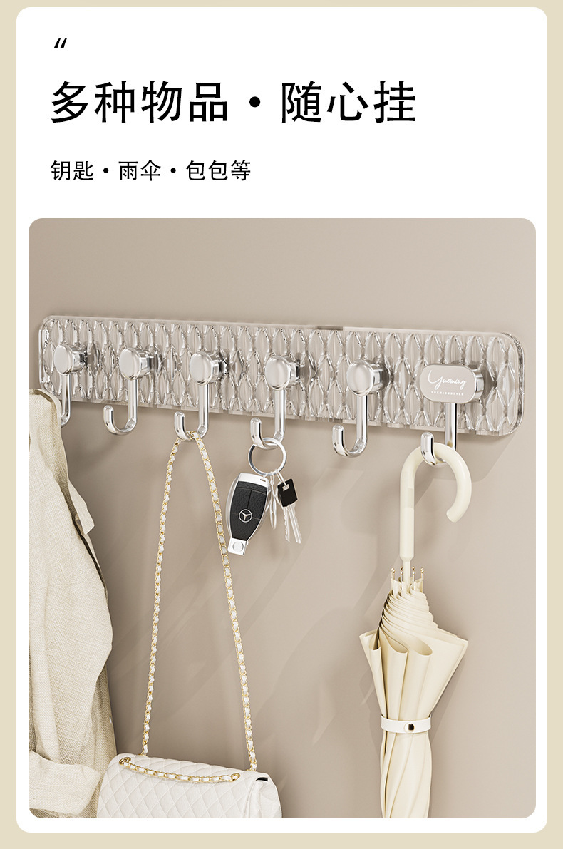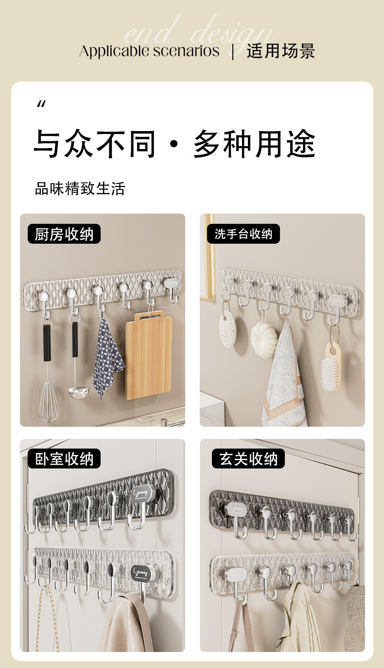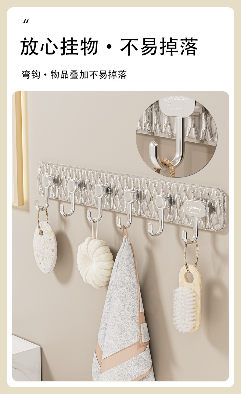 轻奢创意六连排挂钩强力粘贴免打孔无痕粘钩门后衣帽钩厨房收纳钩