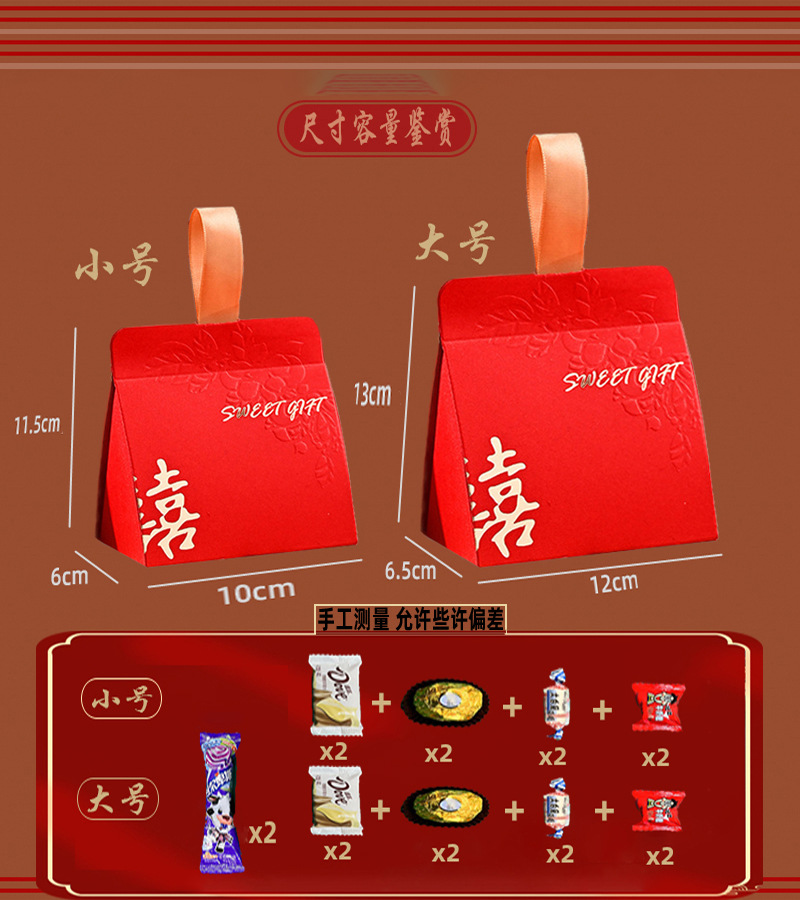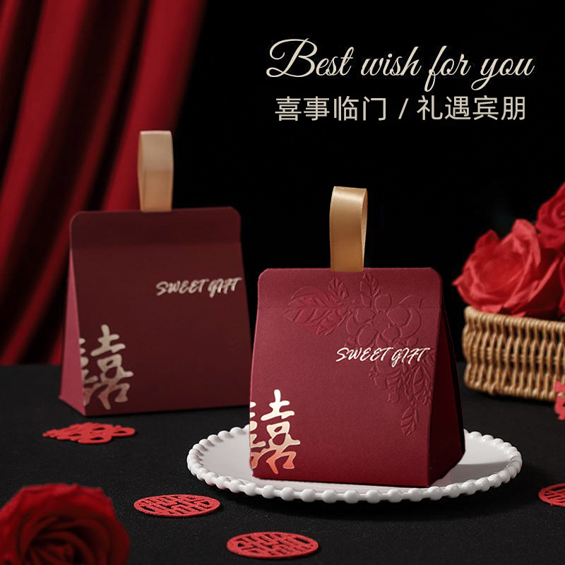 中式手提免折叠结婚喜糖盒子订婚喜糖袋创意新款婚庆糖果纸盒空盒
