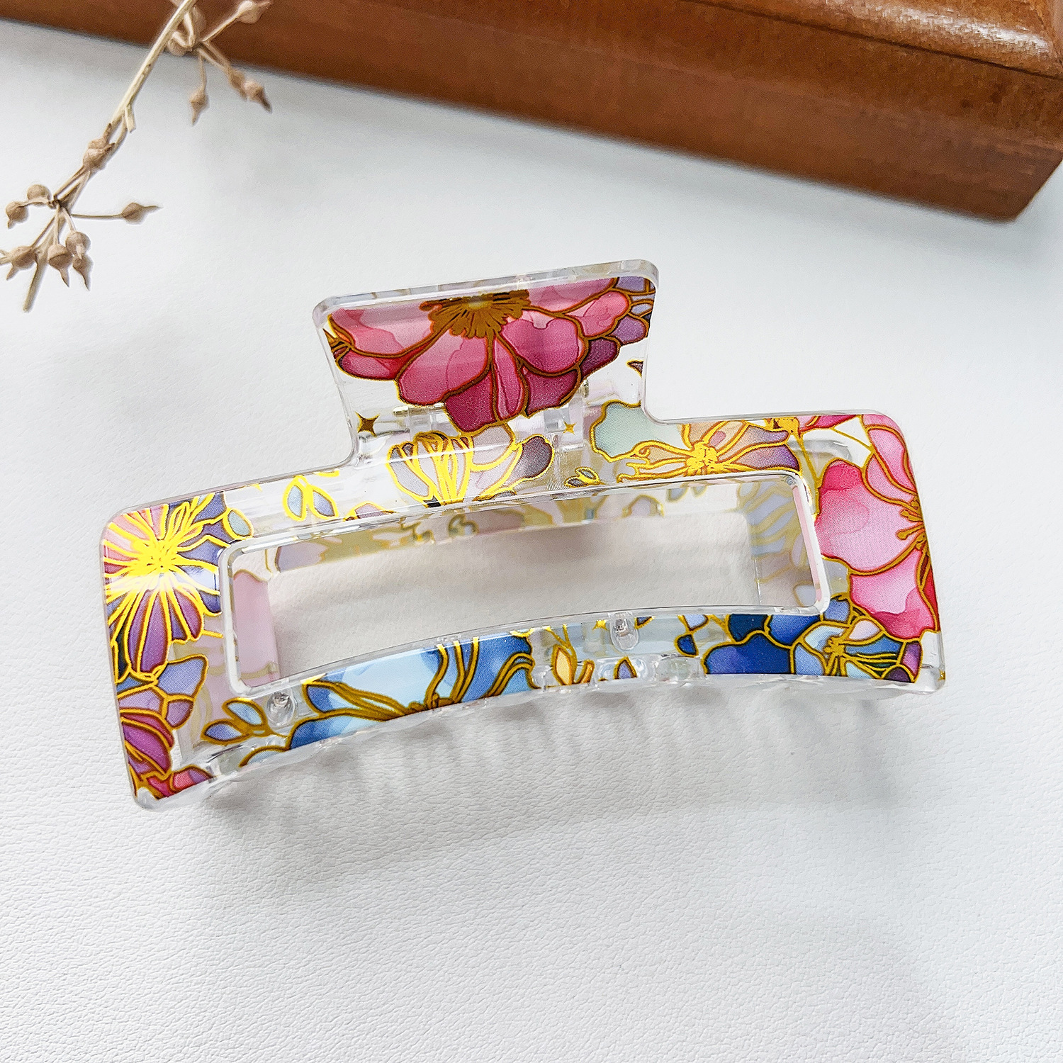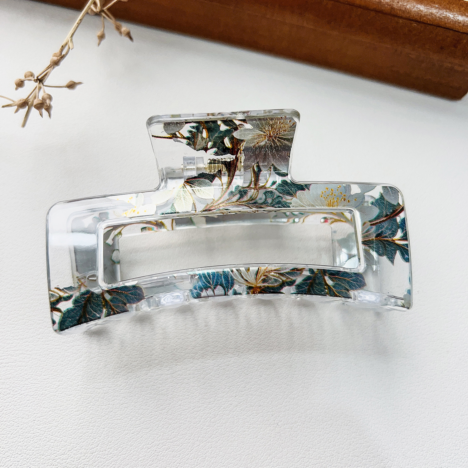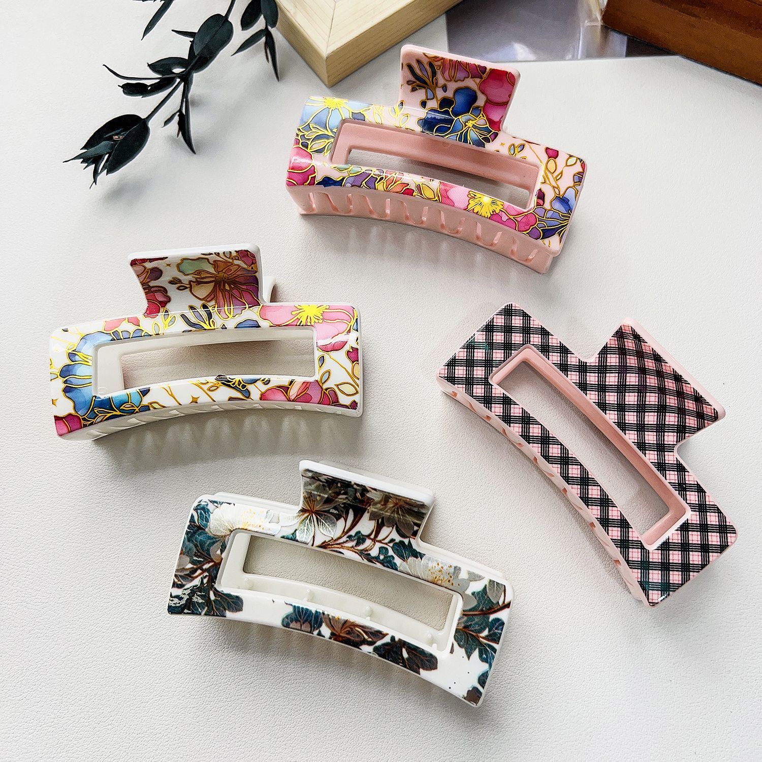 热转印花夹子新款跨境盘发抓夹半扎鲨鱼夹发饰发卡