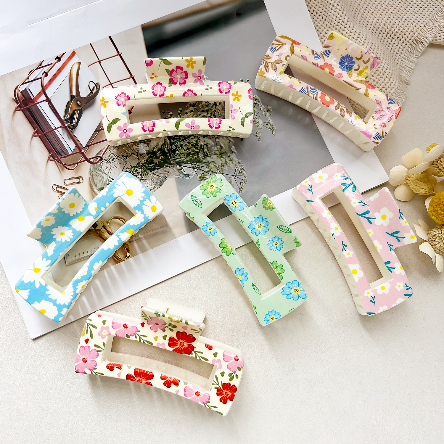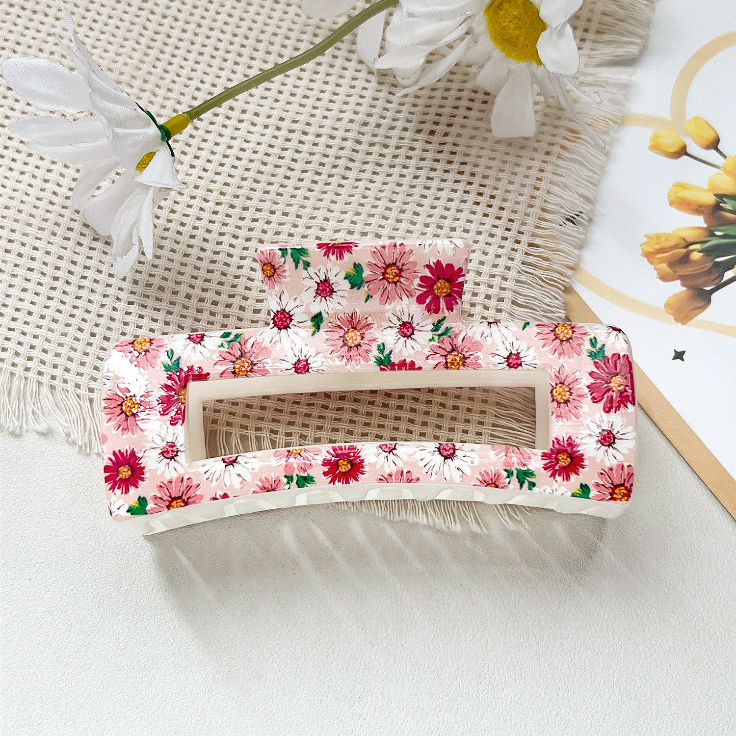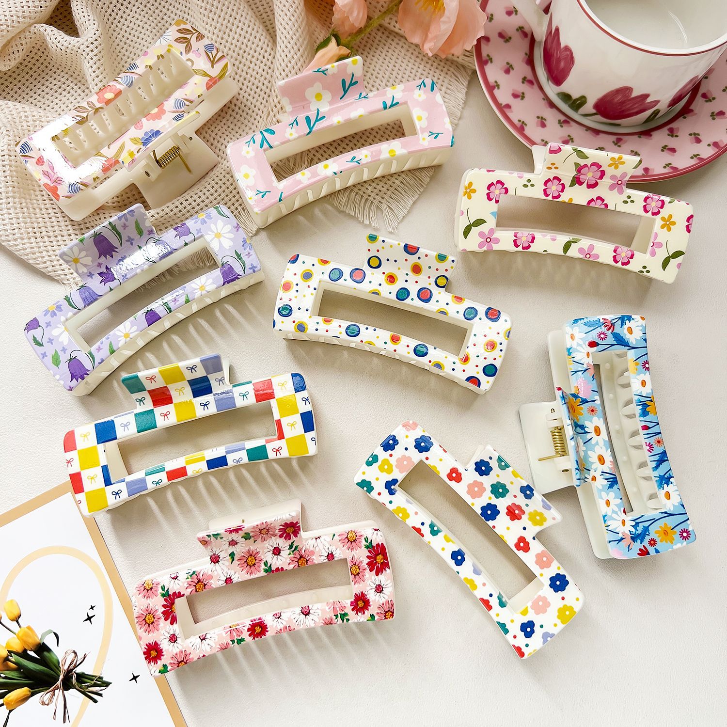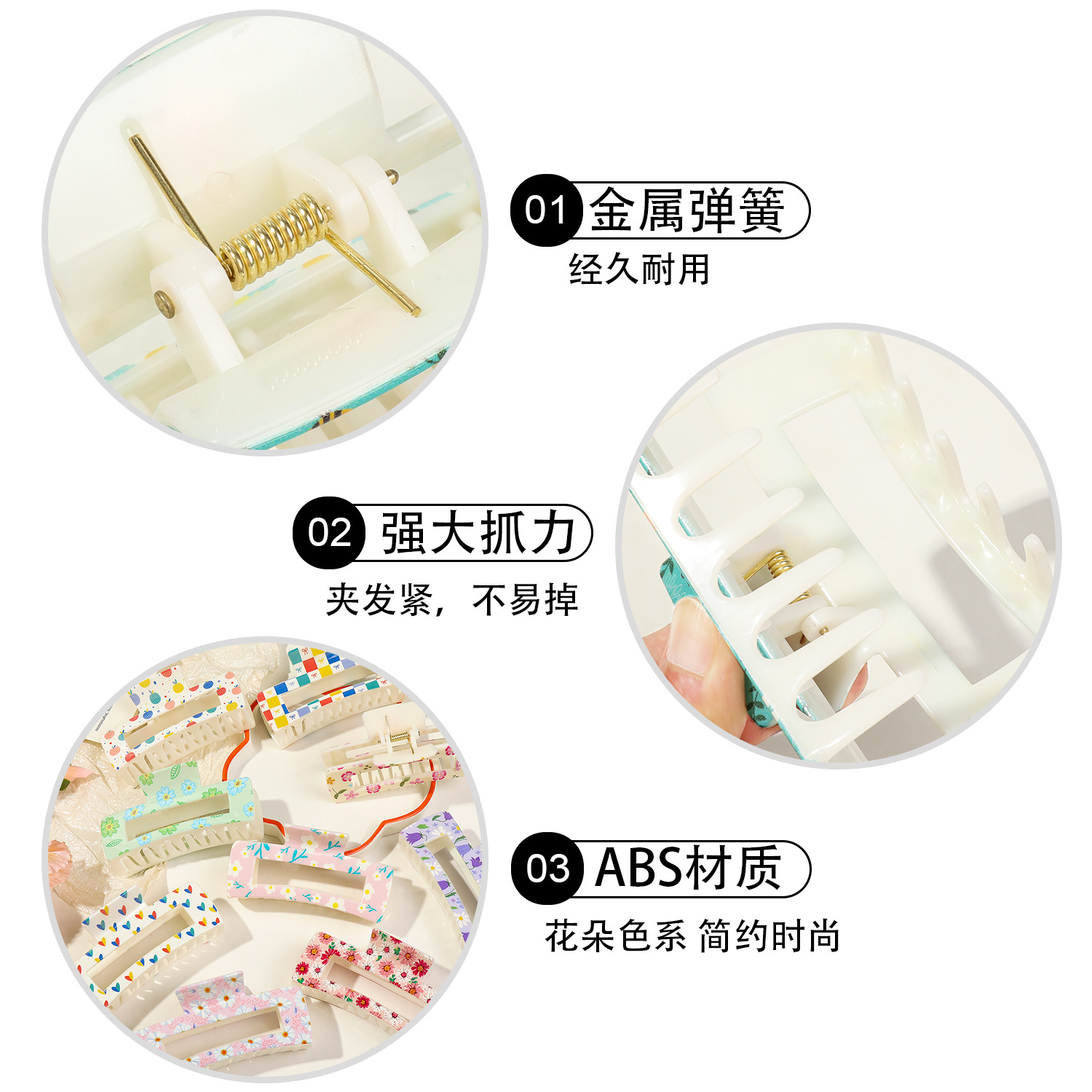 UV印花方形发夹跨境热销高级感盘发鲨鱼夹后脑勺半扎抓夹厂家直销
