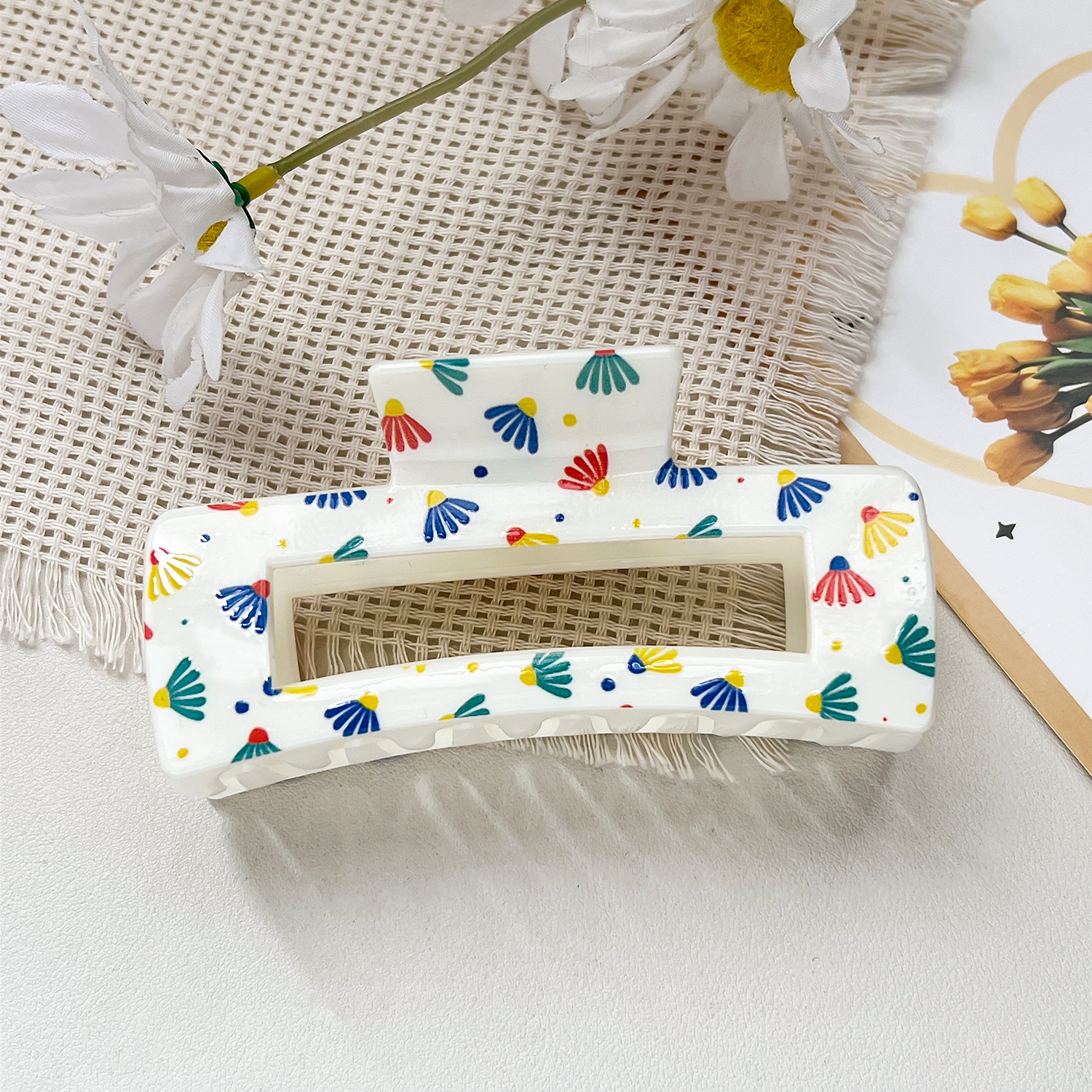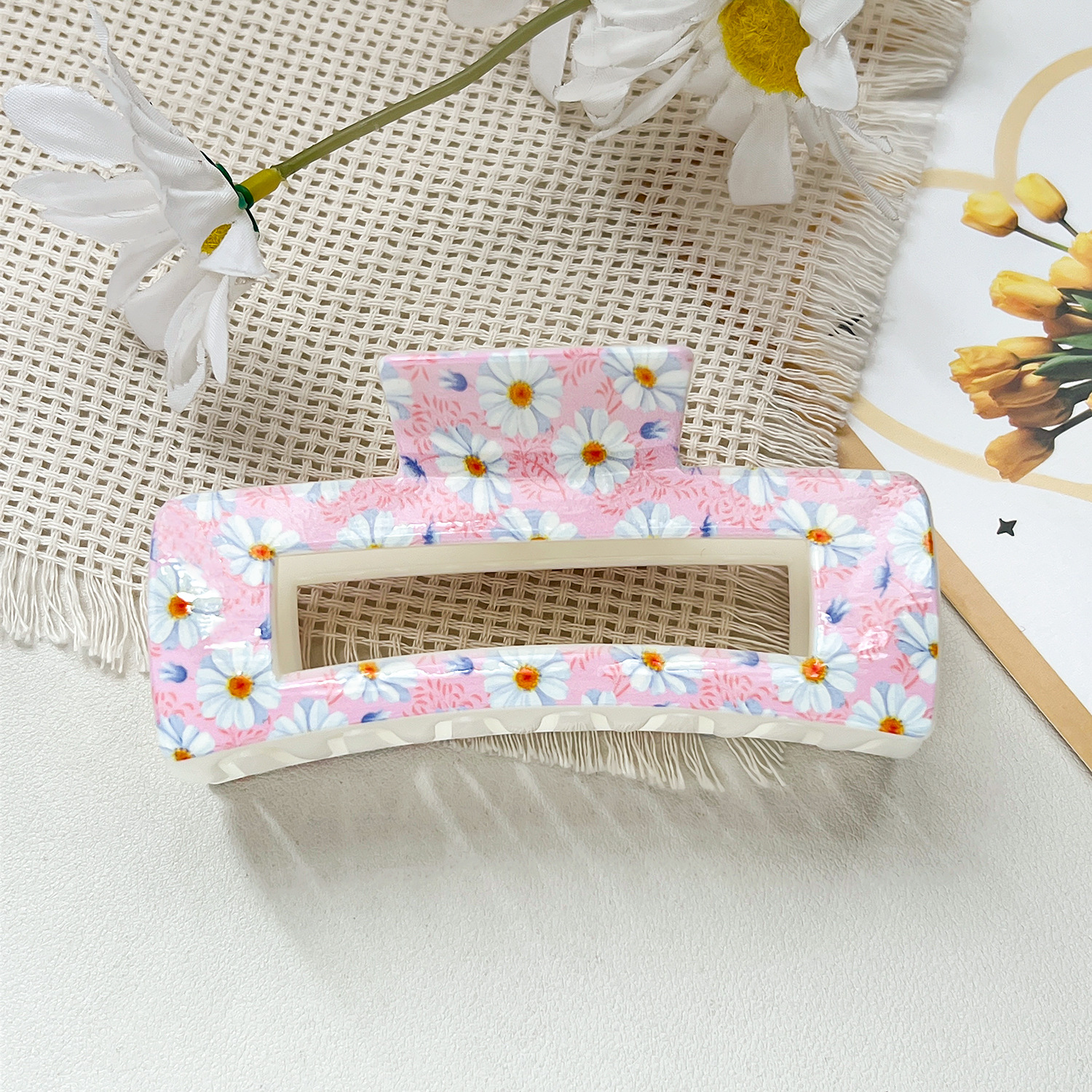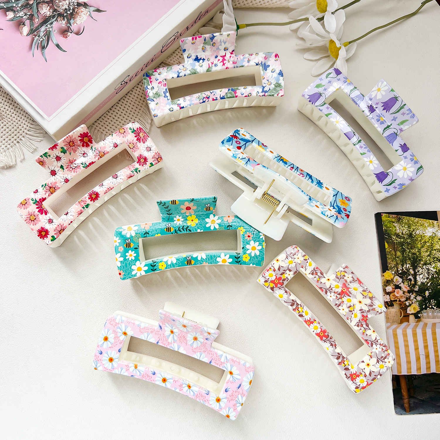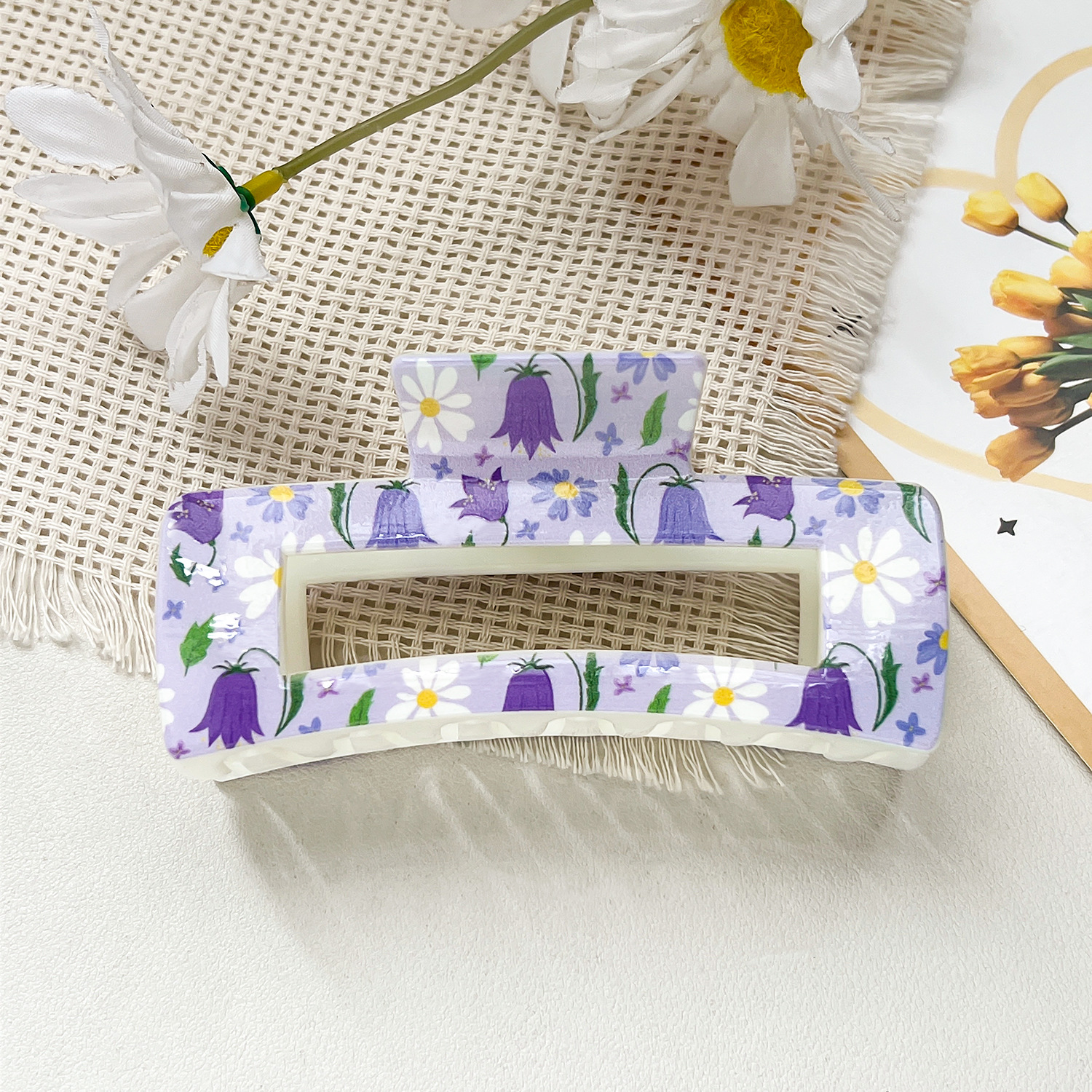 UV印花方形发夹跨境热销高级感盘发鲨鱼夹后脑勺半扎抓夹厂家直销