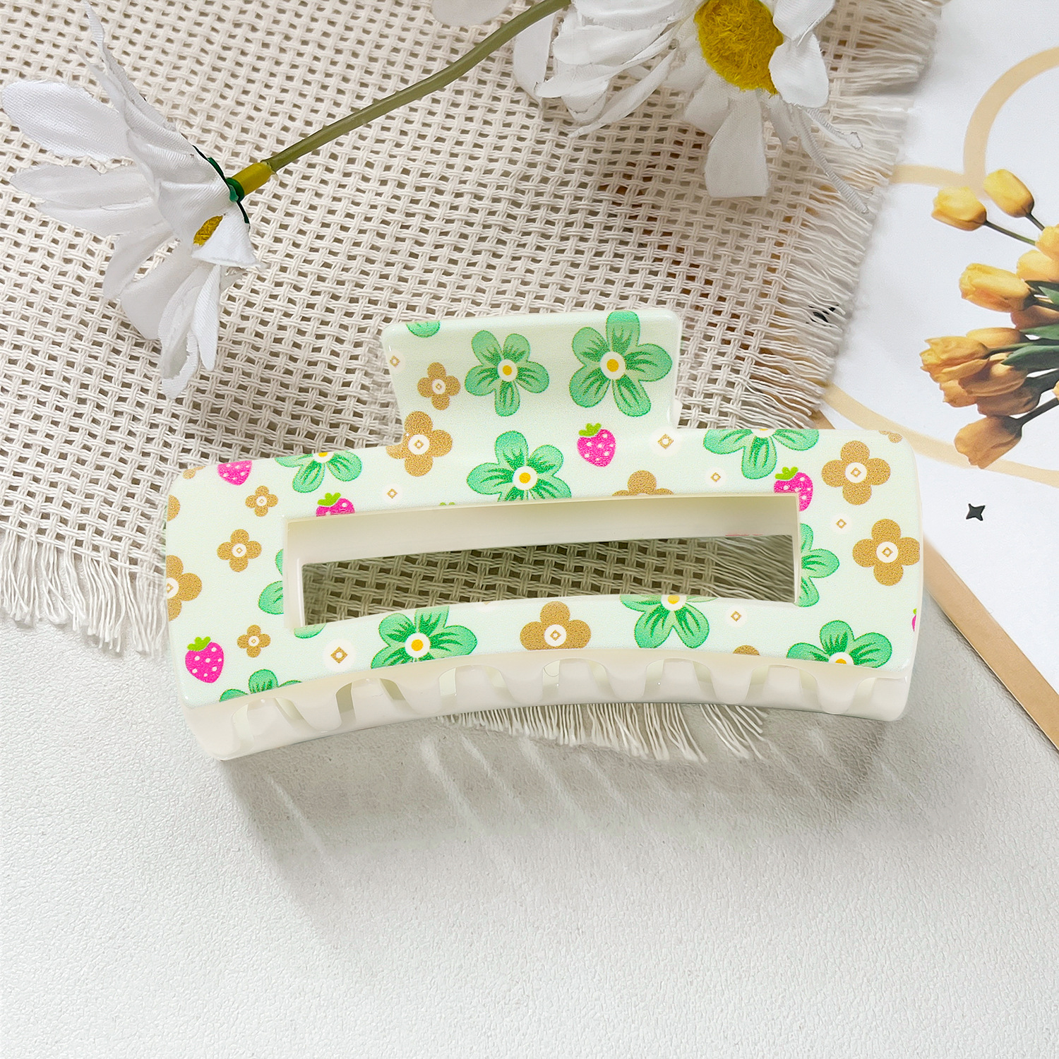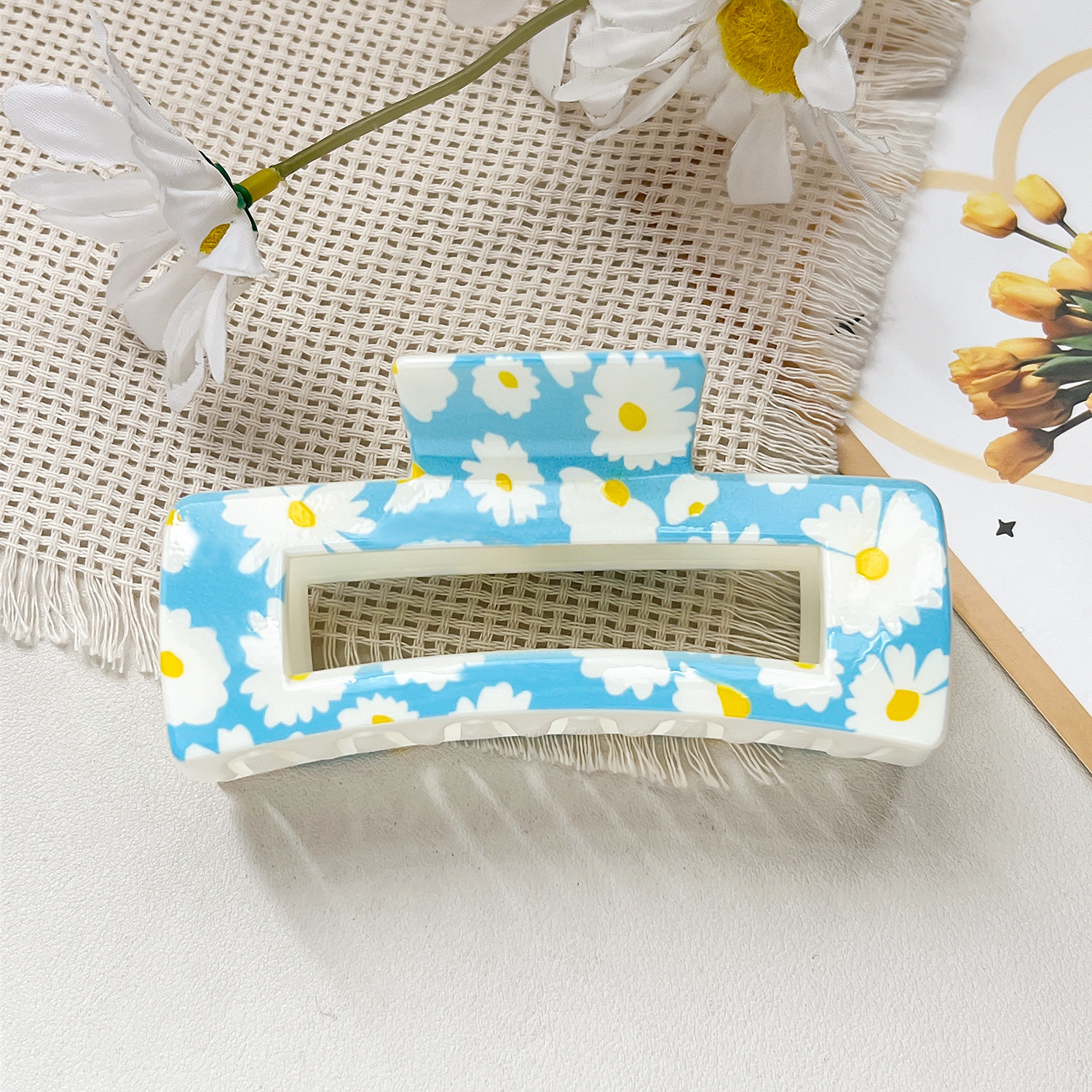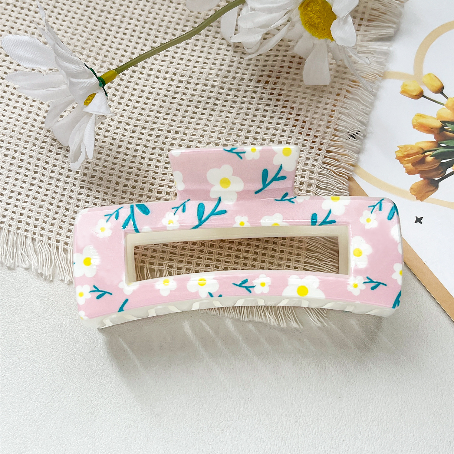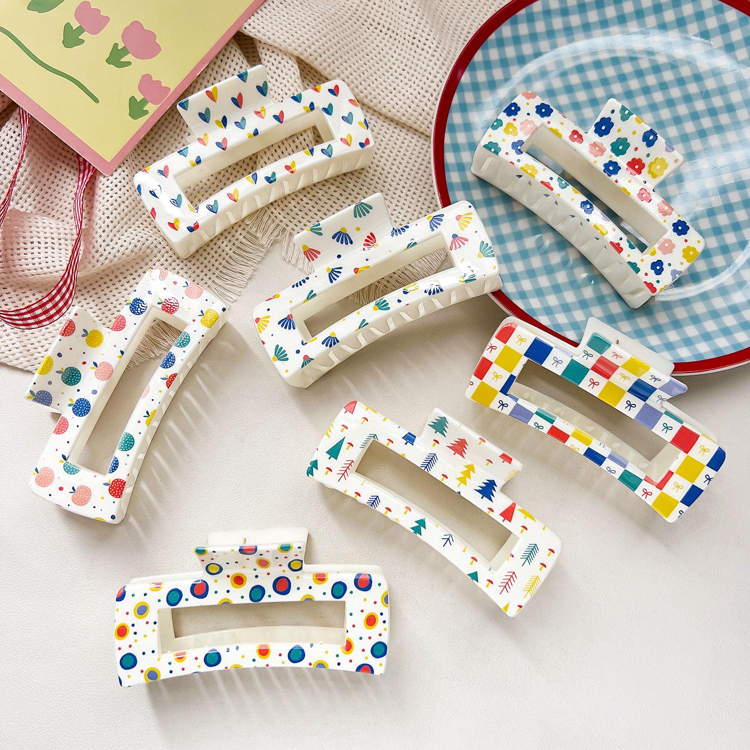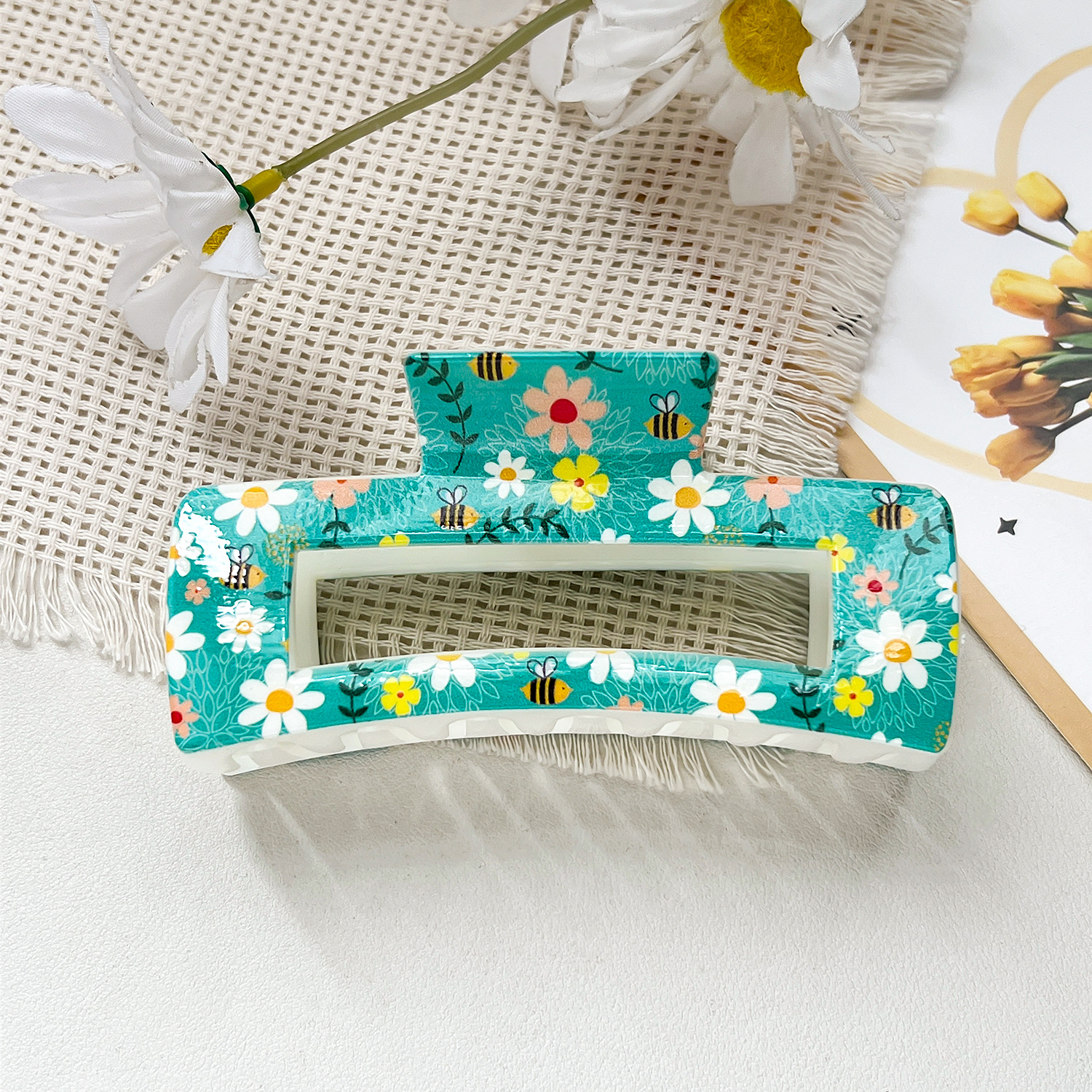 UV印花方形发夹跨境热销高级感盘发鲨鱼夹后脑勺半扎抓夹厂家直销