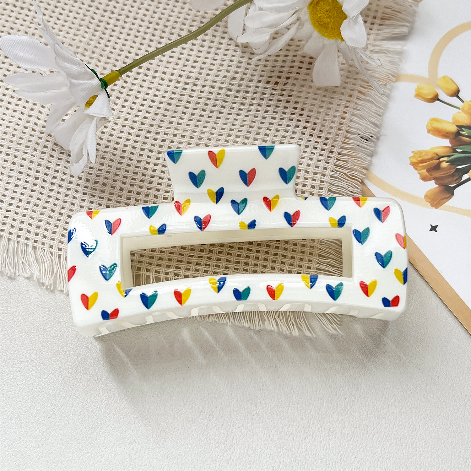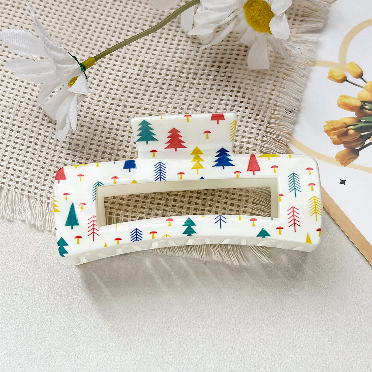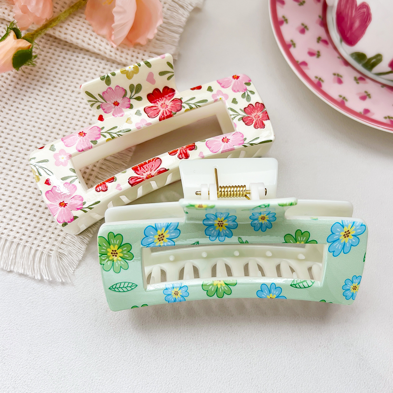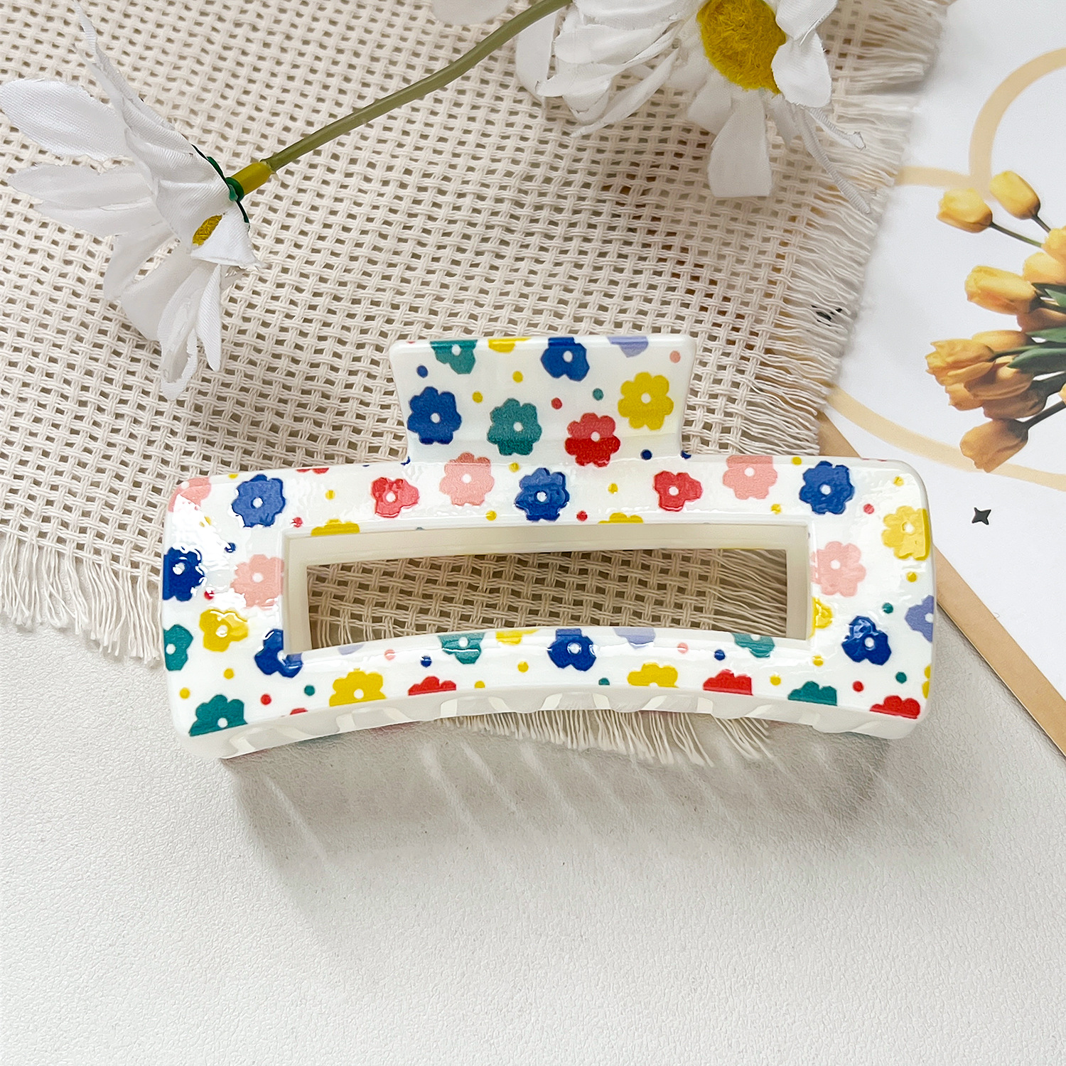 UV印花方形发夹跨境热销高级感盘发鲨鱼夹后脑勺半扎抓夹厂家直销
