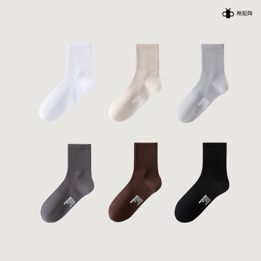 袜矩阵【大后跟男】棉袜无骨四季简约百搭运动吸汗男士中筒袜