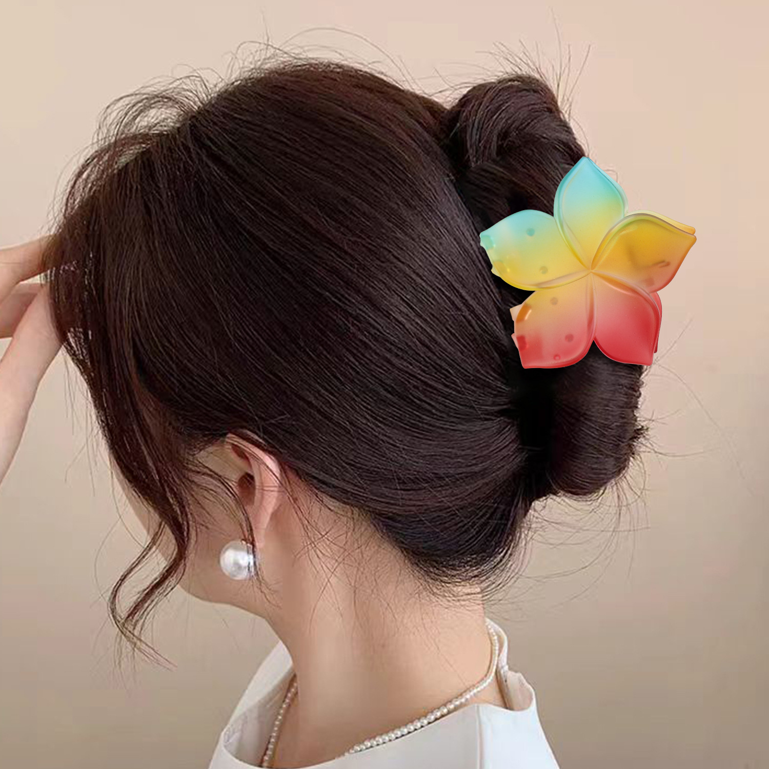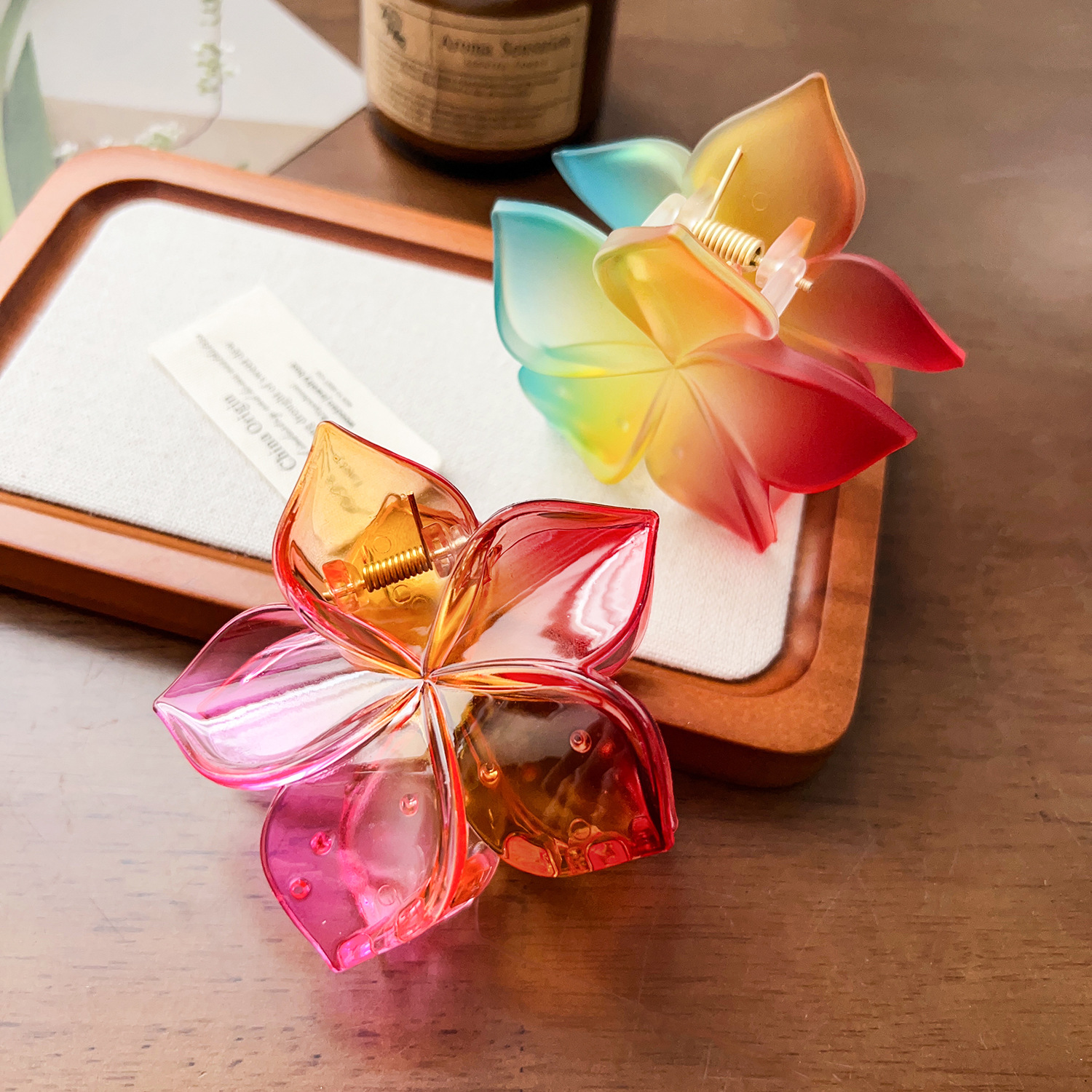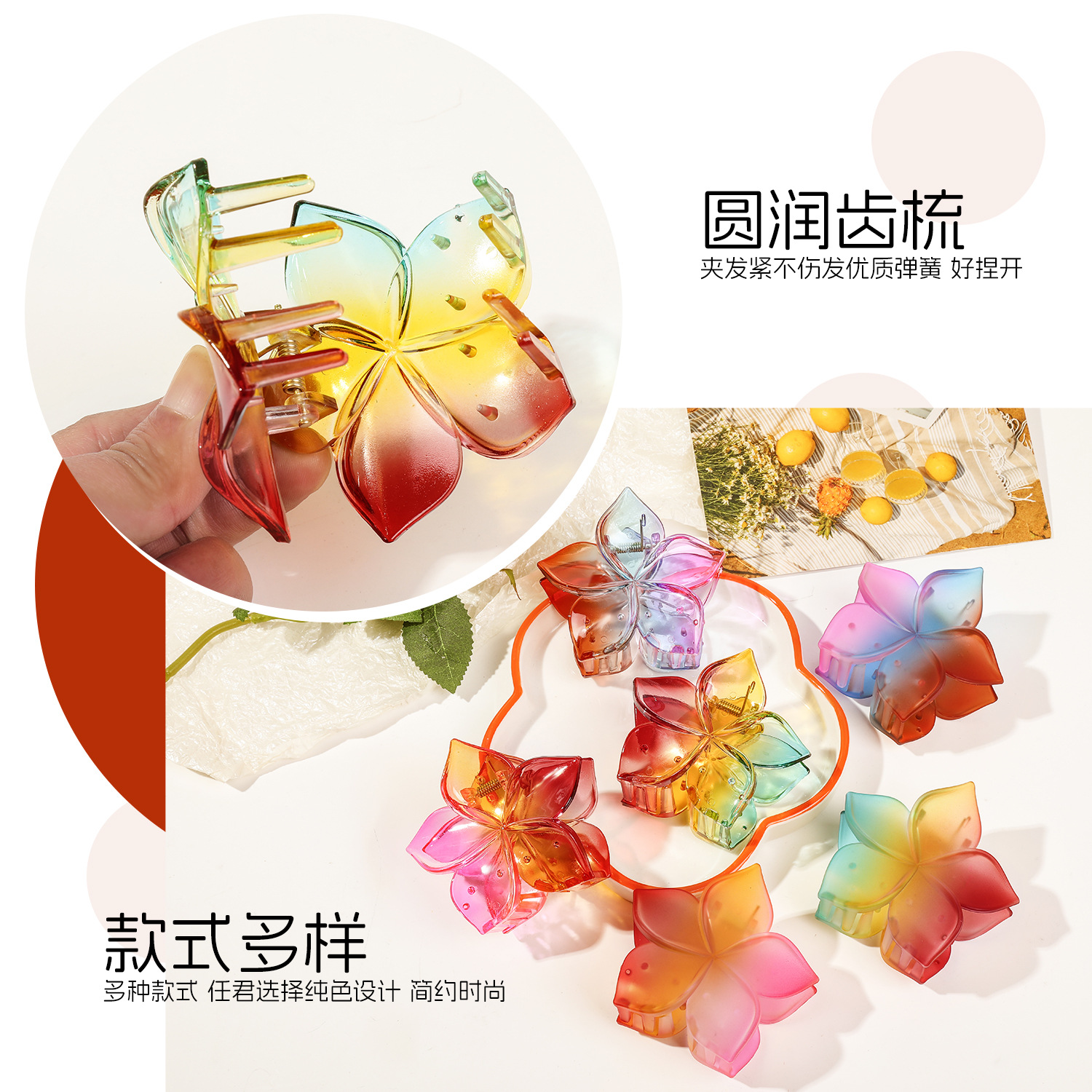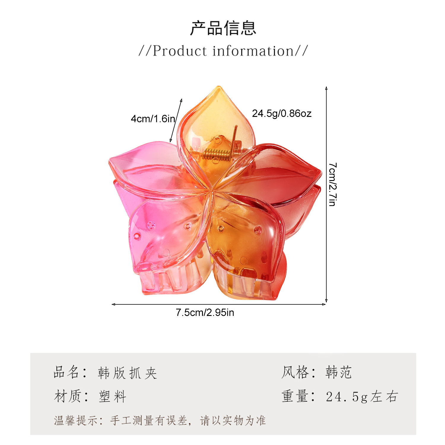 跨境亚马逊热销渐变花朵发夹简约后脑勺盘发鲨鱼夹新款五瓣花抓夹