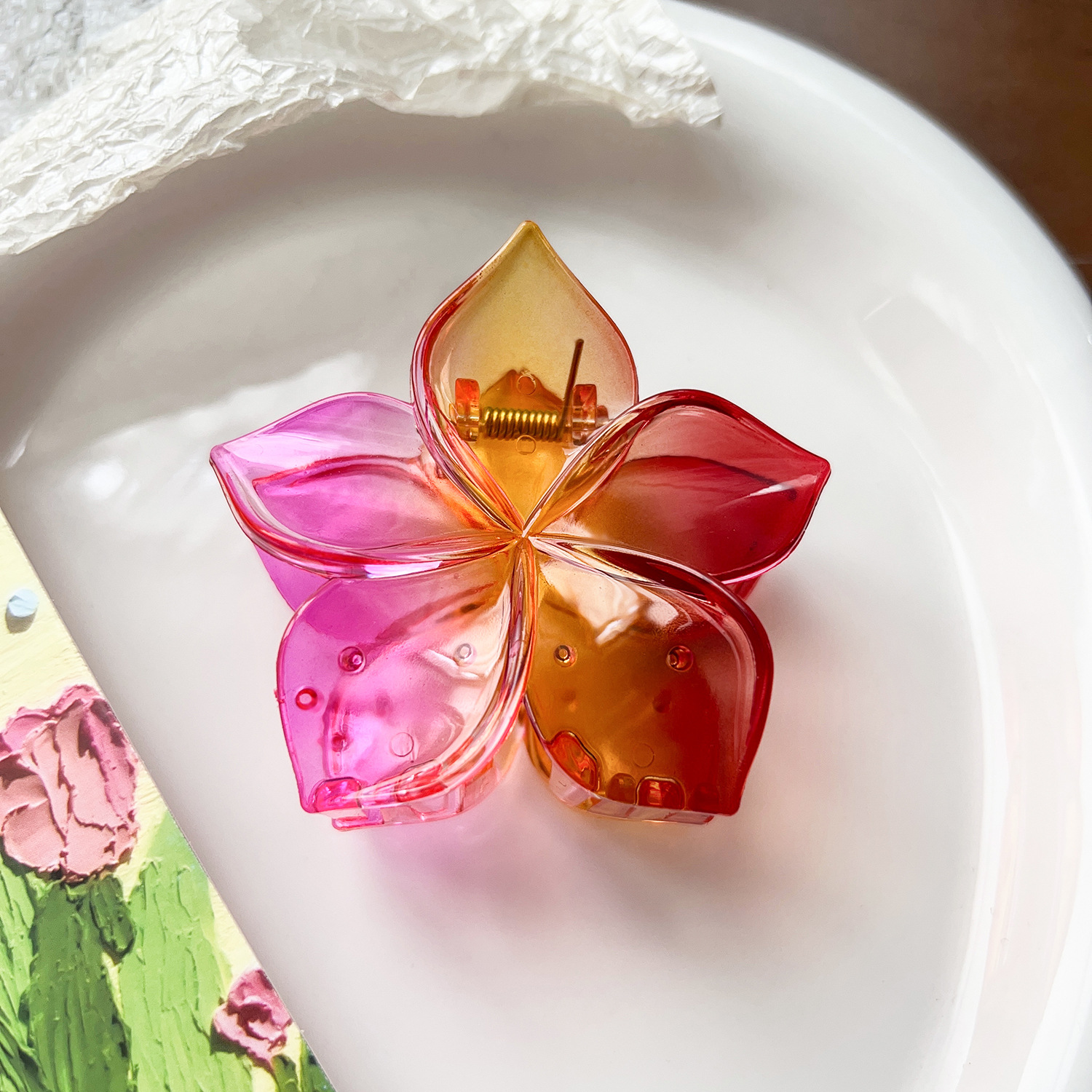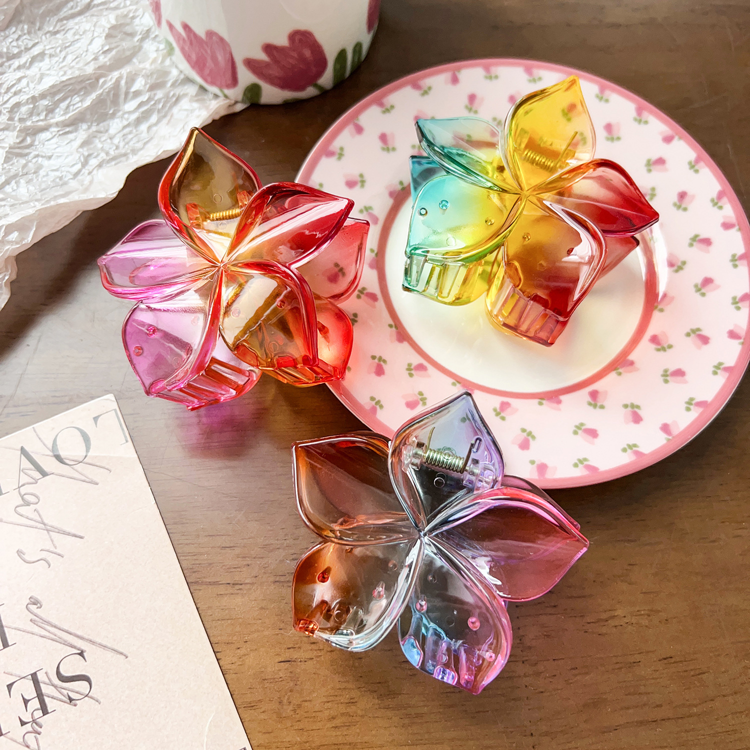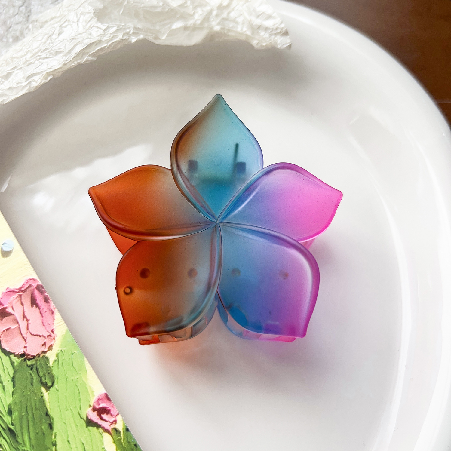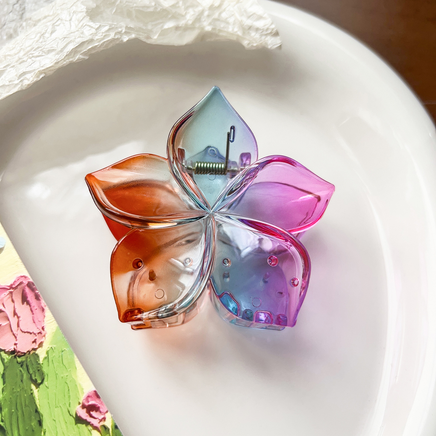 跨境亚马逊热销渐变花朵发夹简约后脑勺盘发鲨鱼夹新款五瓣花抓夹