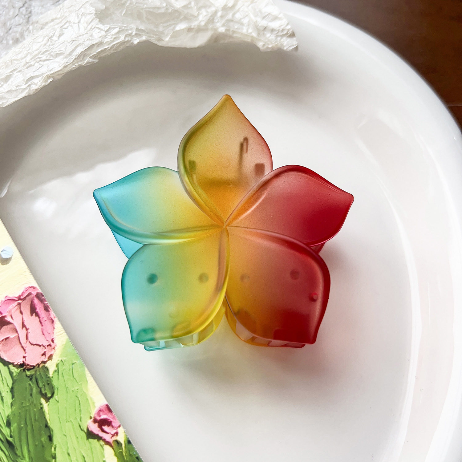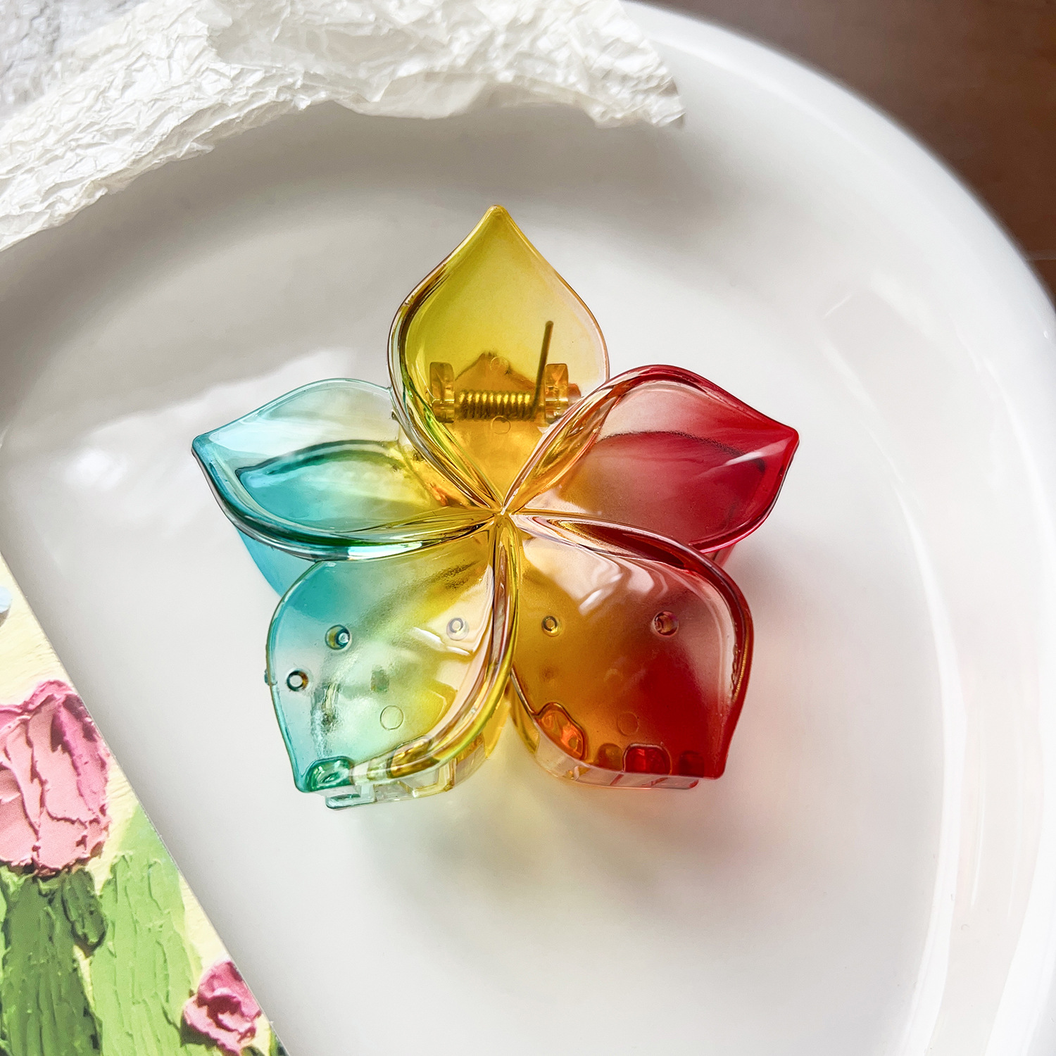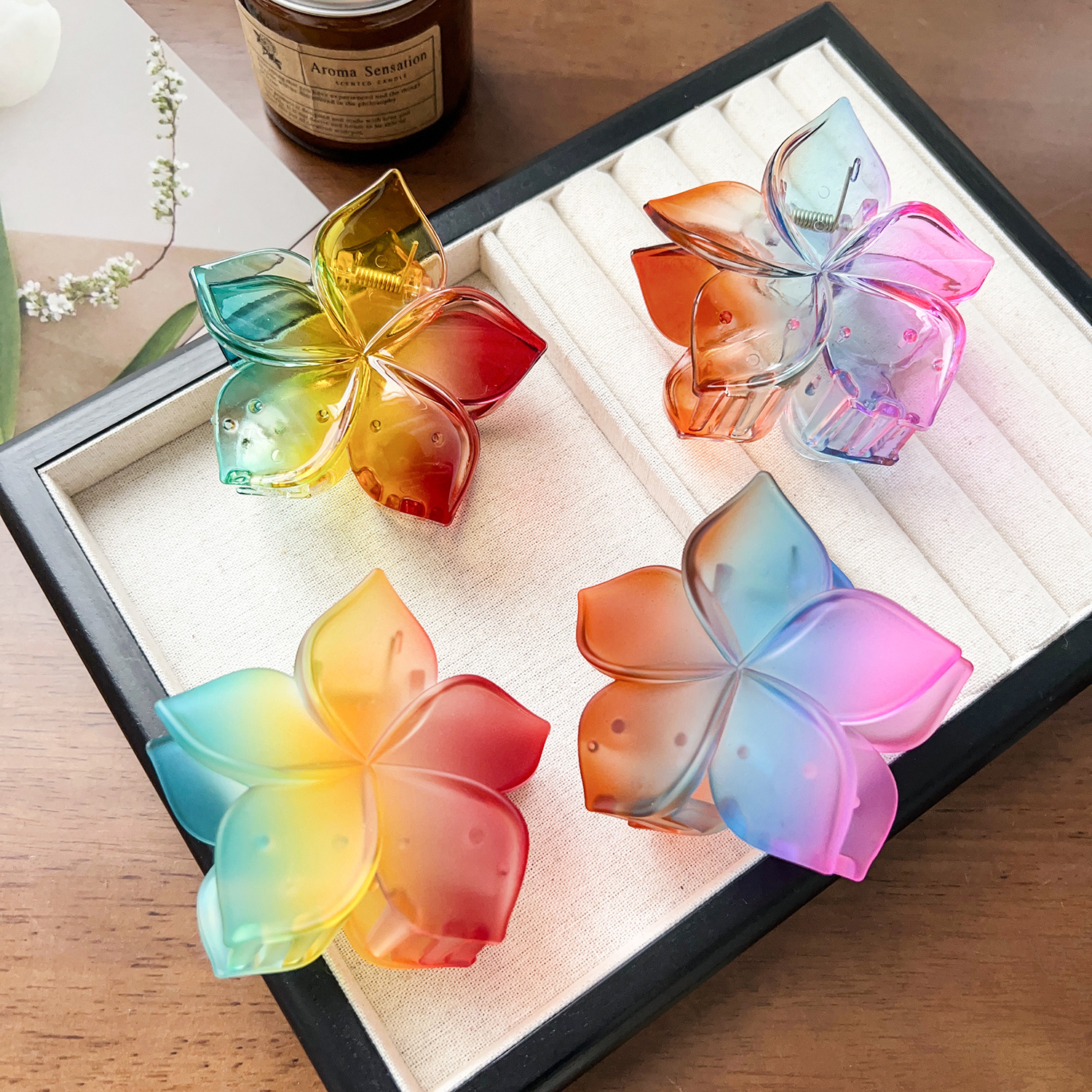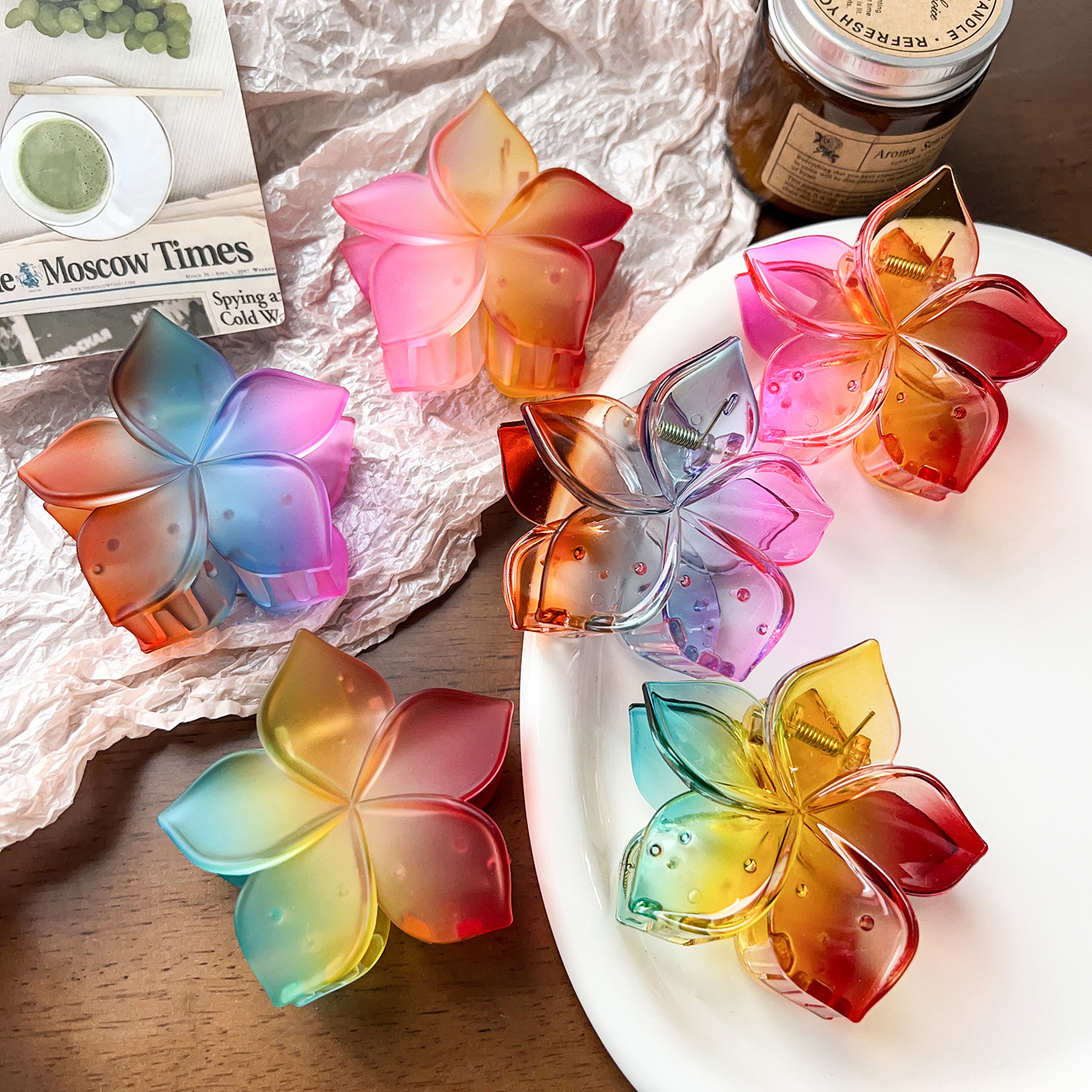 跨境亚马逊热销渐变花朵发夹简约后脑勺盘发鲨鱼夹新款五瓣花抓夹