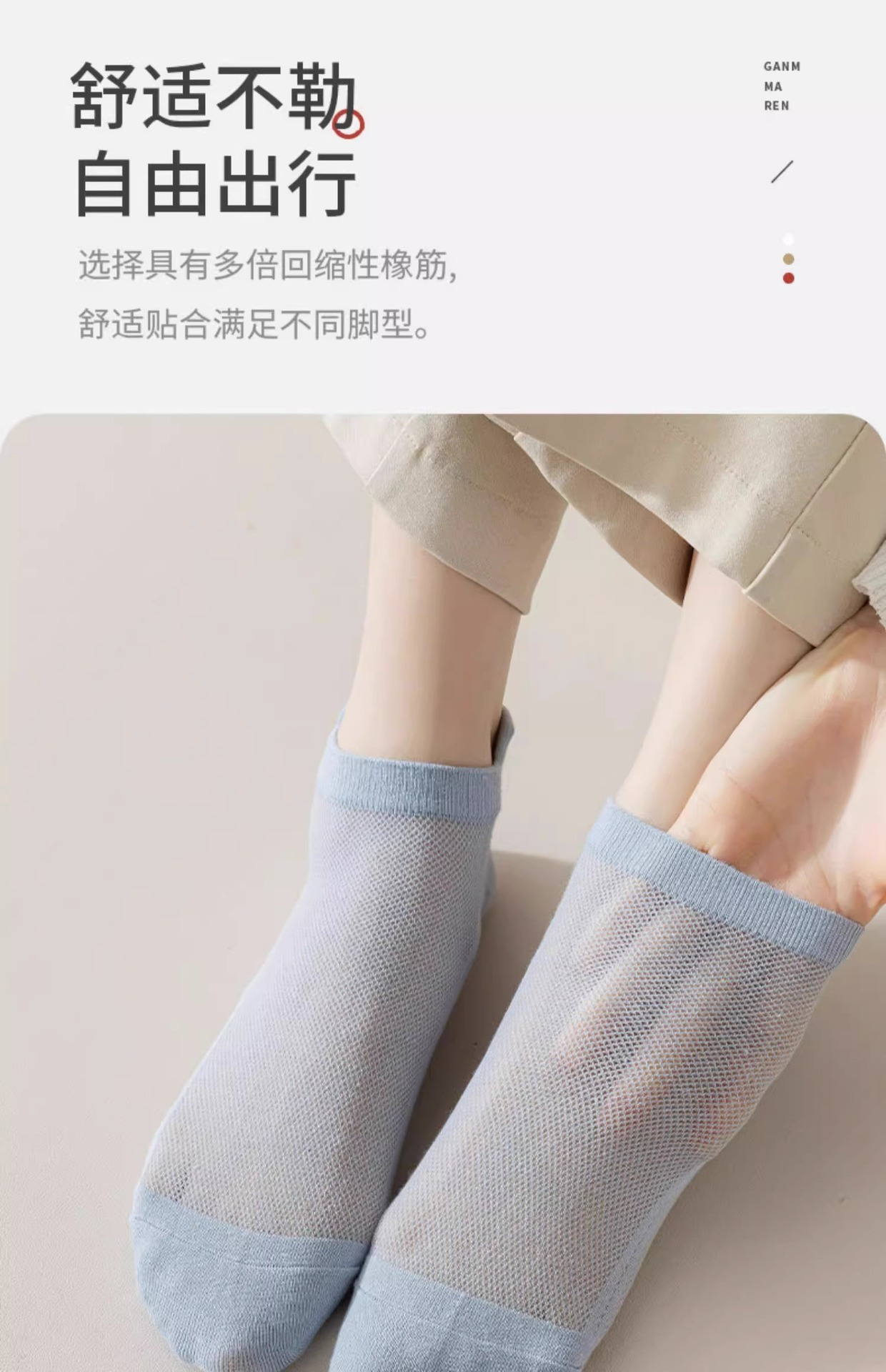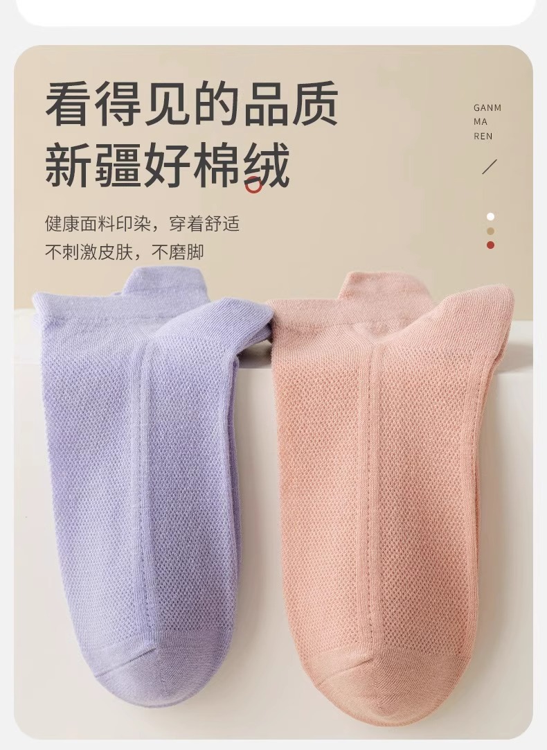 春夏季薄款袜子女士防臭吸汗春色棉袜夏天女浅口网眼船袜隐形短袜
