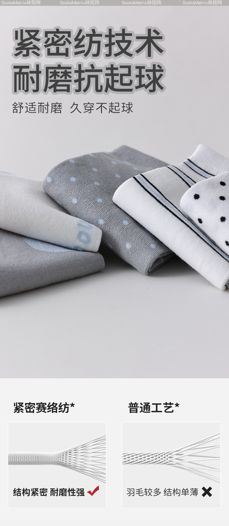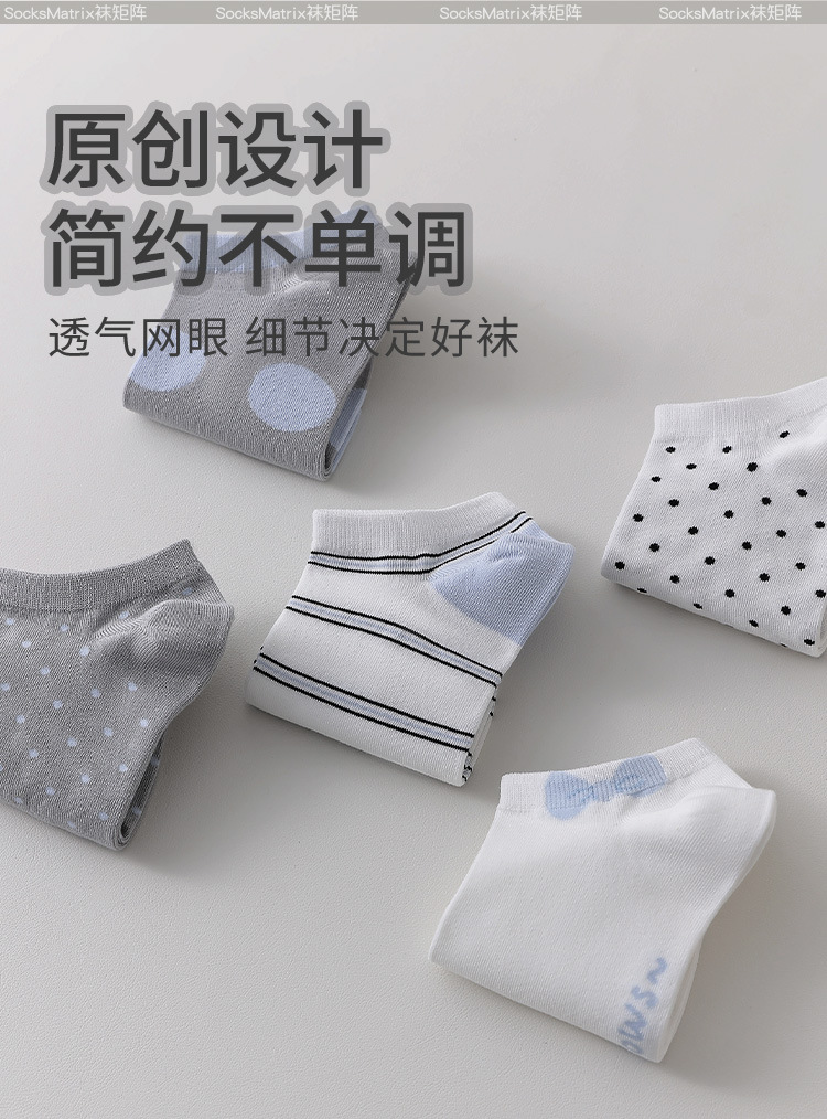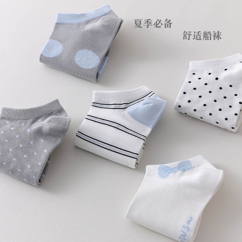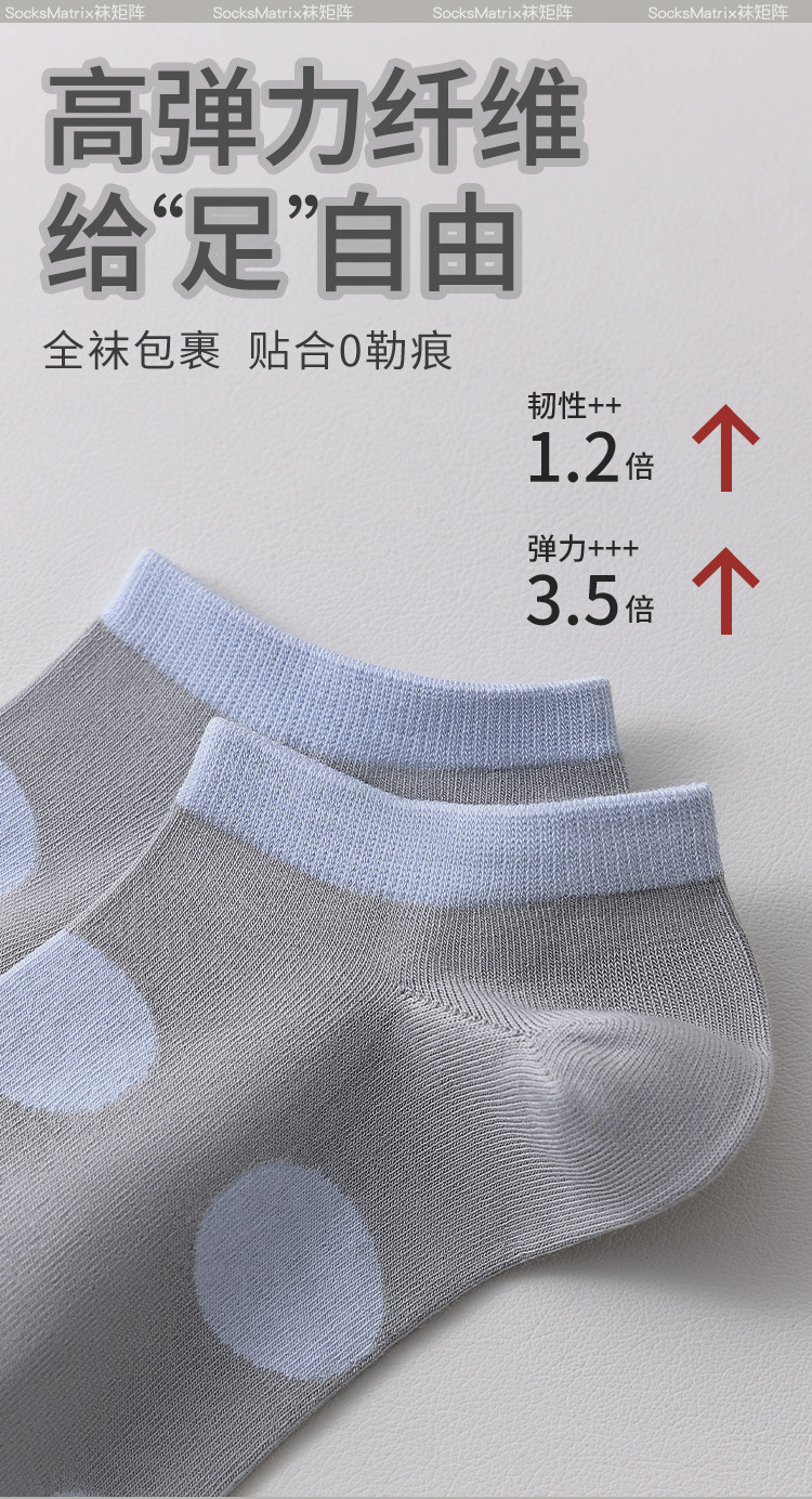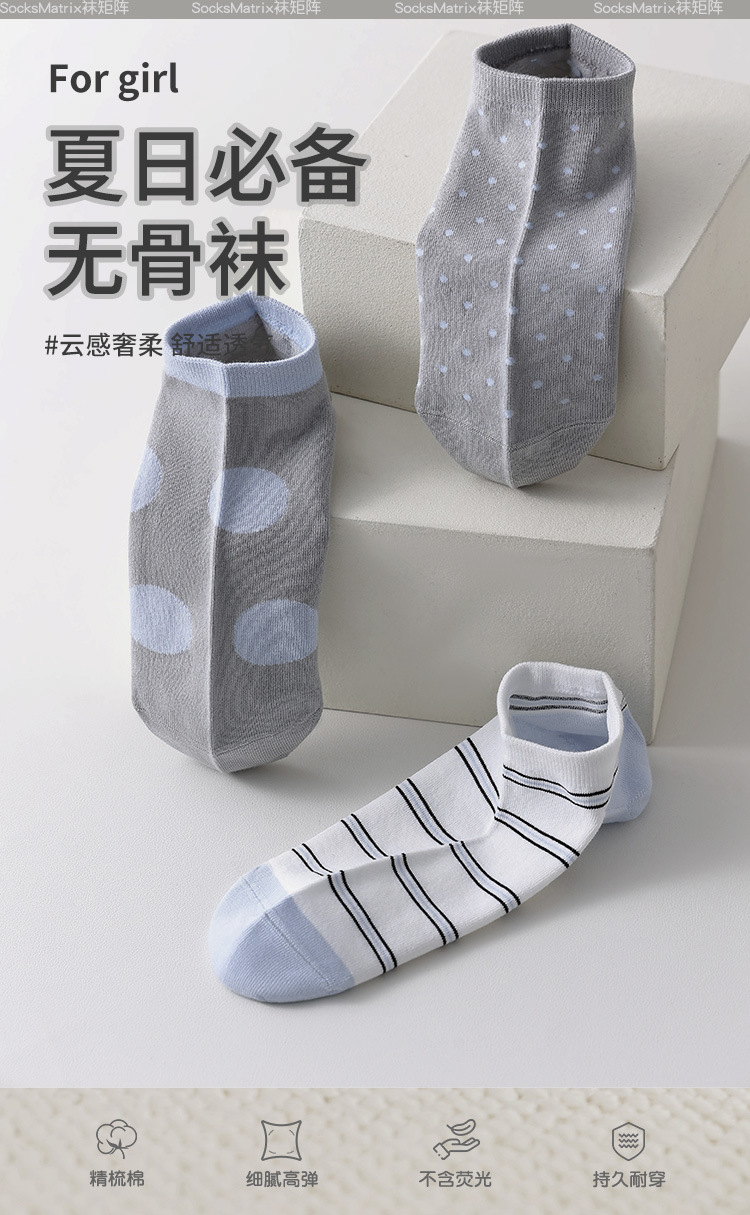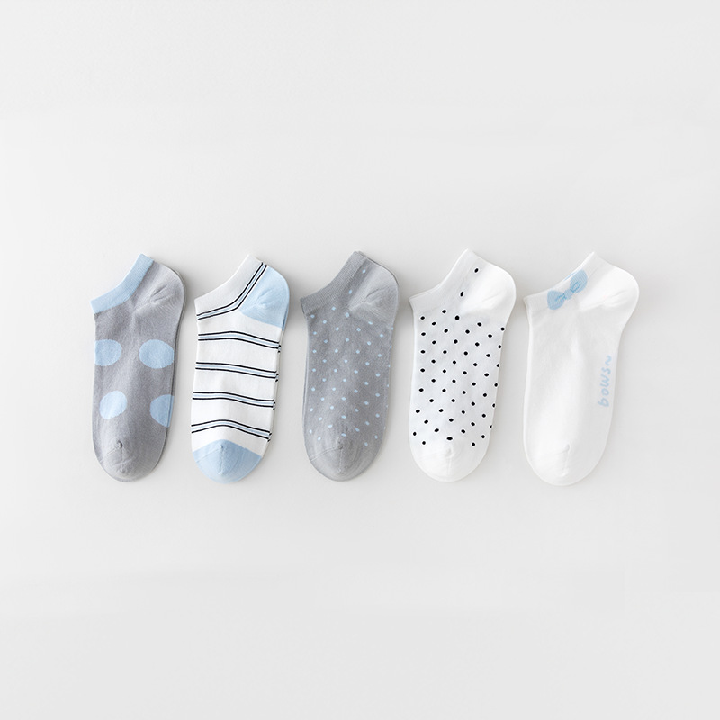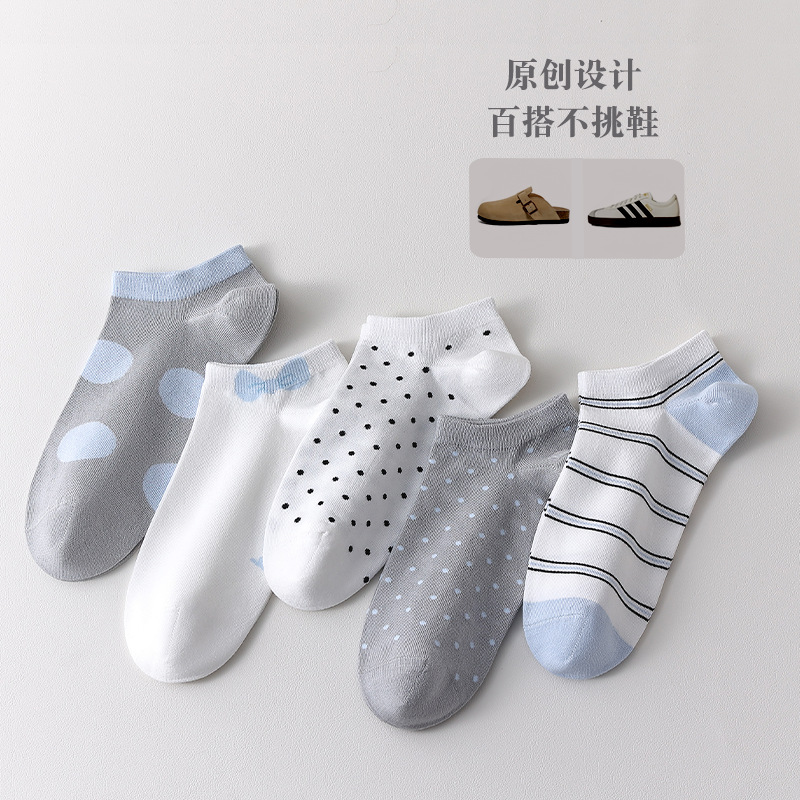 【灰蓝波点条纹】5双装夏季薄款日常百搭通勤女袜船袜棉袜无骨