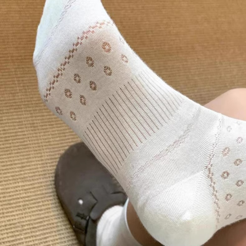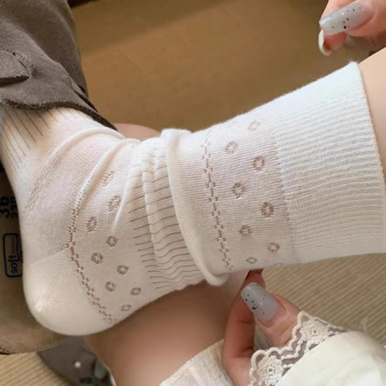袜子女士春夏季薄款透气纯色中筒网眼棉袜灰色日系百搭长筒堆堆袜