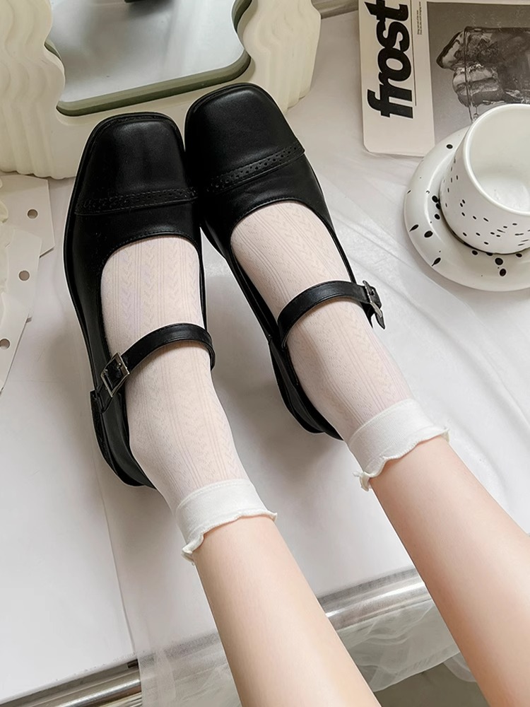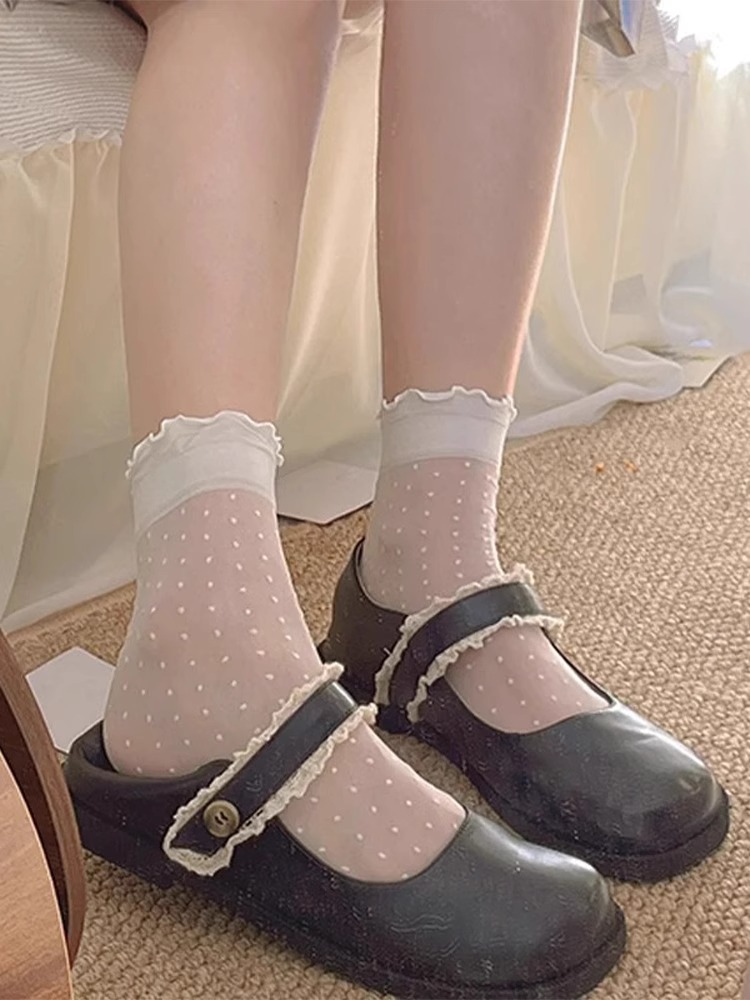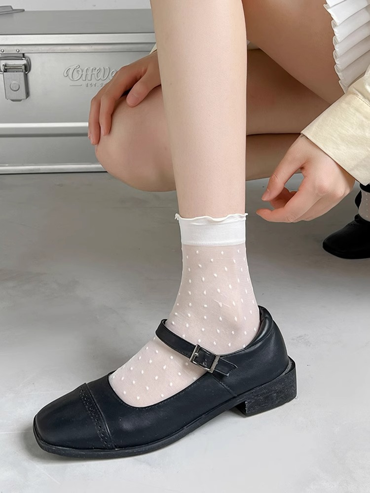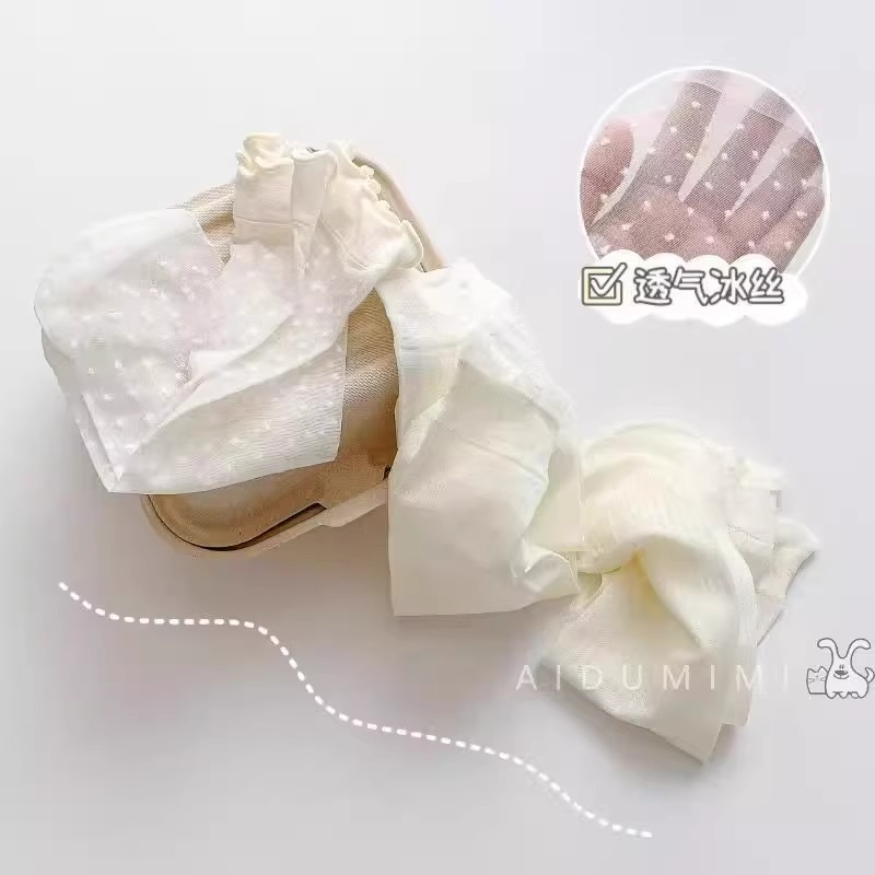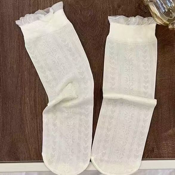 蕾丝花边袜子女冰丝网红薄款夏季水晶丝白色短款配皮鞋冰丝中筒袜
