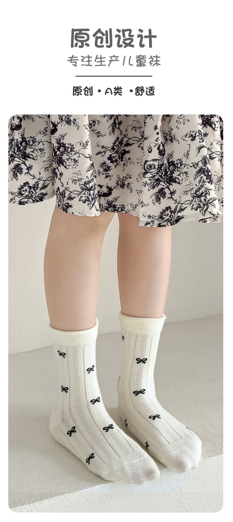 夏季儿童袜子洛丽塔蝴蝶结女童袜韩版中筒袜甜美公主学生潮袜批发