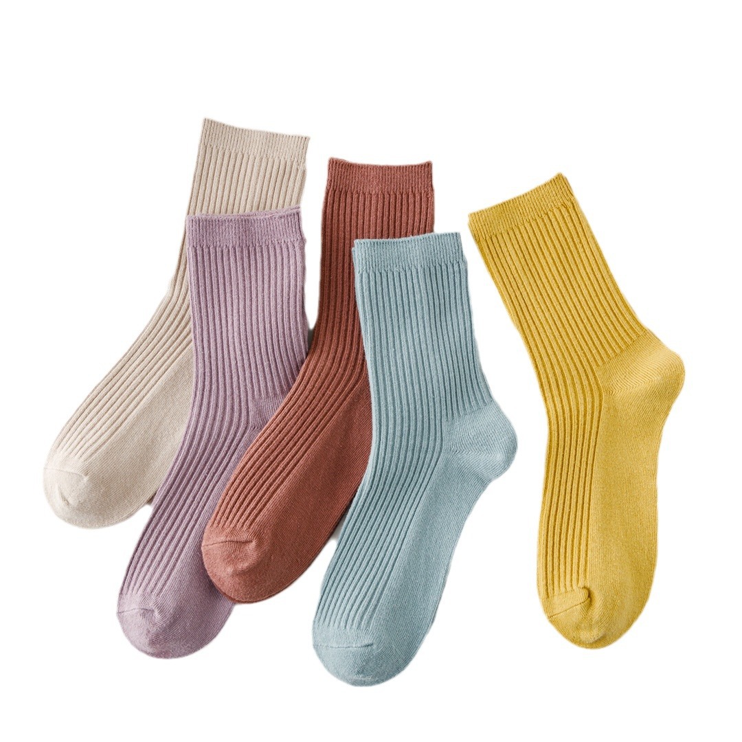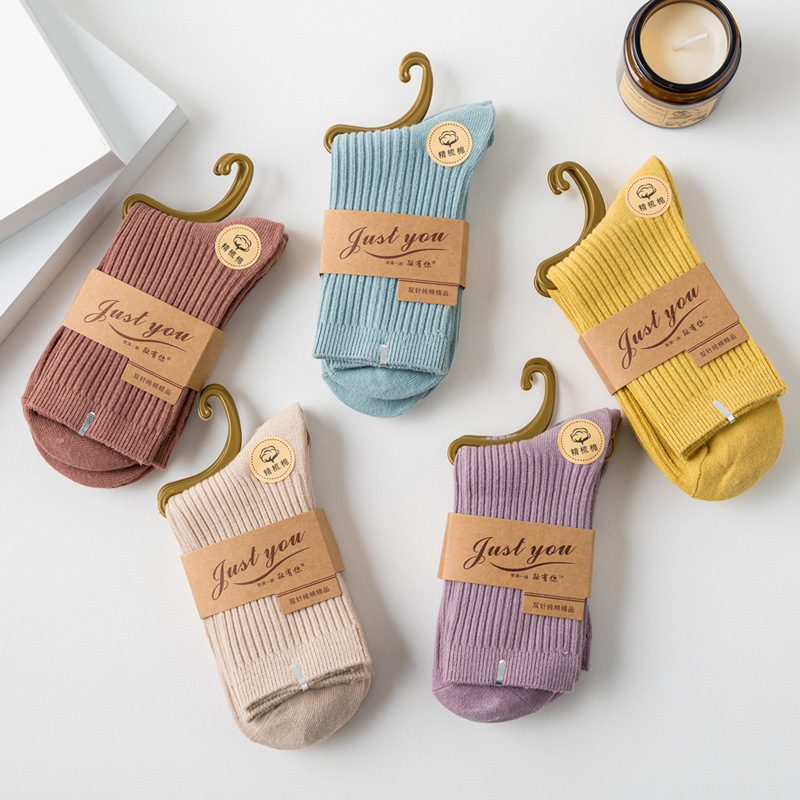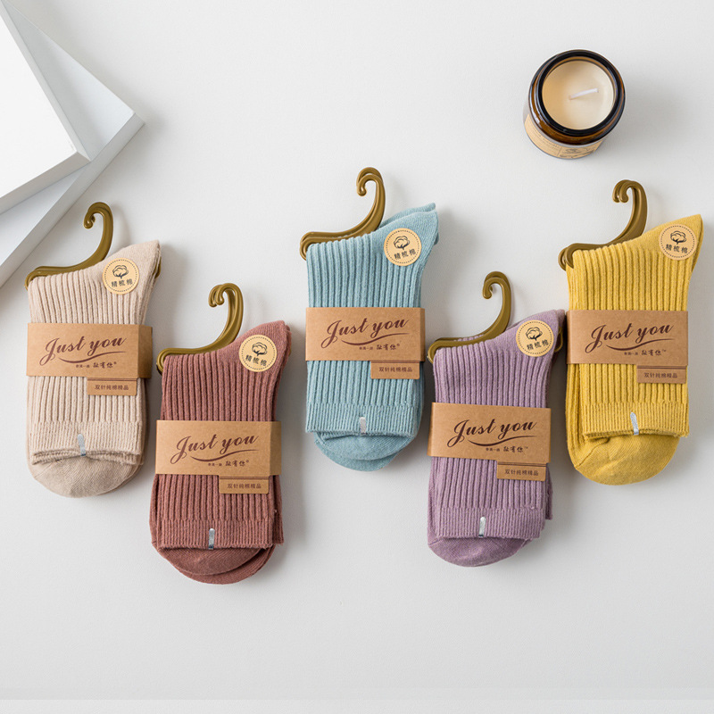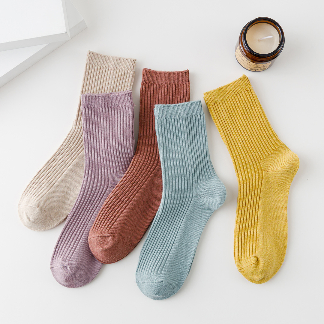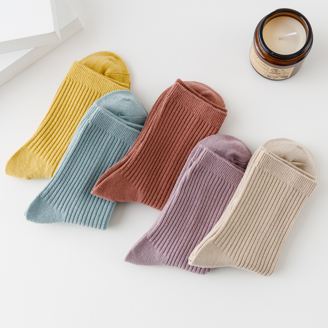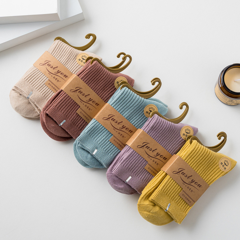诸暨新款女士袜子纯色休闲中筒棉袜秋冬季加厚保暖透气女袜批发