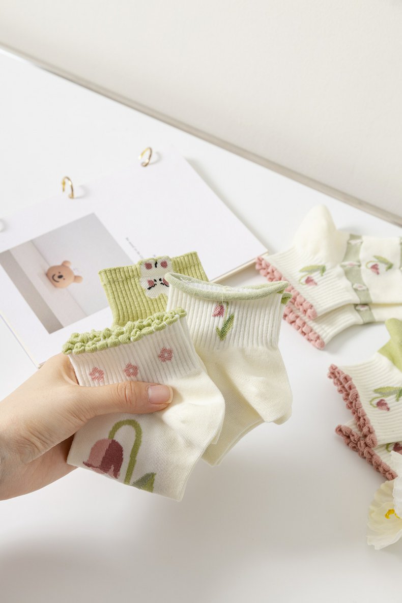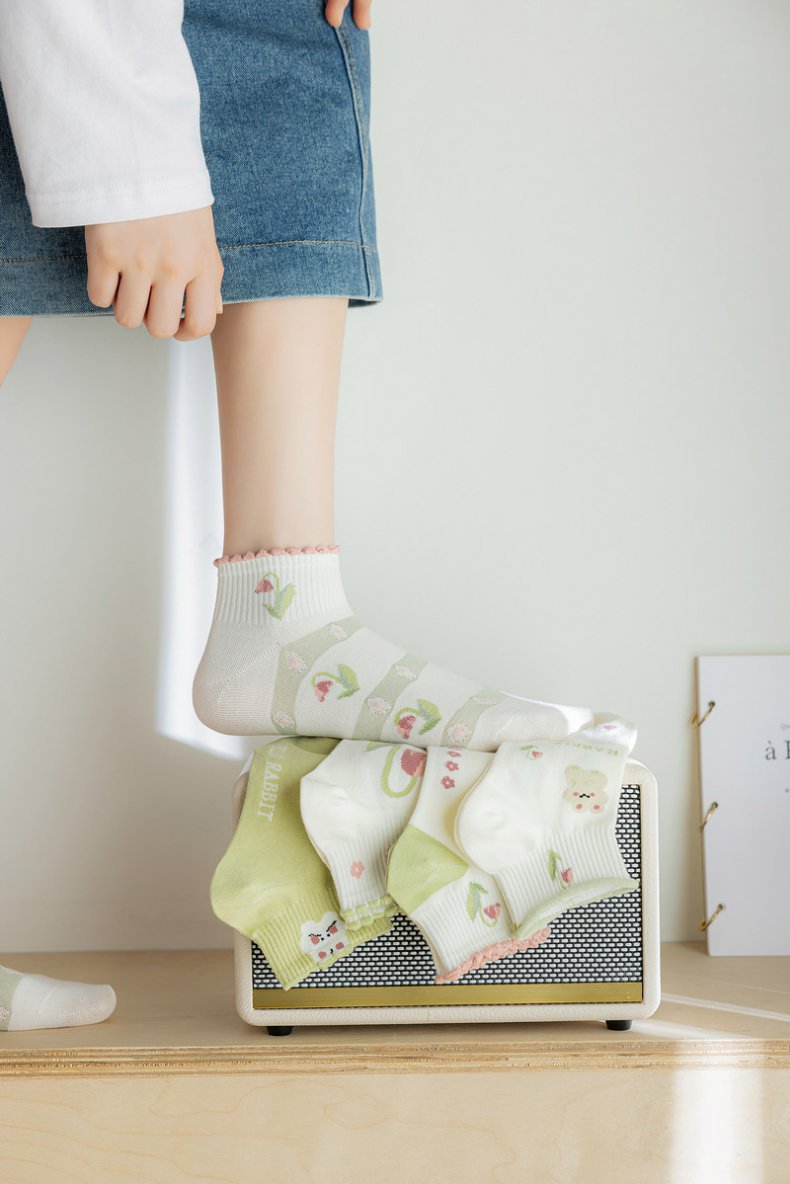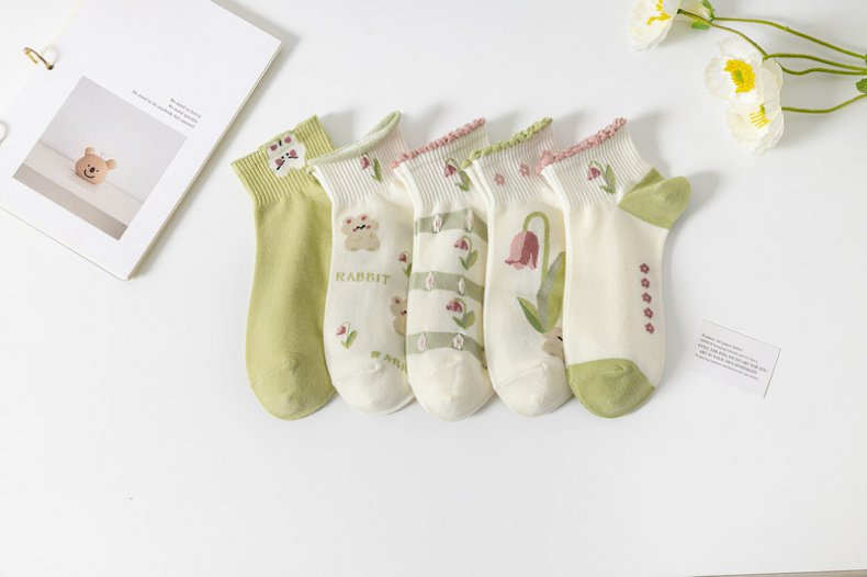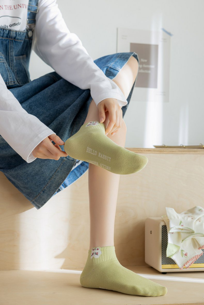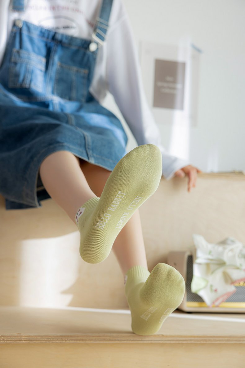 诸暨袜子船袜女绿色小清新精梳棉短筒女袜子ins批发厂家2023新款