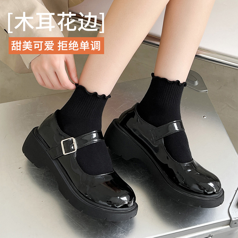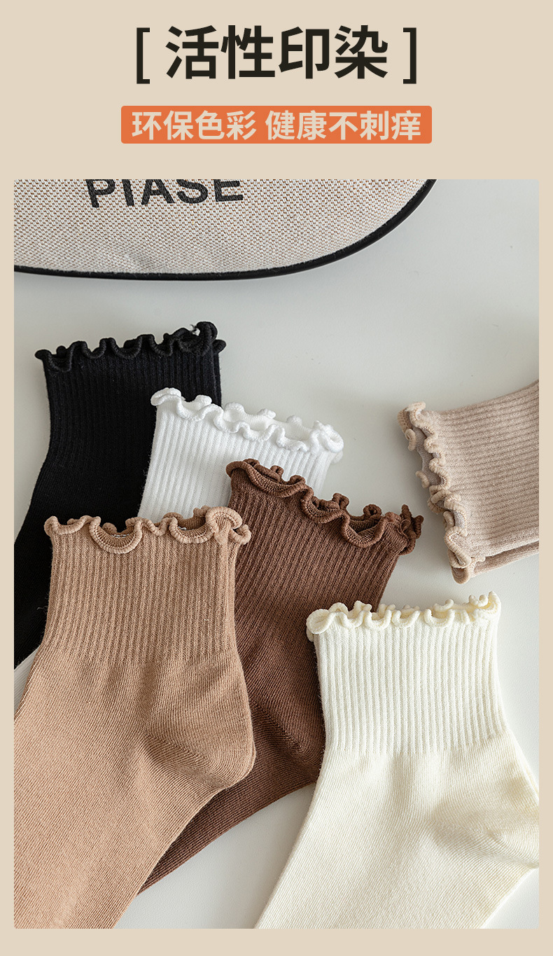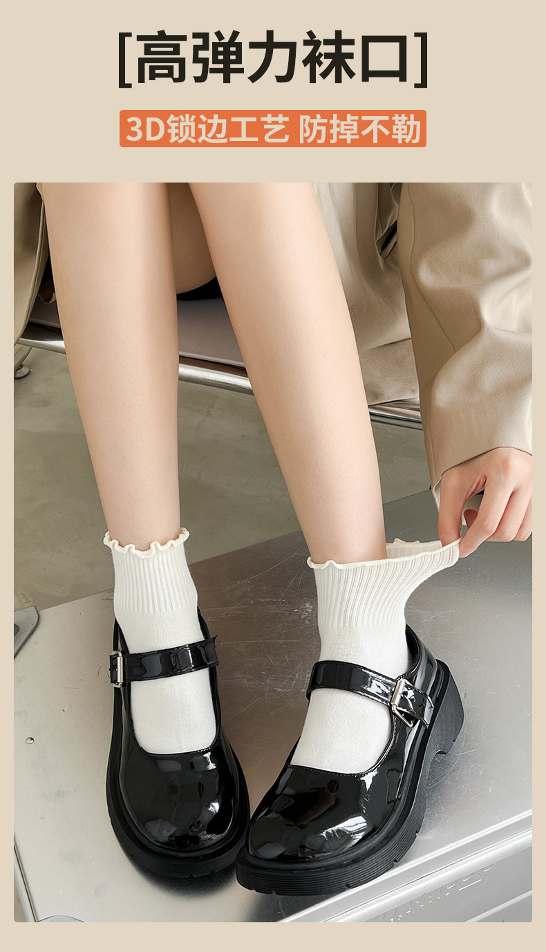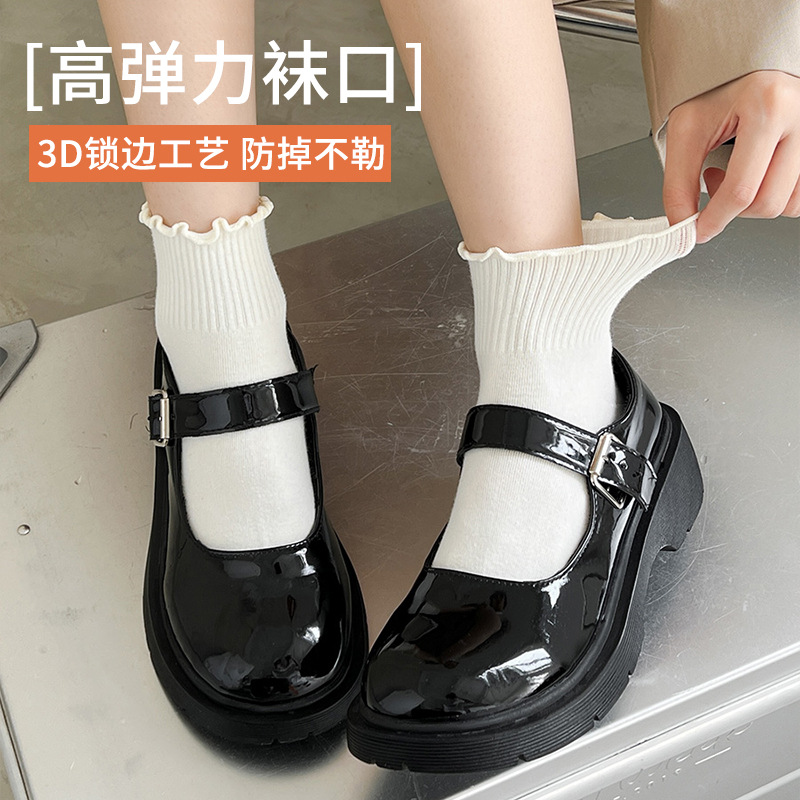 袜子女中筒春秋款木耳边花边ins日系可爱百搭夏天纯棉jk短筒女袜