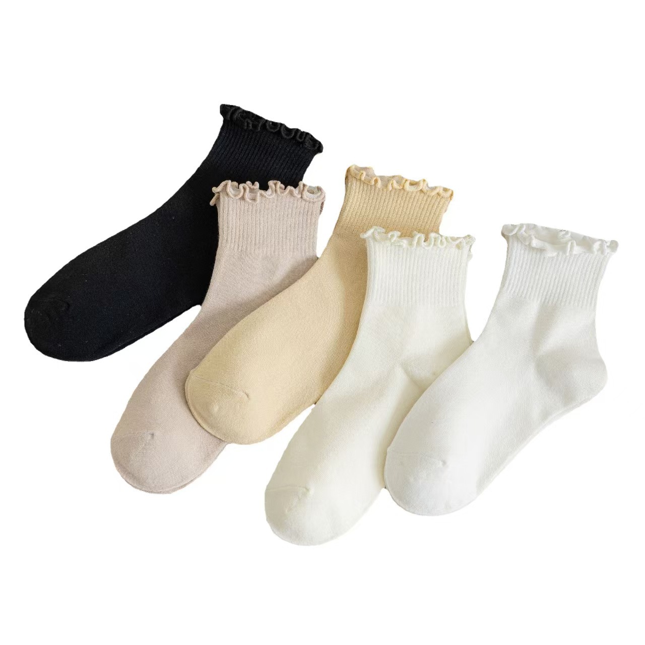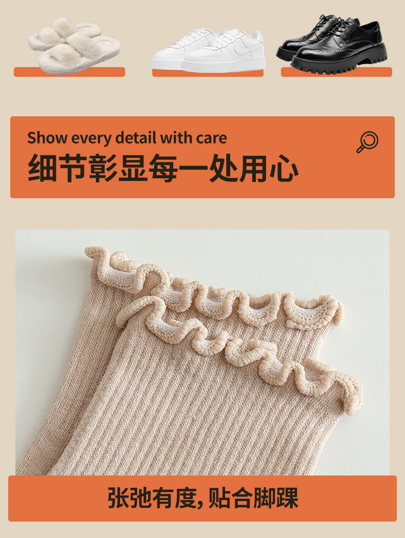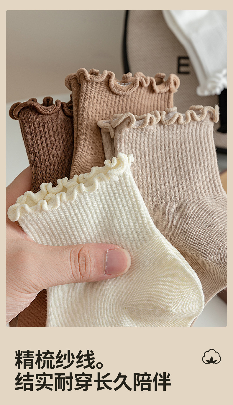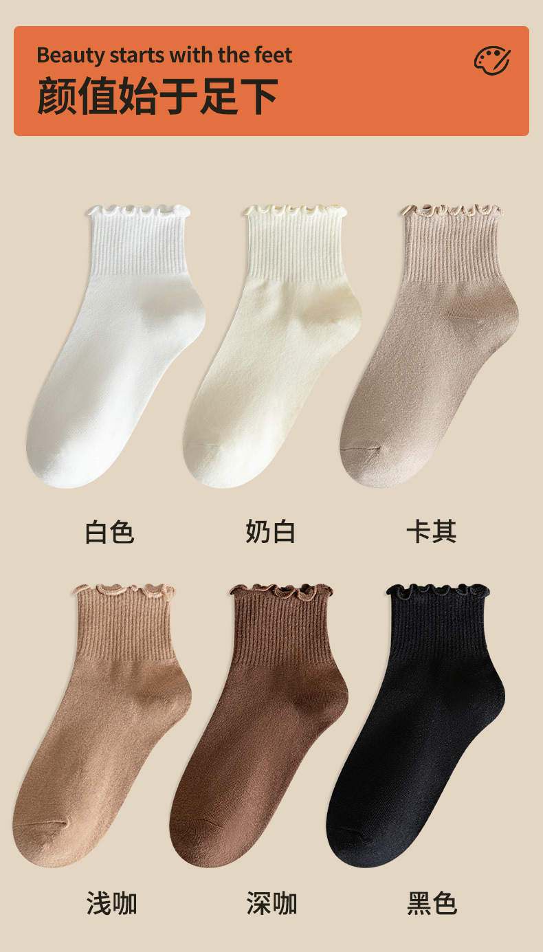 袜子女中筒春秋款木耳边花边ins日系可爱百搭夏天纯棉jk短筒女袜