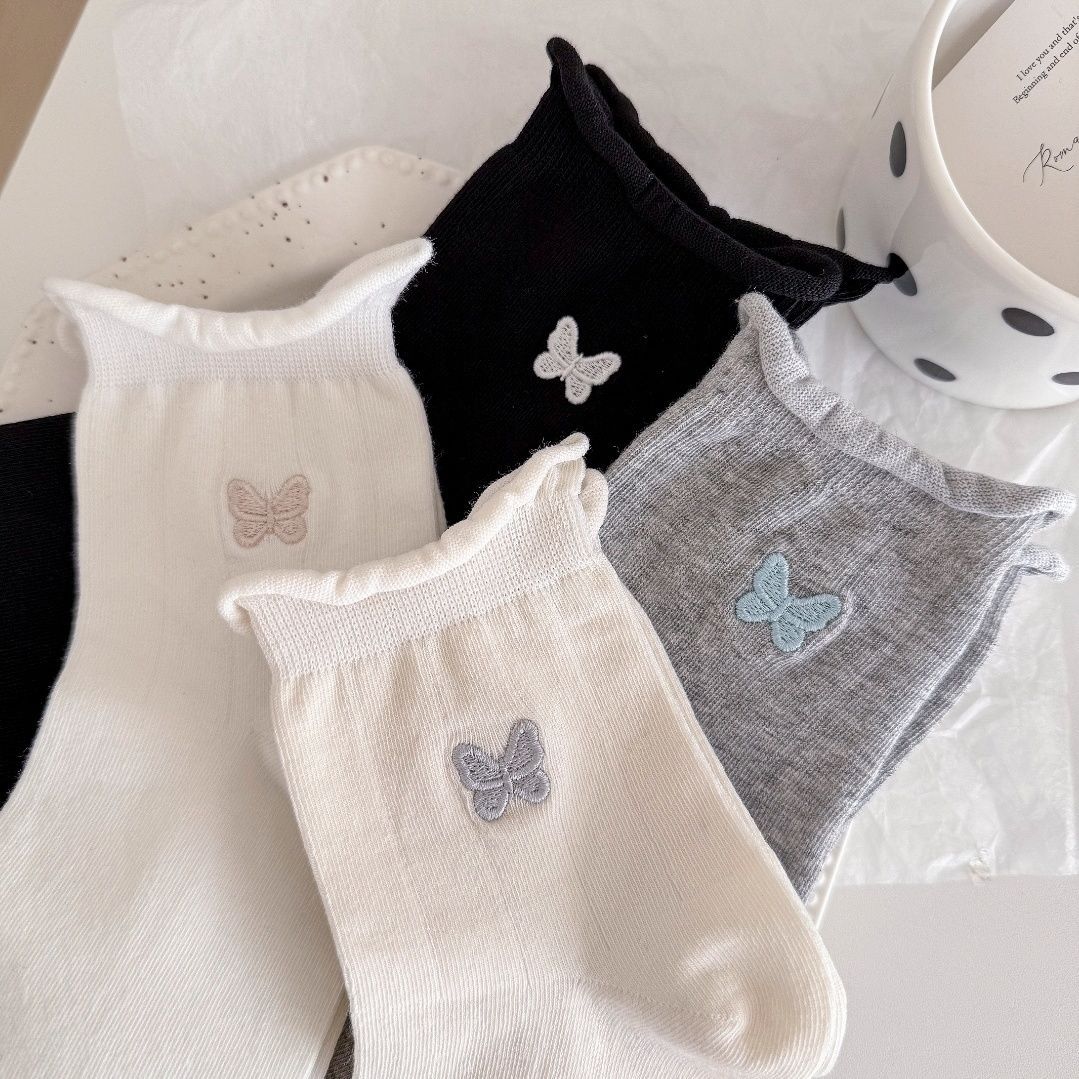 袜子女卷边蝴蝶结短袜春夏季薄款日系甜美纯棉无骨配小皮鞋中筒袜