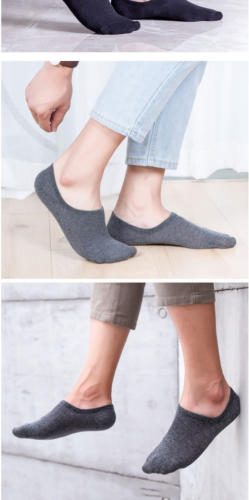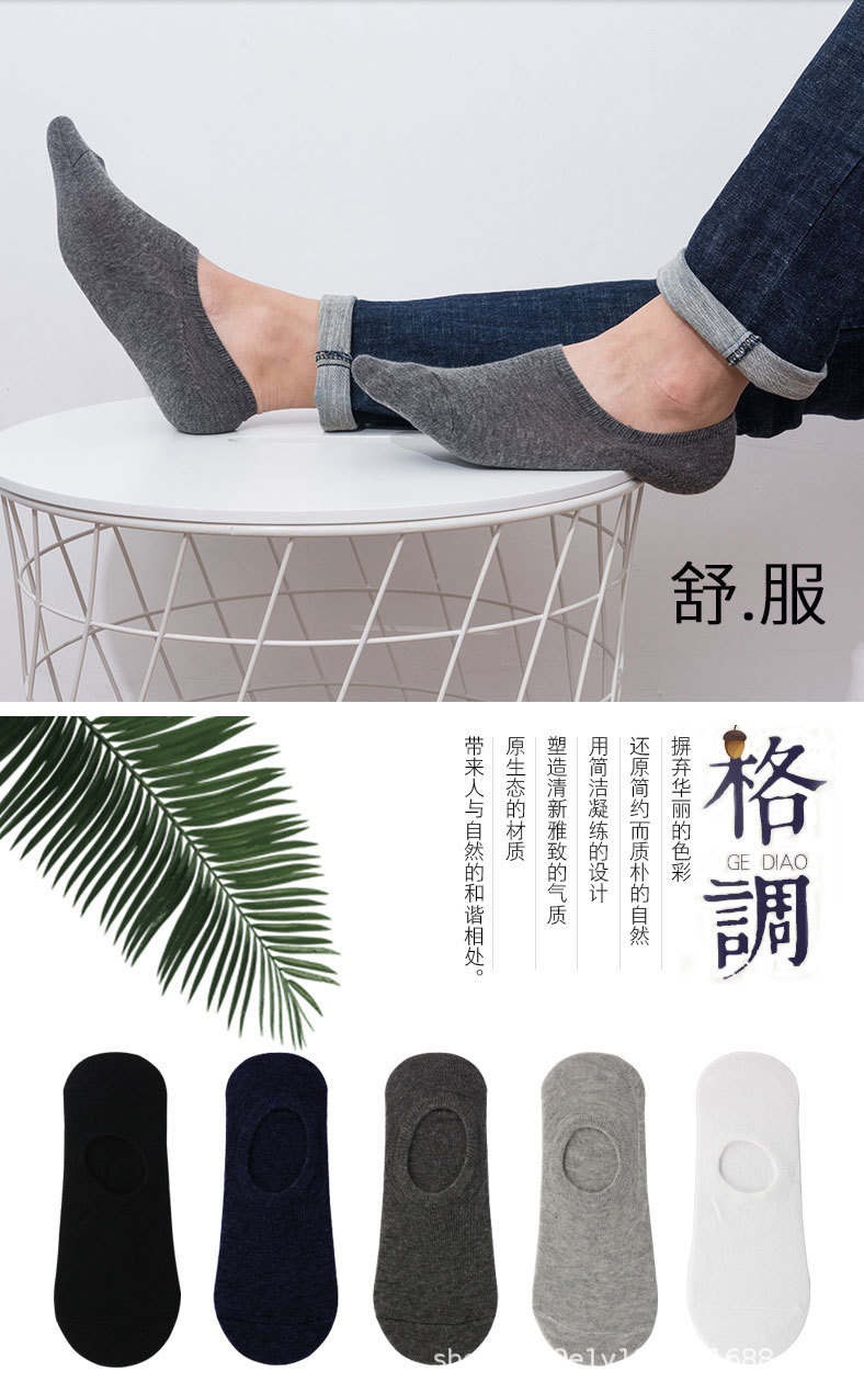 袜子男短袜夏季防臭低帮船袜黑白灰 硅胶浅口隐形袜运动男士棉袜