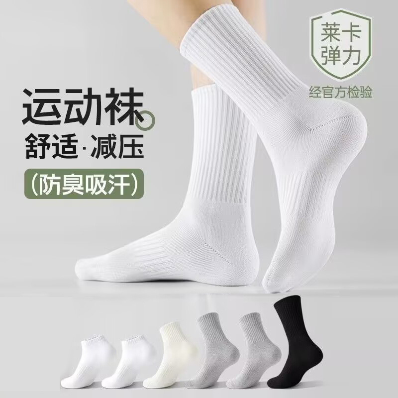 纯棉袜子男四季中筒袜男生运动长筒白袜春秋款男士短袜棉白色长袜