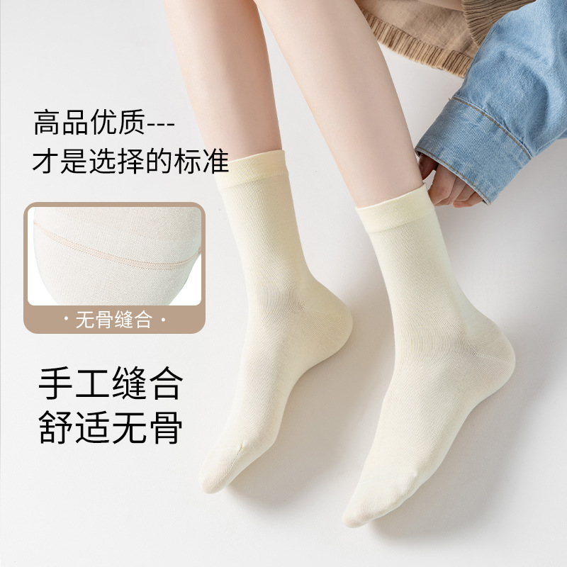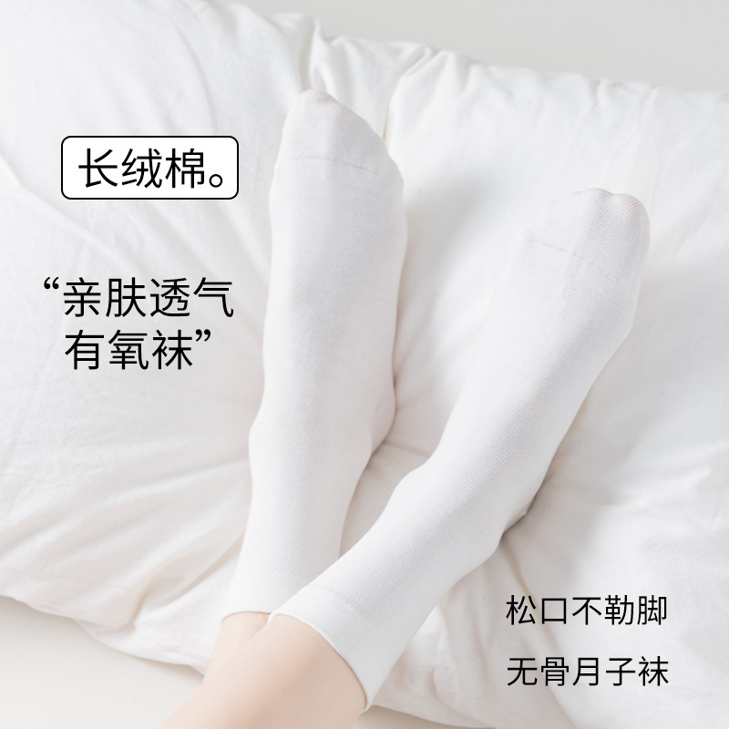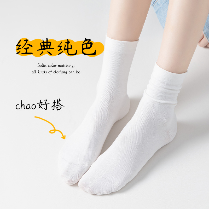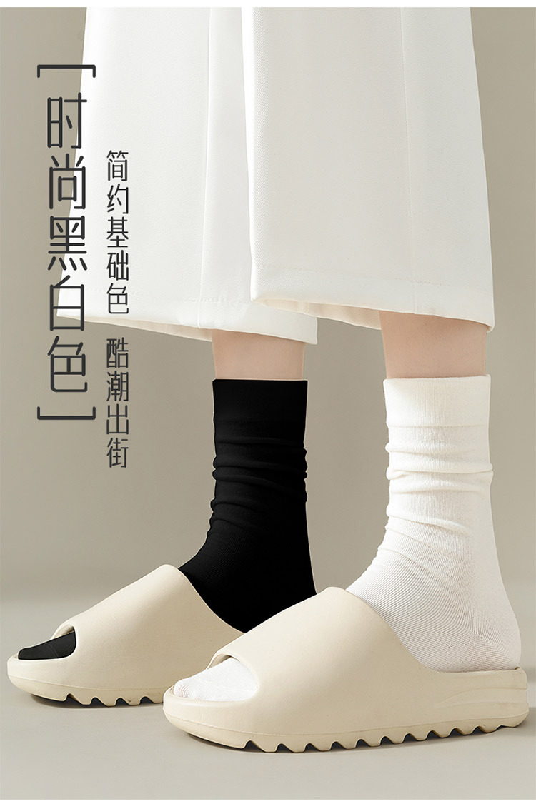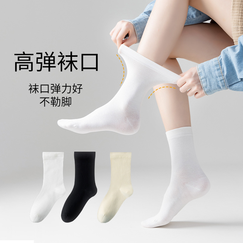 袜子女纯棉中筒袜春夏季女袜防臭透气月子袜秋冬款黑白色堆堆长袜