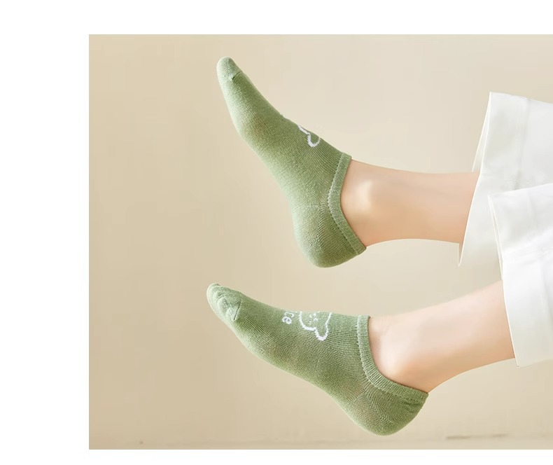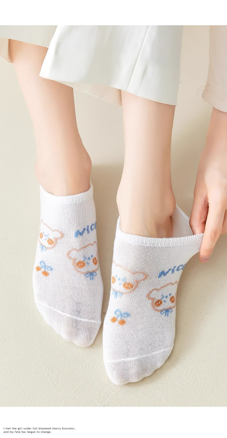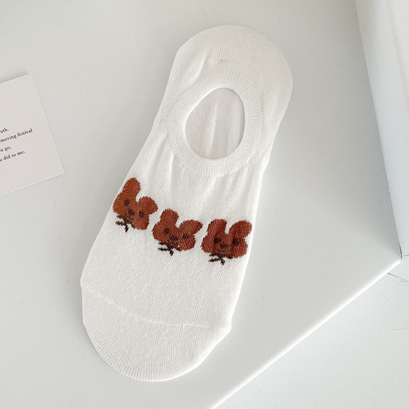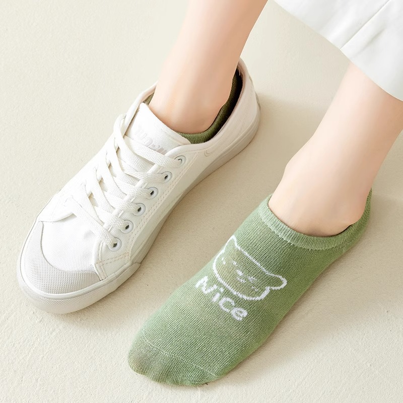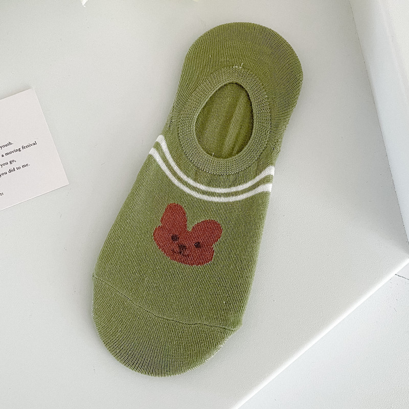袜子女隐形船袜不掉跟夏季薄款棉袜ins潮可爱熊日系学生浅口短袜