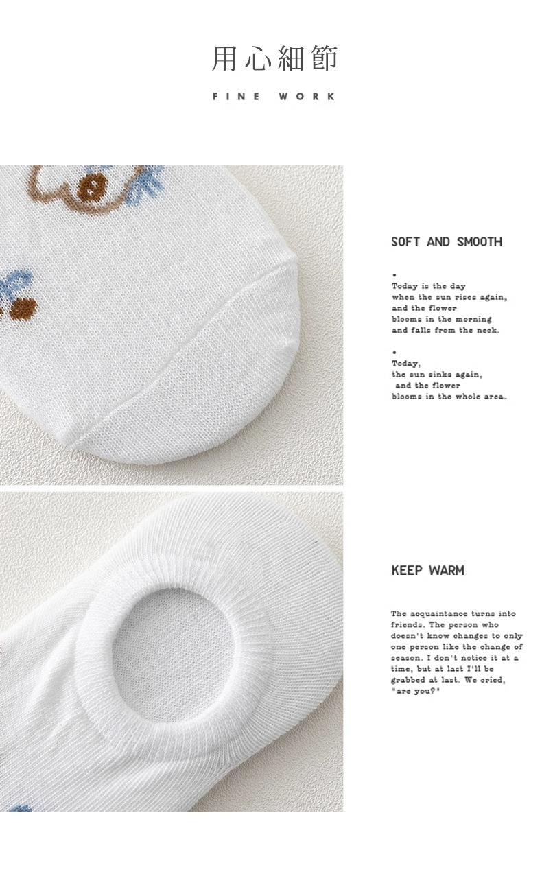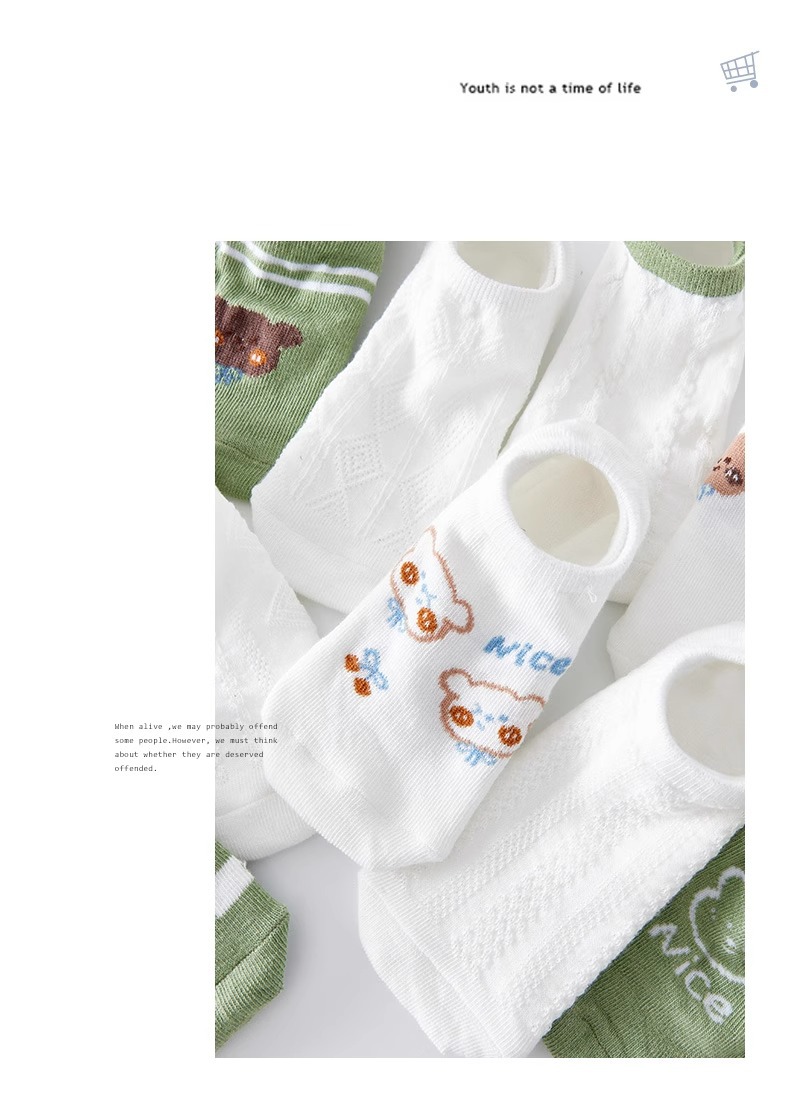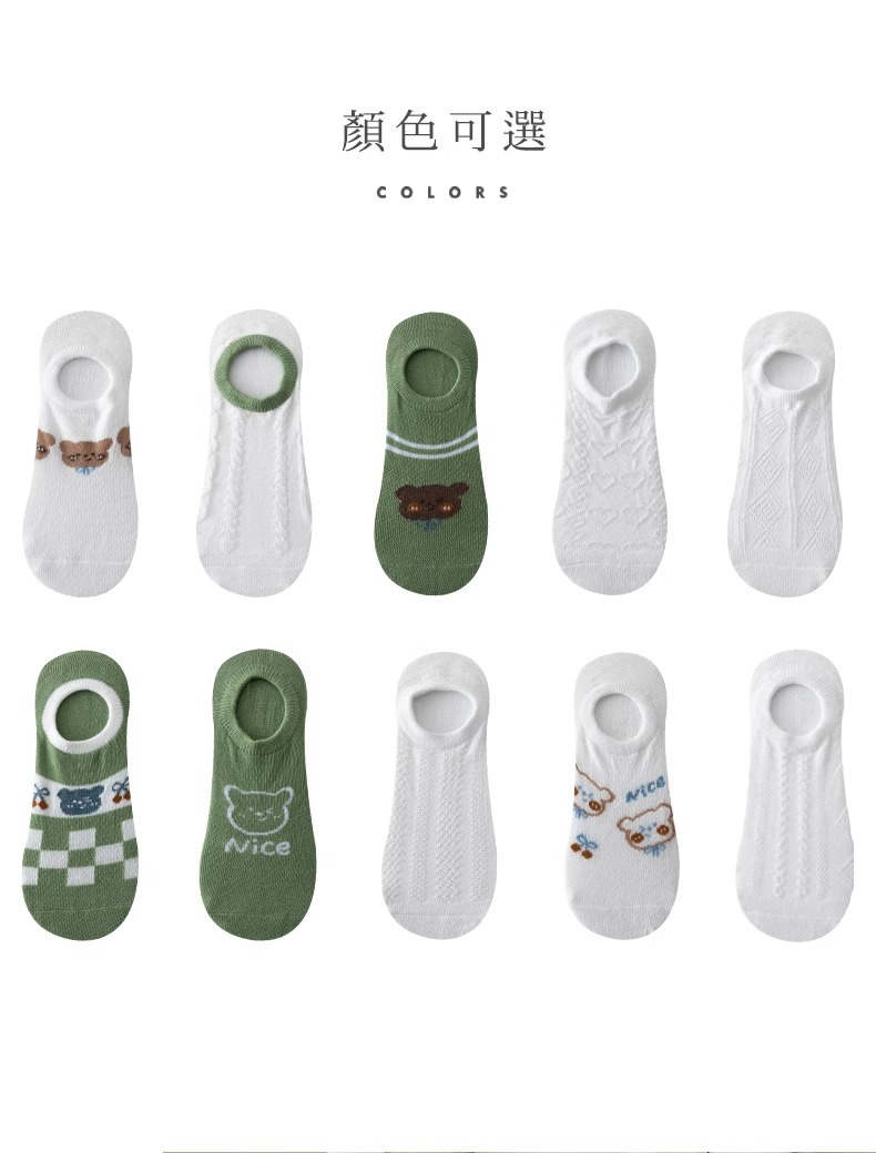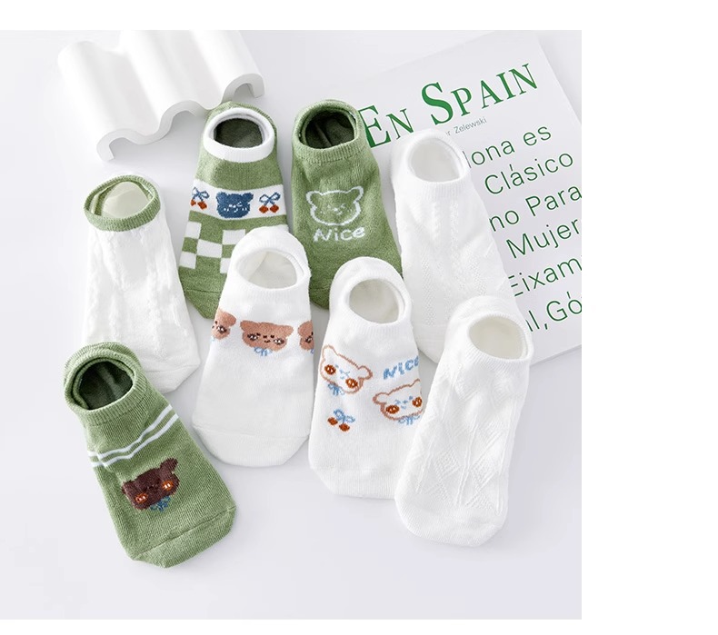袜子女隐形船袜不掉跟夏季薄款棉袜ins潮可爱熊日系学生浅口短袜