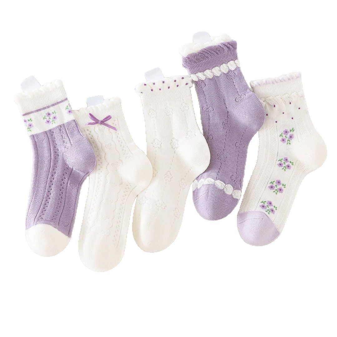 夏季甜美女童袜子薄款透气蝴蝶结网眼中筒袜女宝宝蕾丝花边儿童袜