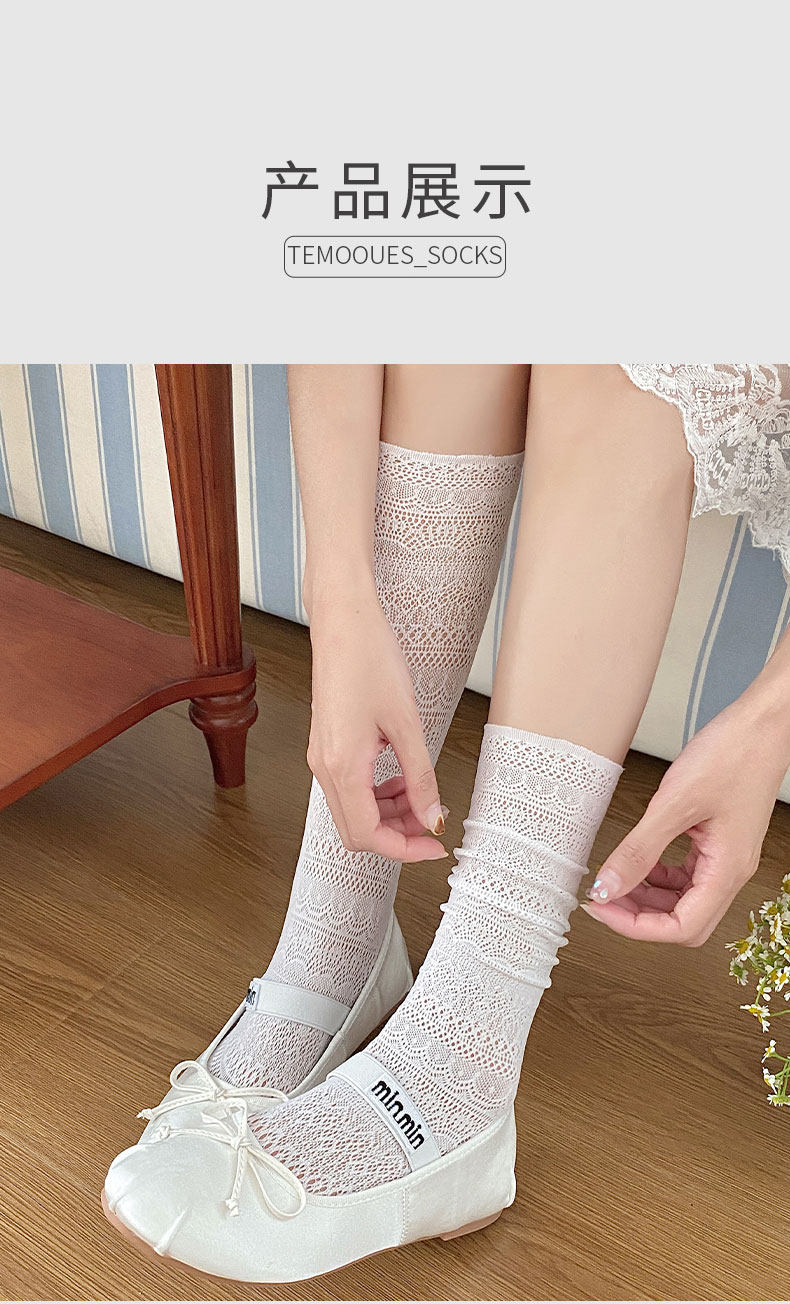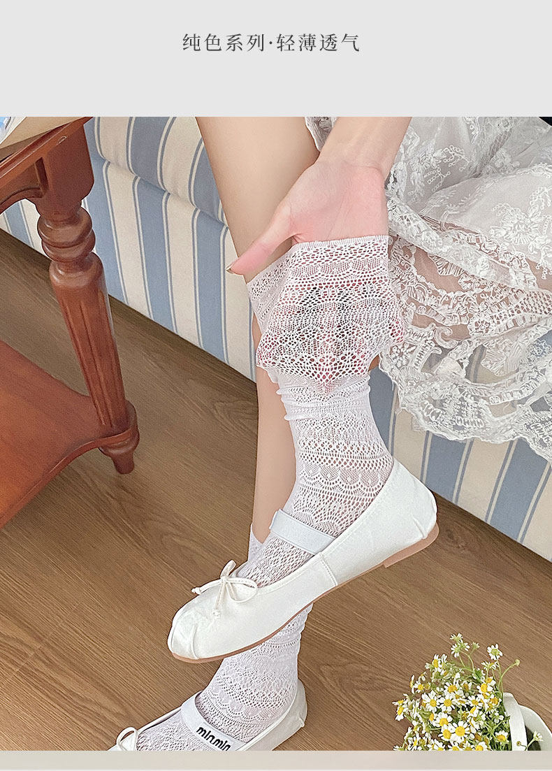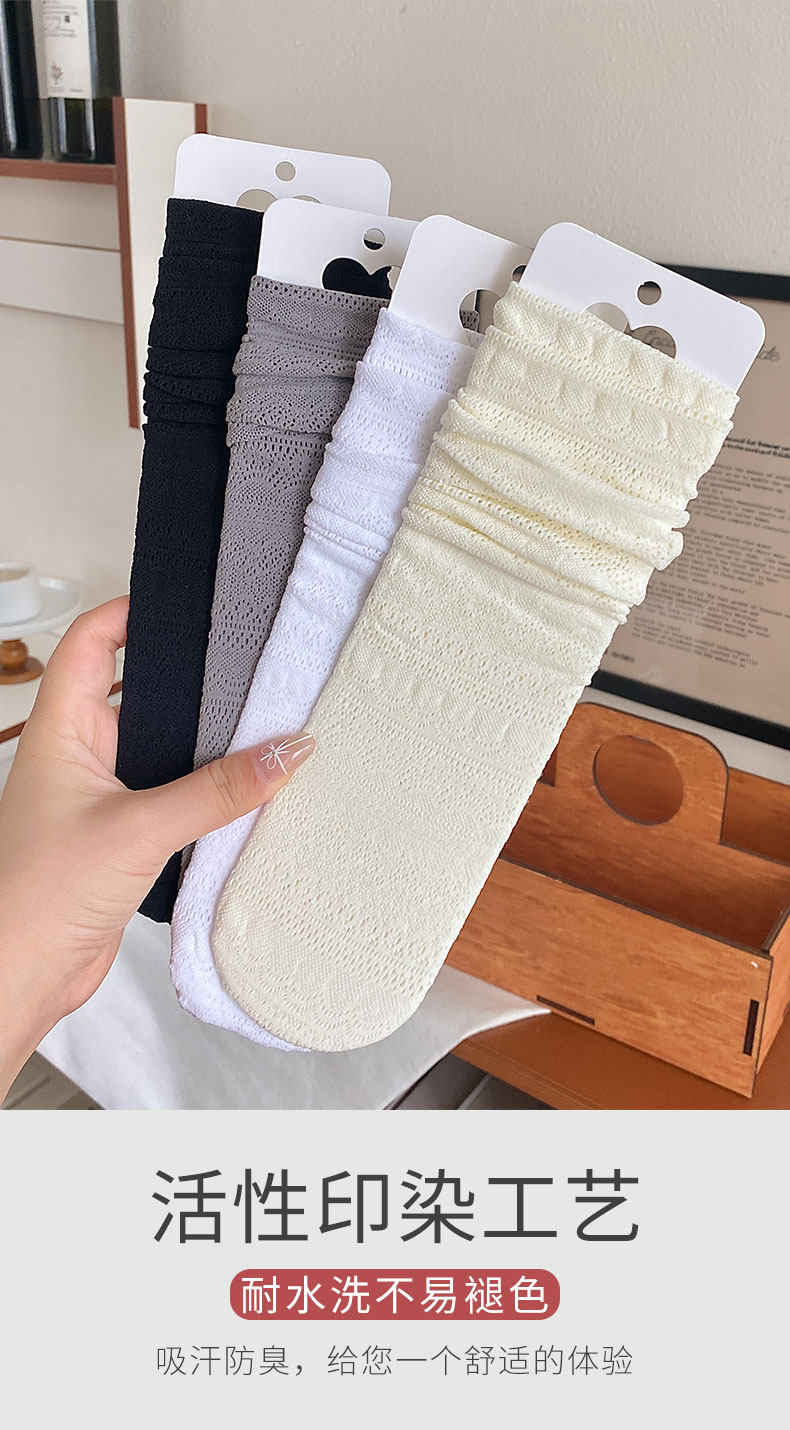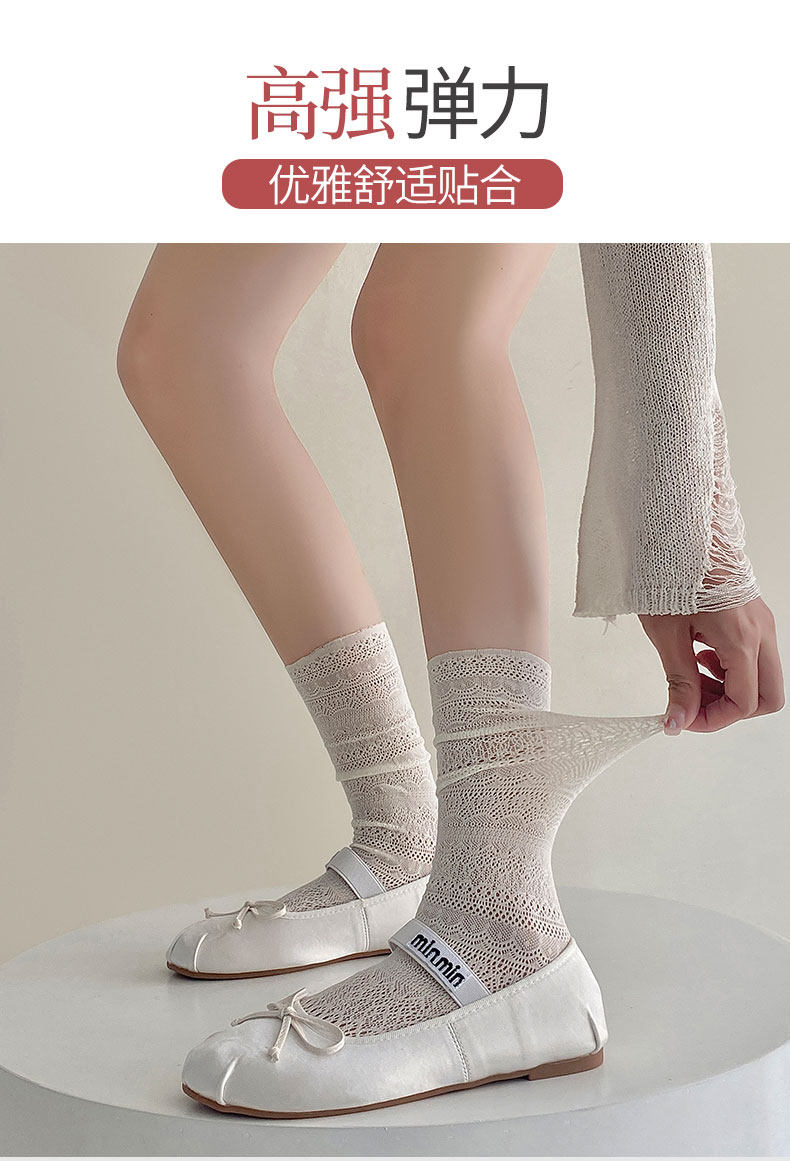 白色堆堆袜子女夏季薄款镂空网眼中筒袜配小皮鞋芭蕾风蕾丝小腿袜