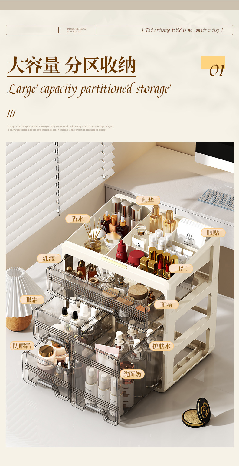 严选化妆品收纳盒梳妆台置物架桌面抽屉式分格护肤品面膜化妆盒子