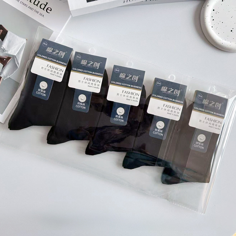 独立包装袜子男士春夏款中筒袜吸汗透气商务中筒男袜纯色防臭诸暨