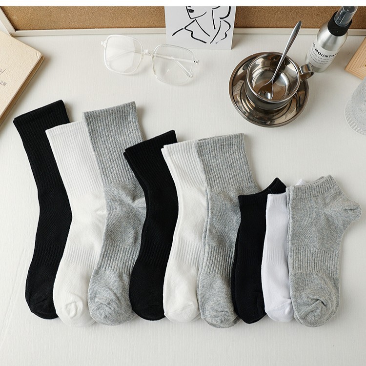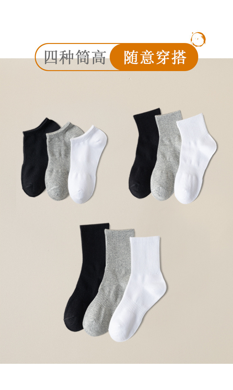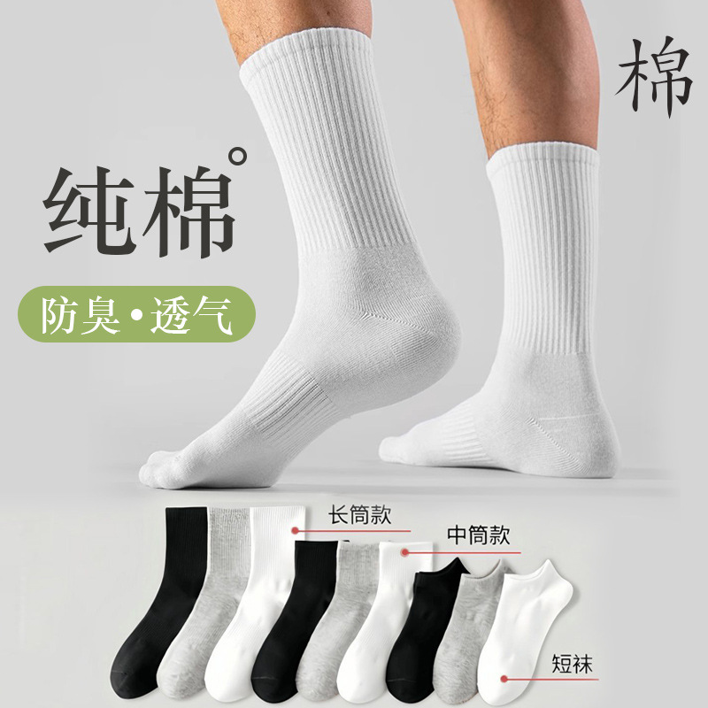 袜子男士防臭吸汗春夏纯棉运动中筒袜薄款纯色短袜夏天袜子女船袜