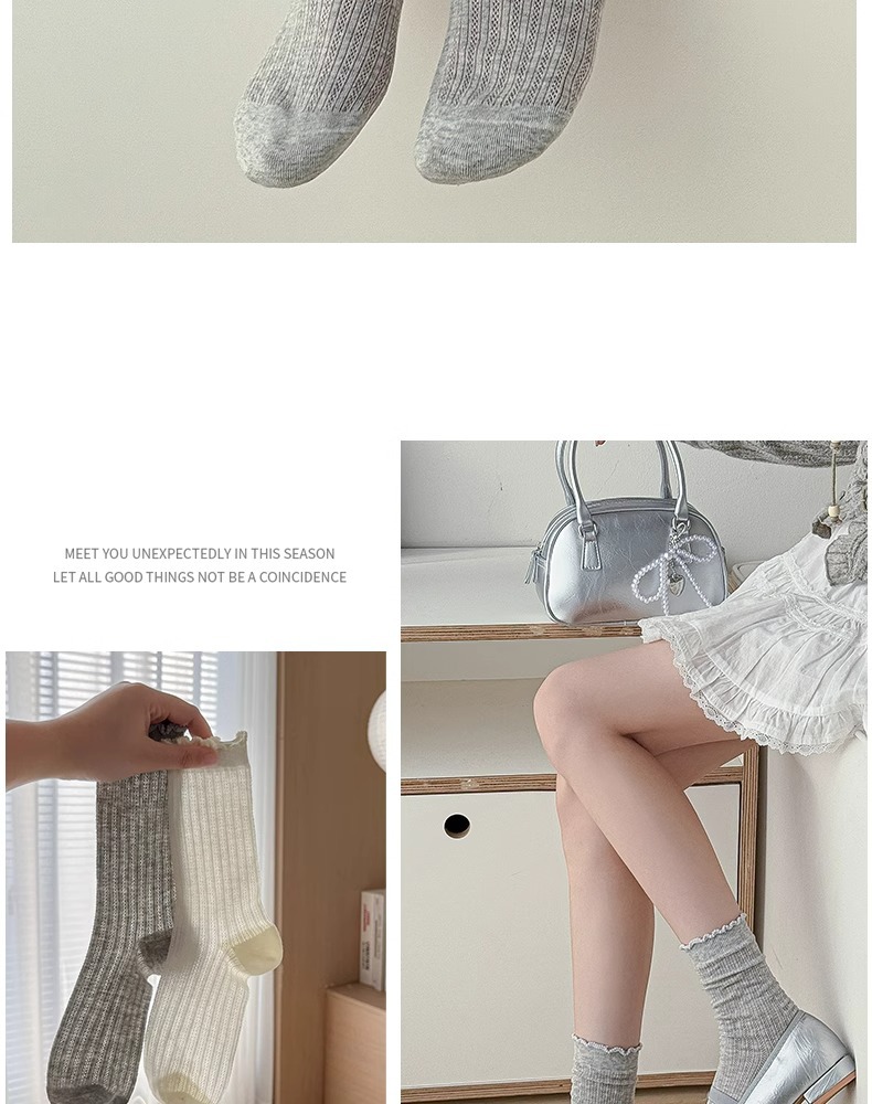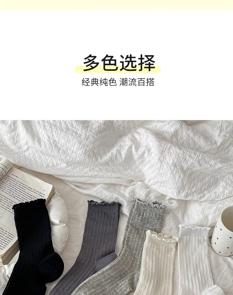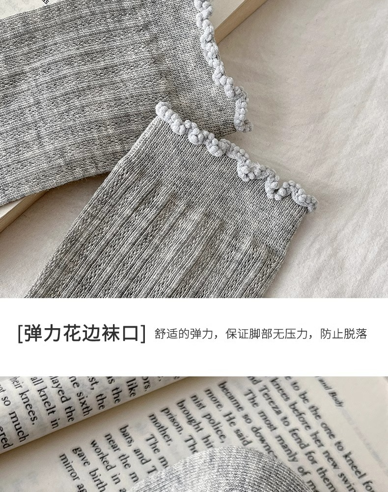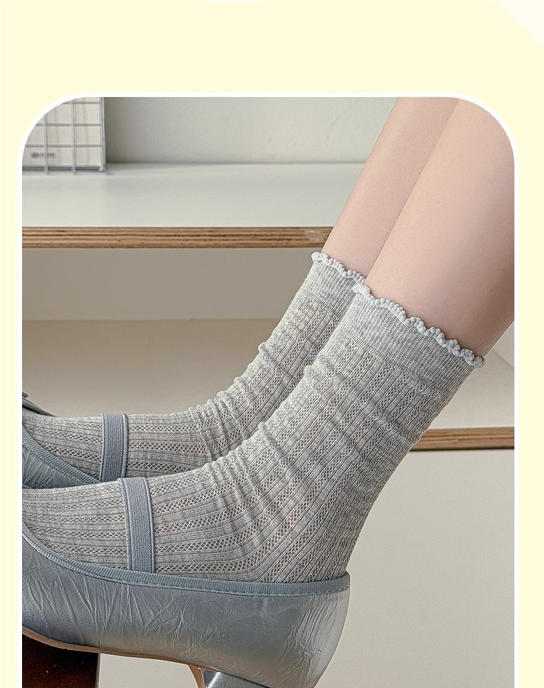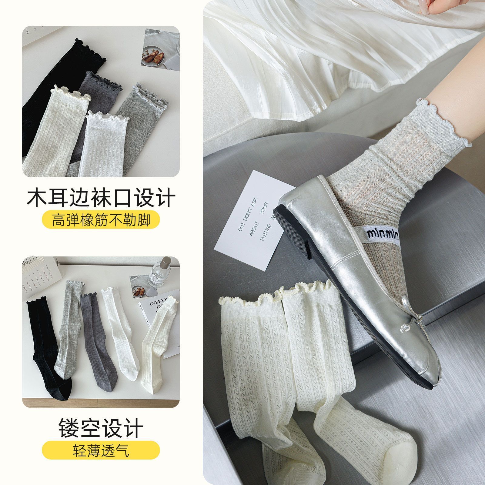 袜子女夏季薄款纯棉中筒灰色木耳花边miu系透气网眼夏天女堆堆袜