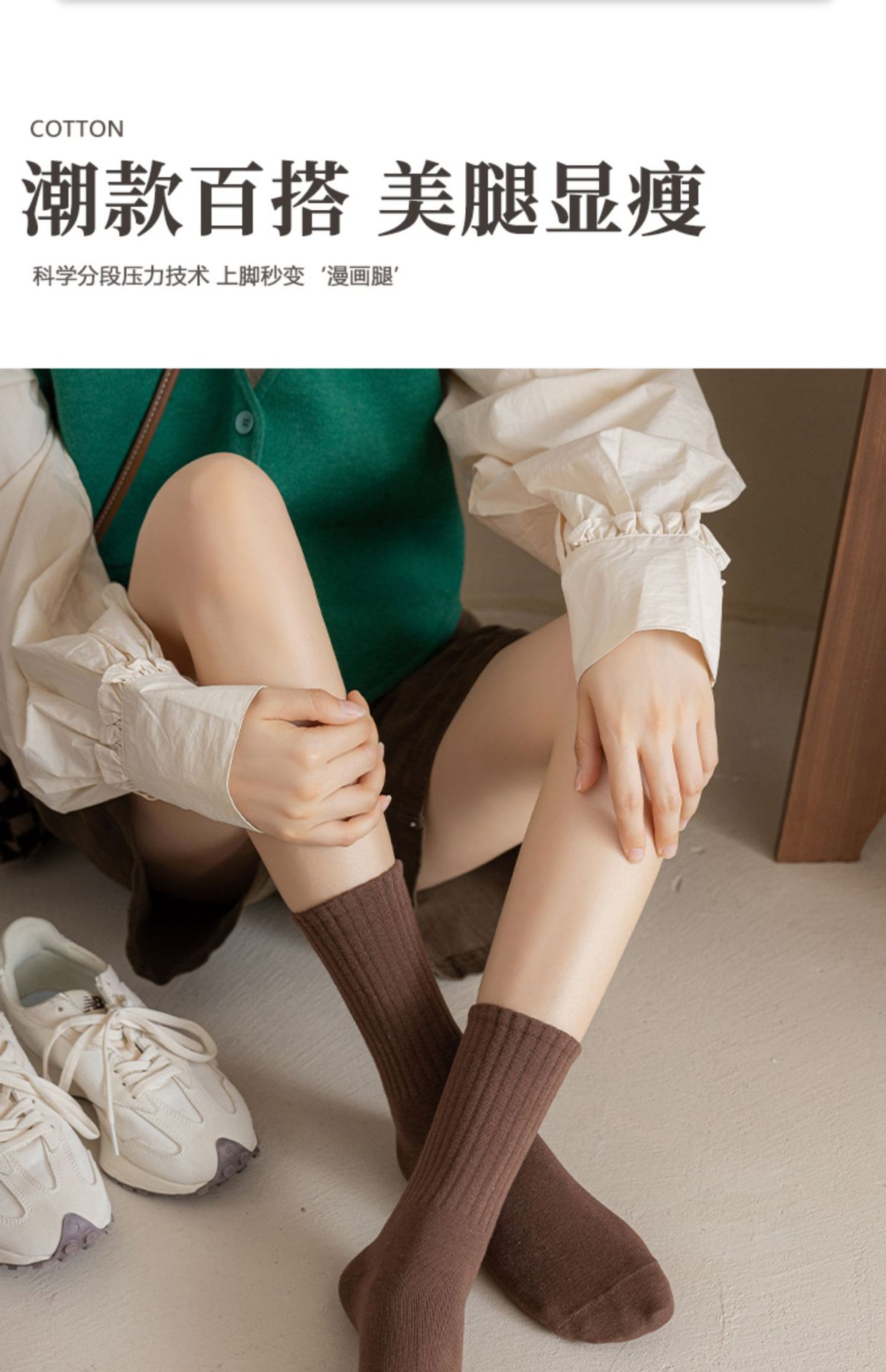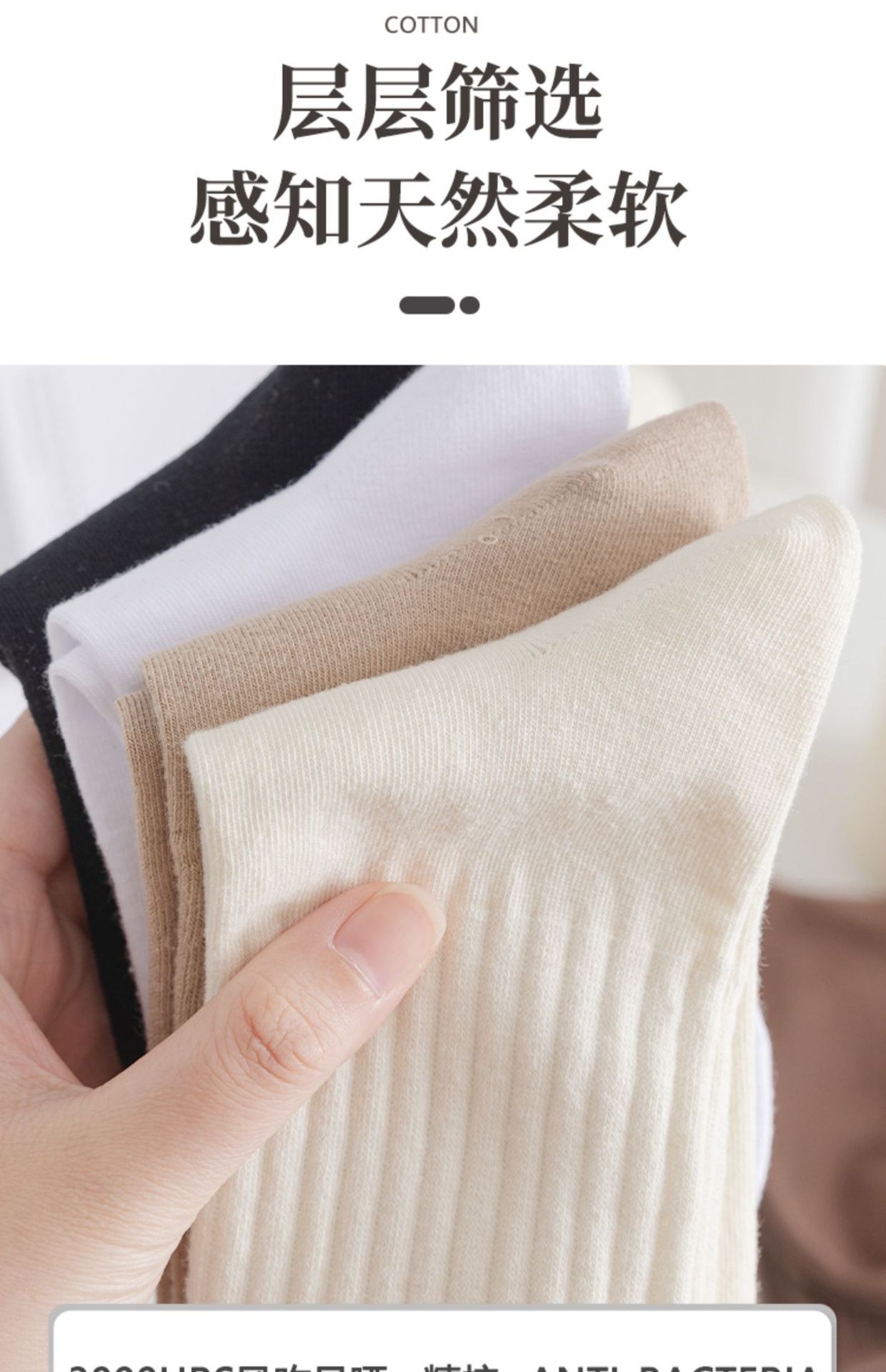 袜子女春秋款纯色中筒棉袜ins潮吸汗透气百搭日系夏天薄款堆堆袜