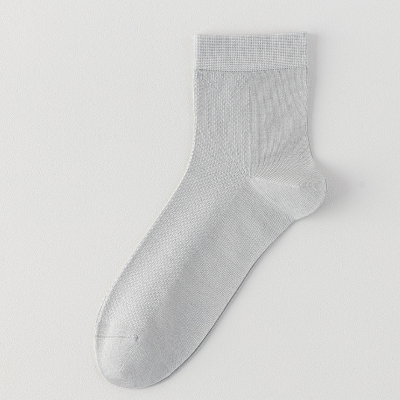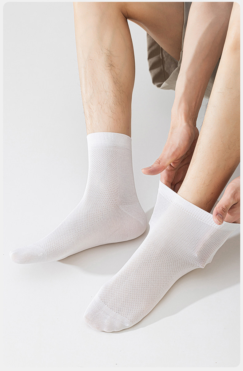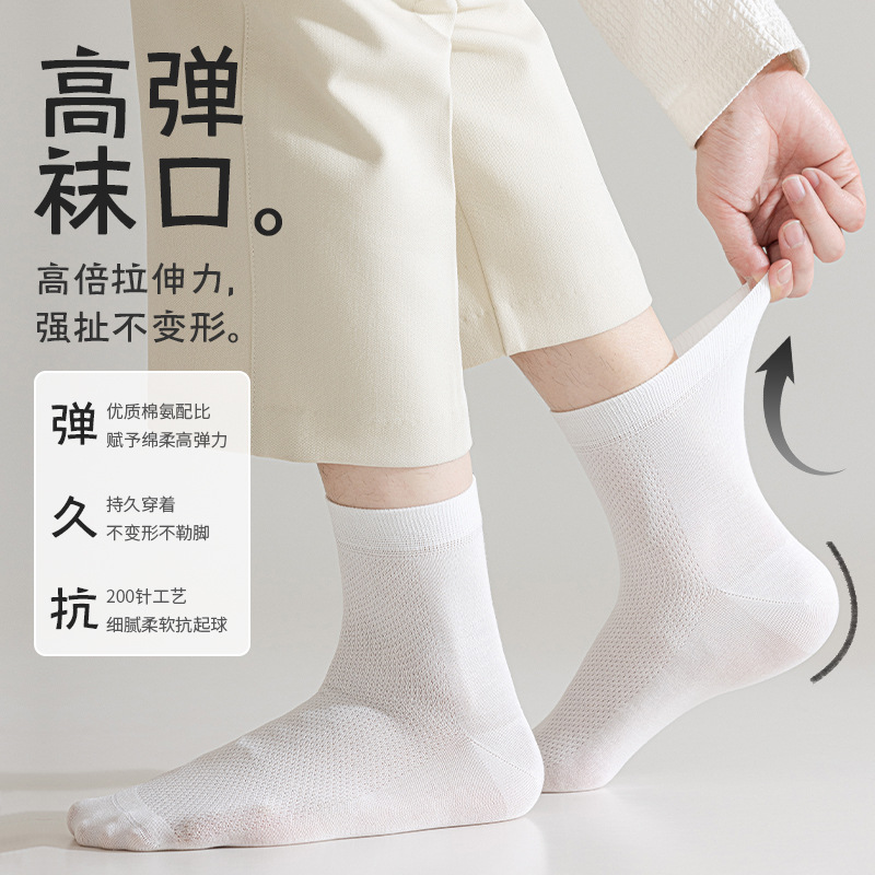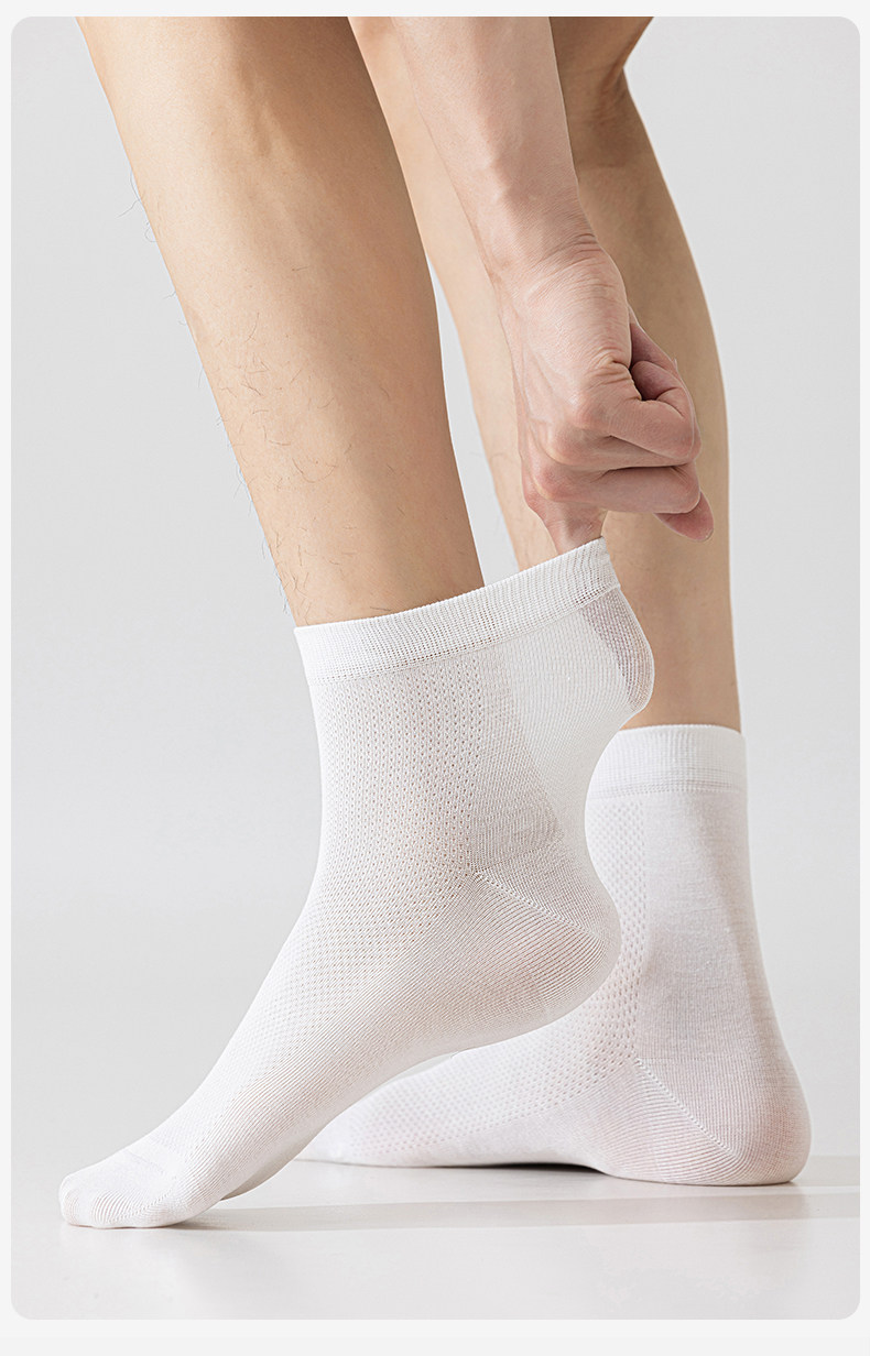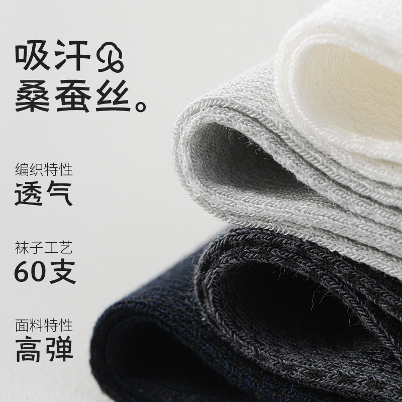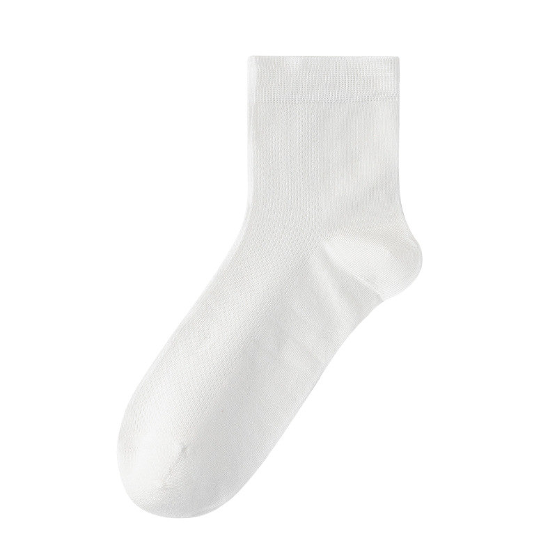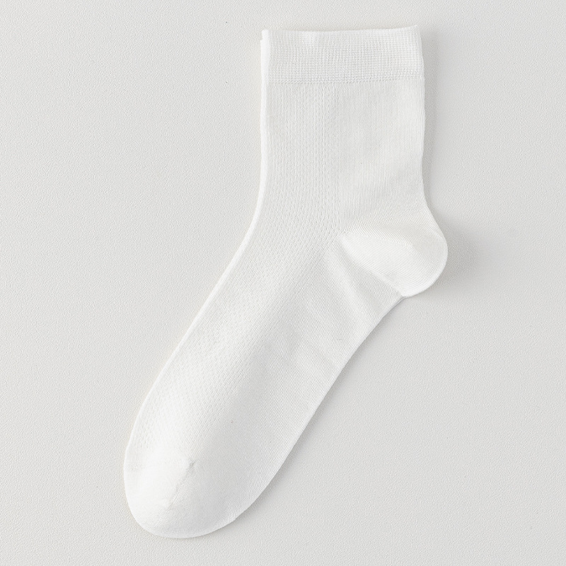 桑蚕丝袜子男夏季薄款纯棉防臭吸汗网眼透气运动白色男士中短筒袜