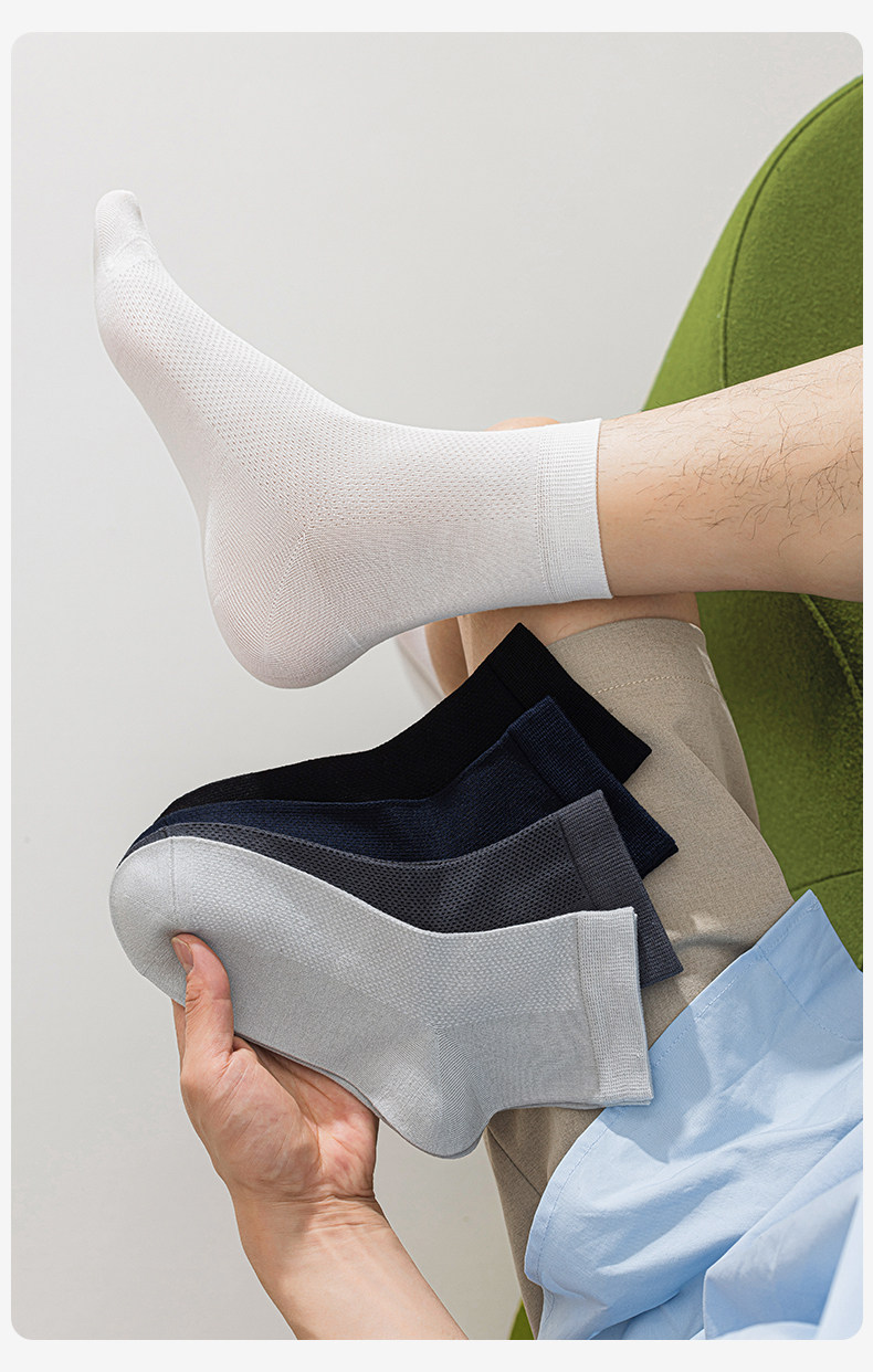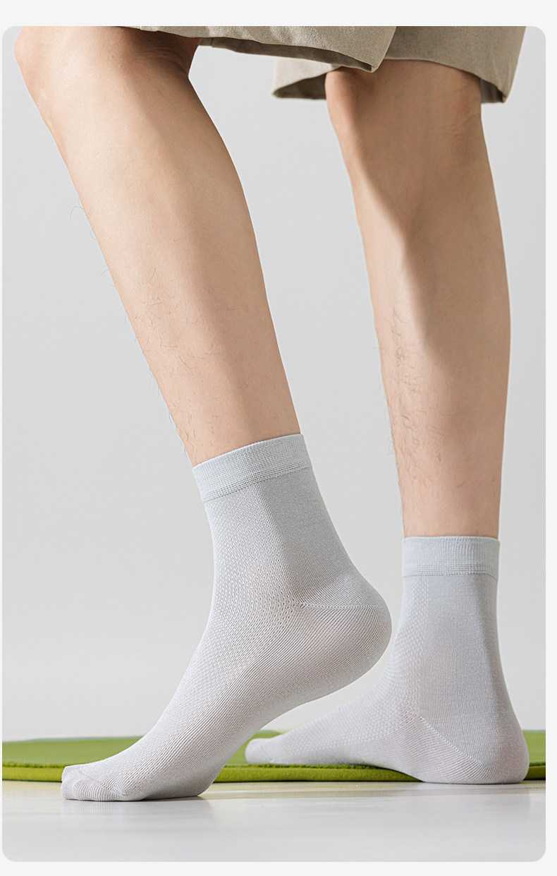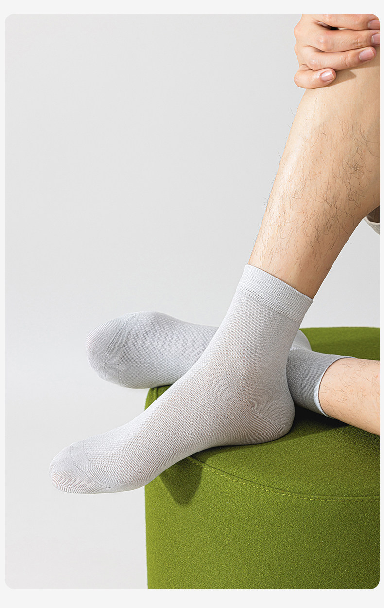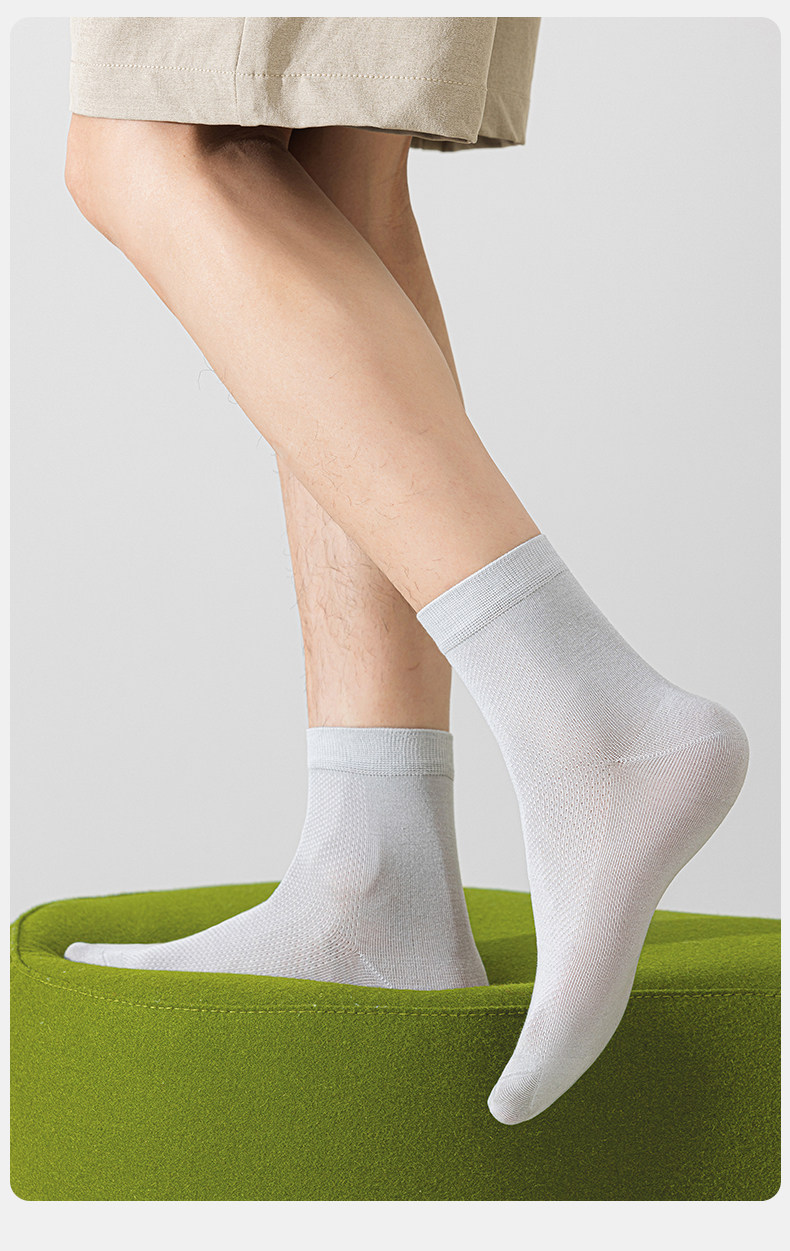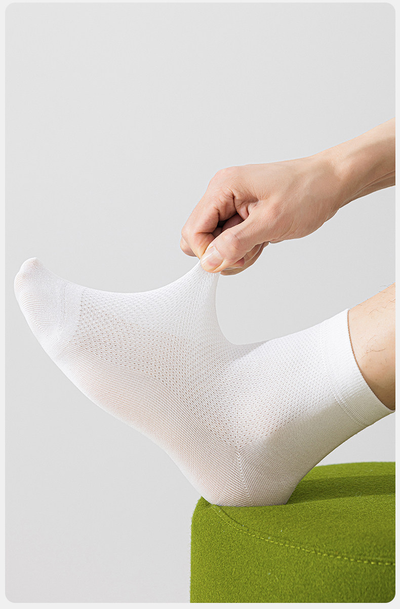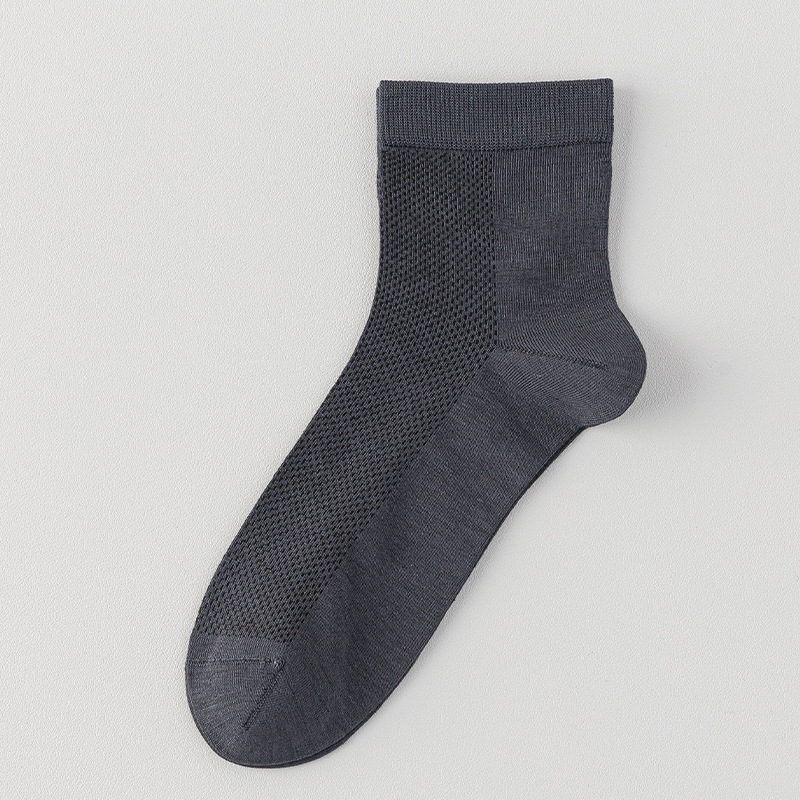桑蚕丝袜子男夏季薄款纯棉防臭吸汗网眼透气运动白色男士中短筒袜
