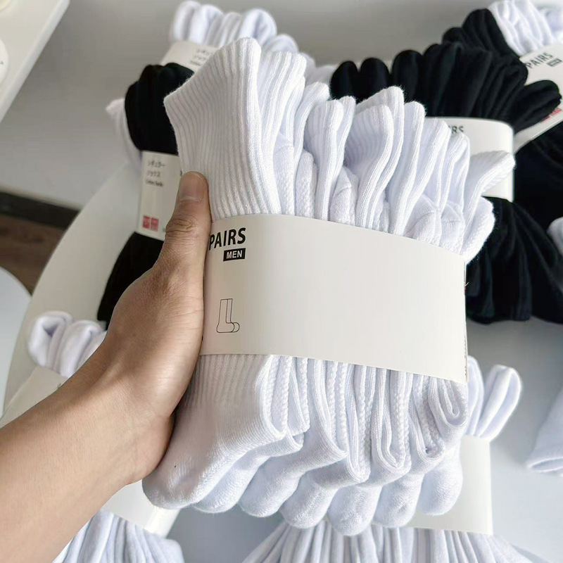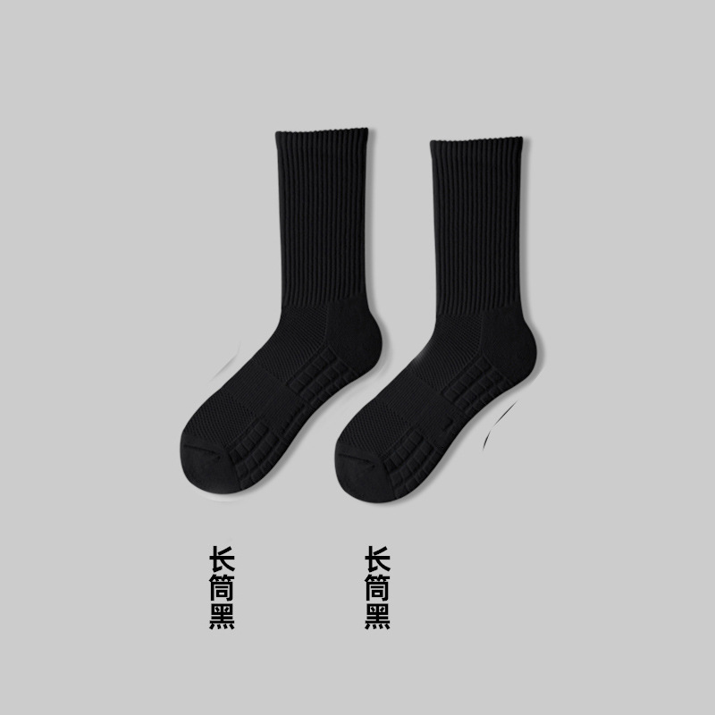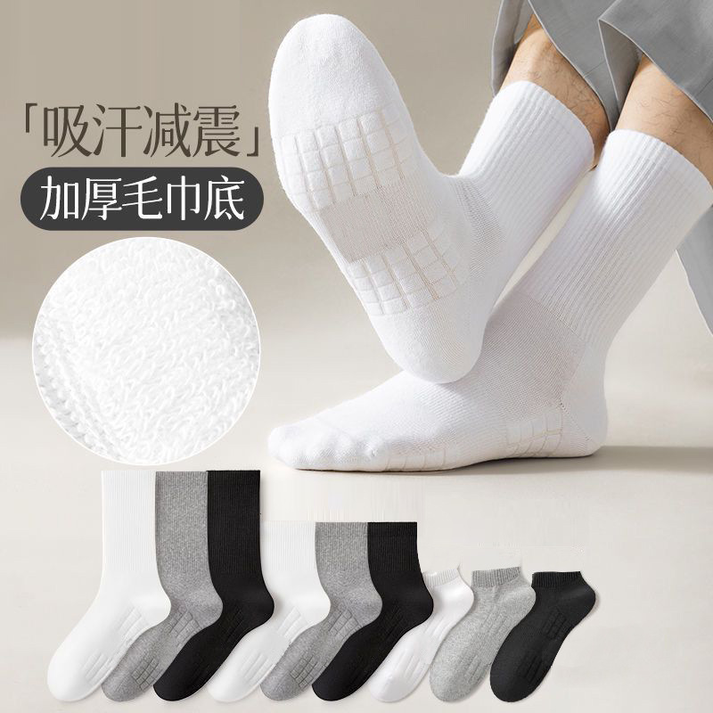诸暨袜子男中高筒黑白纯色棉春秋款透气防臭吸汗运动袜潮流毛巾底