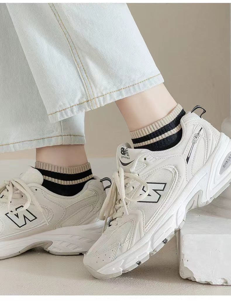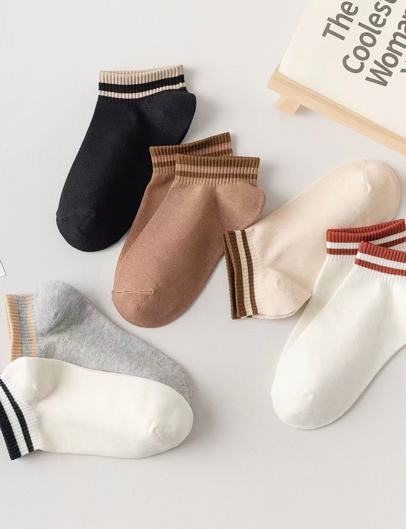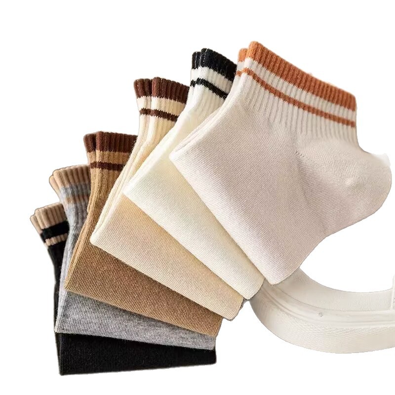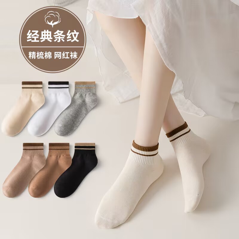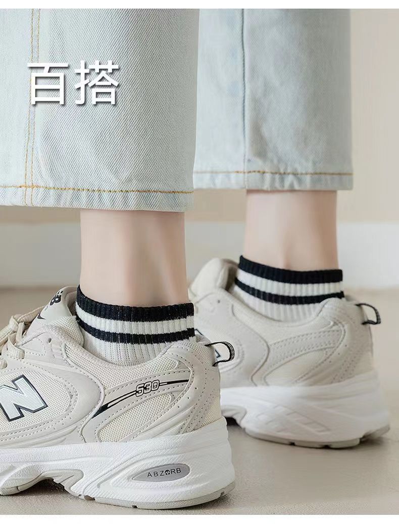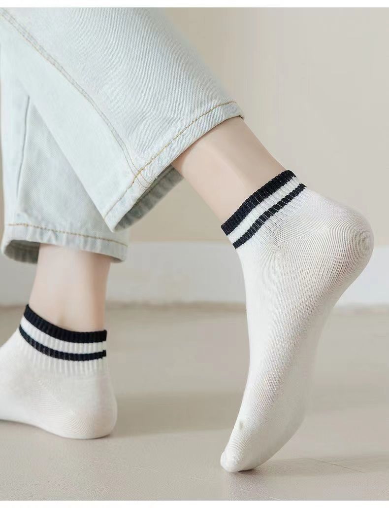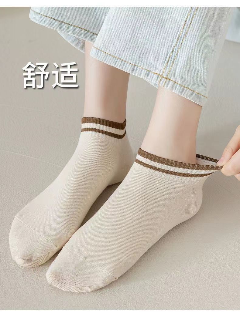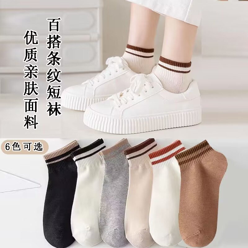 袜子女夏短袜薄款春秋四季纯色双条纹船袜日系运动学生袜ins潮袜