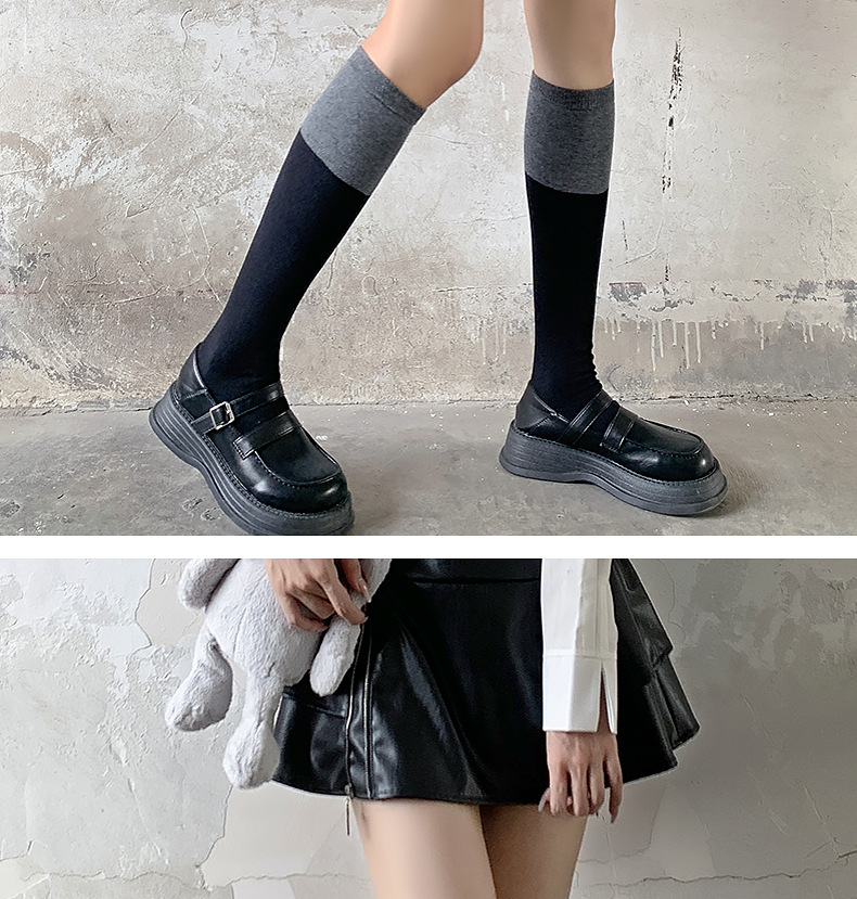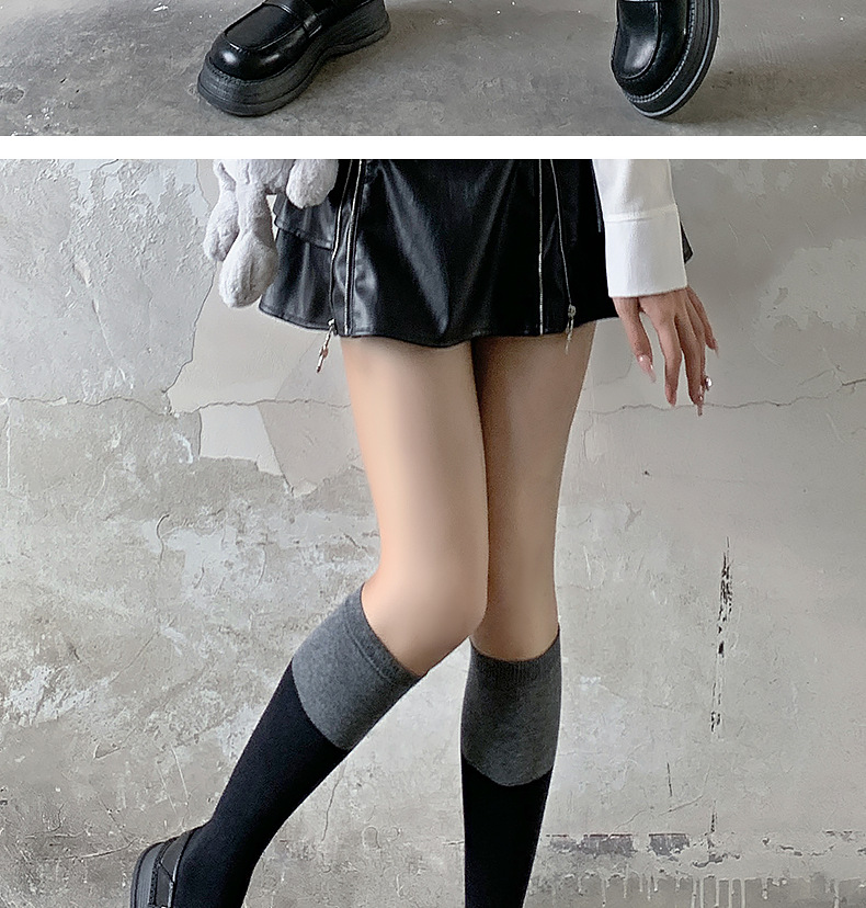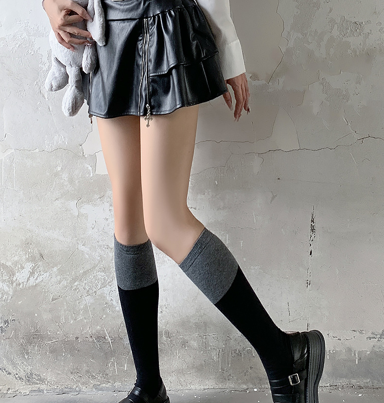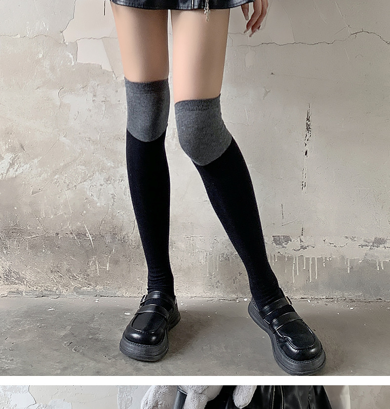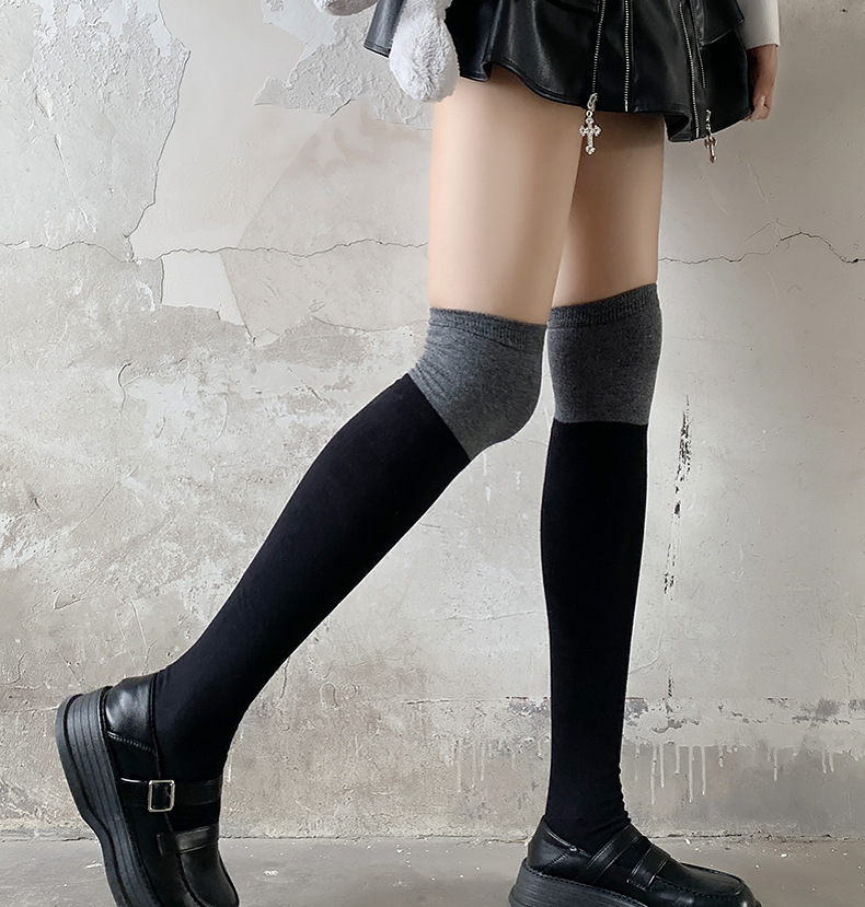 袜子女过膝袜秋冬拼色女袜长筒过膝盖纯棉潮流黑灰大腿高筒小腿袜