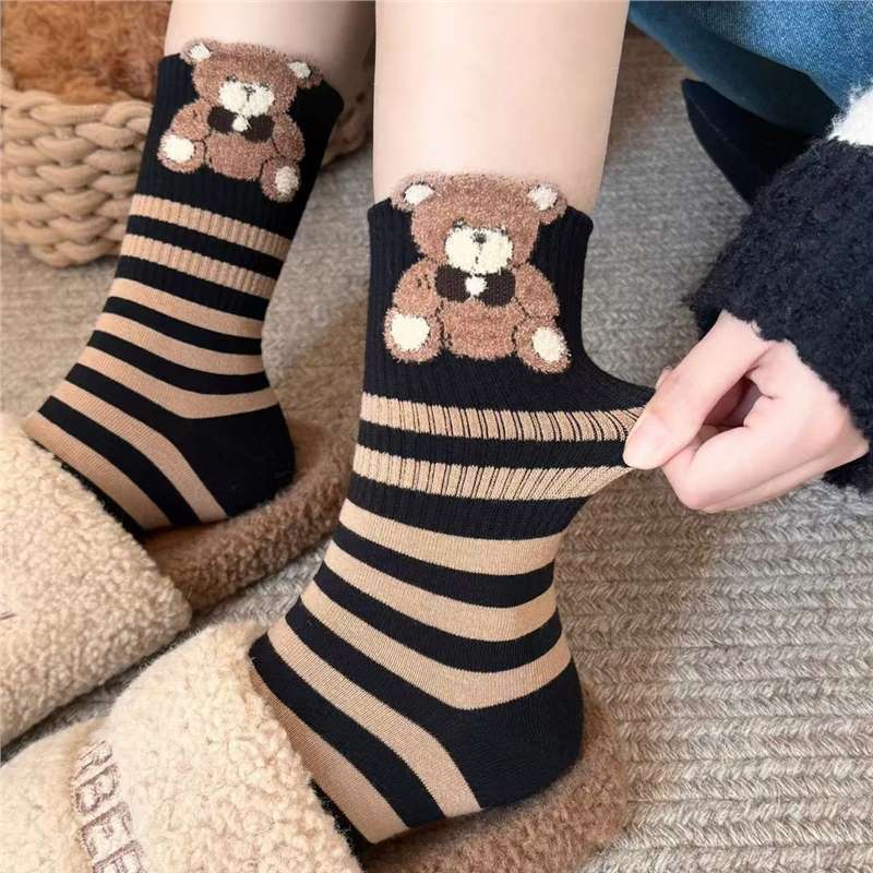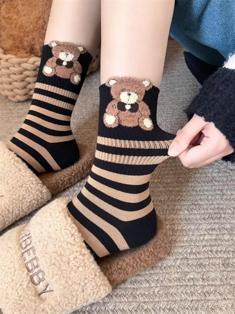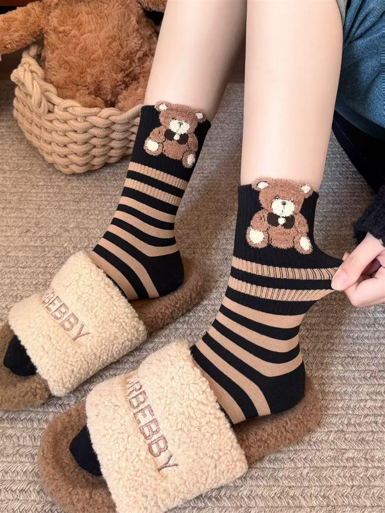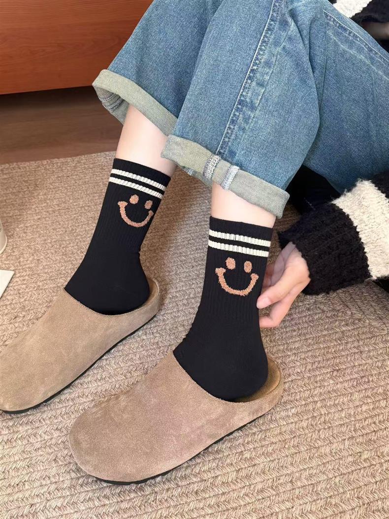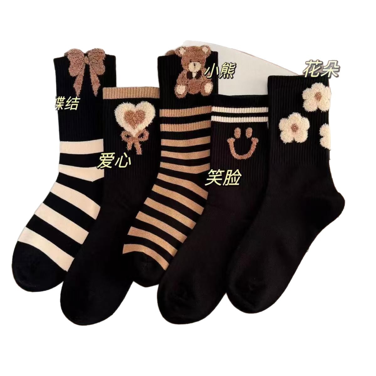 袜子女四季款可爱笑脸小花中高筒少女透气小熊美拉德条纹韩版袜子